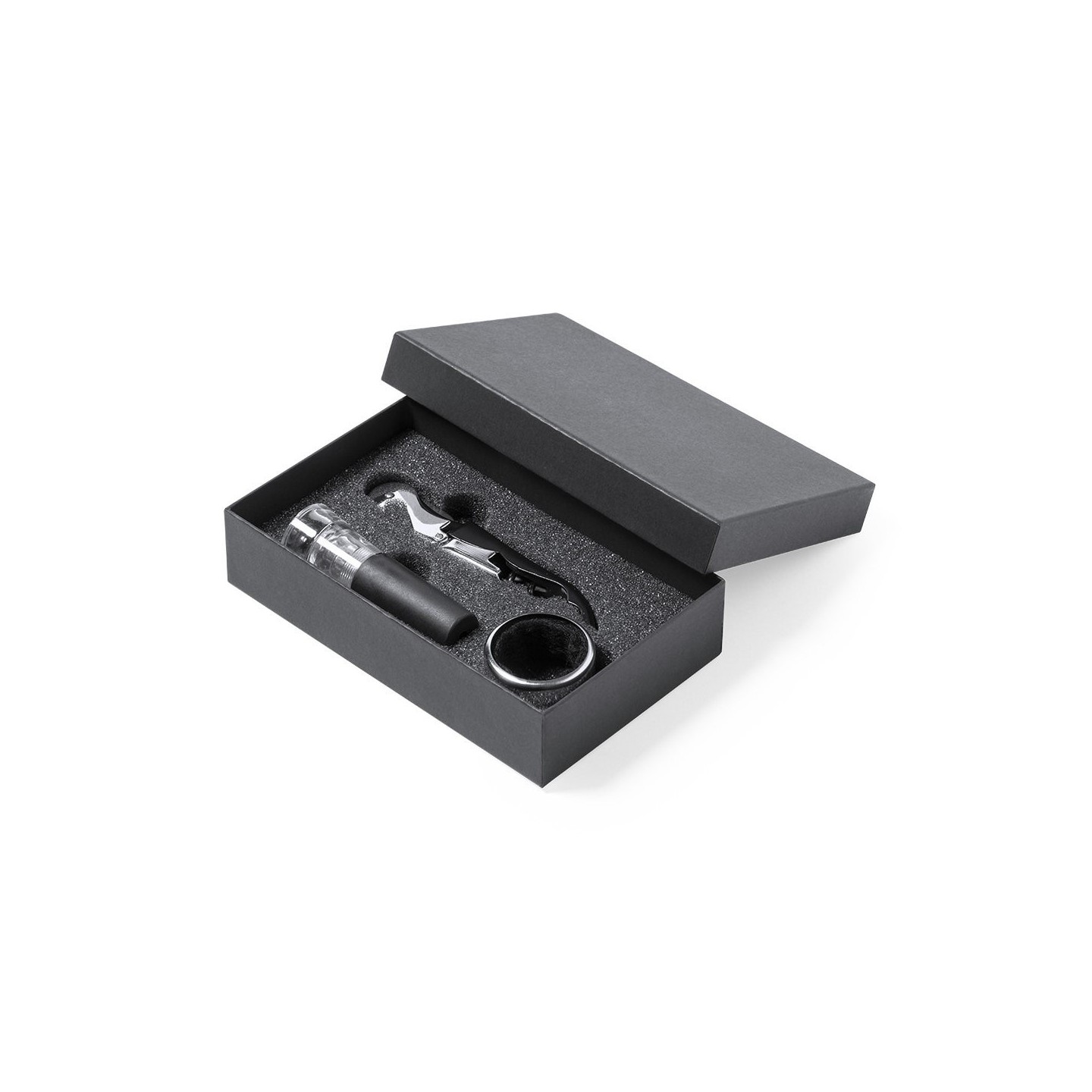 Completo y elegante set de vinos en acabado negro. Incluye accesorios de alta calidad en estuche individual. ¡Regalo sofisticado para amantes del vino!