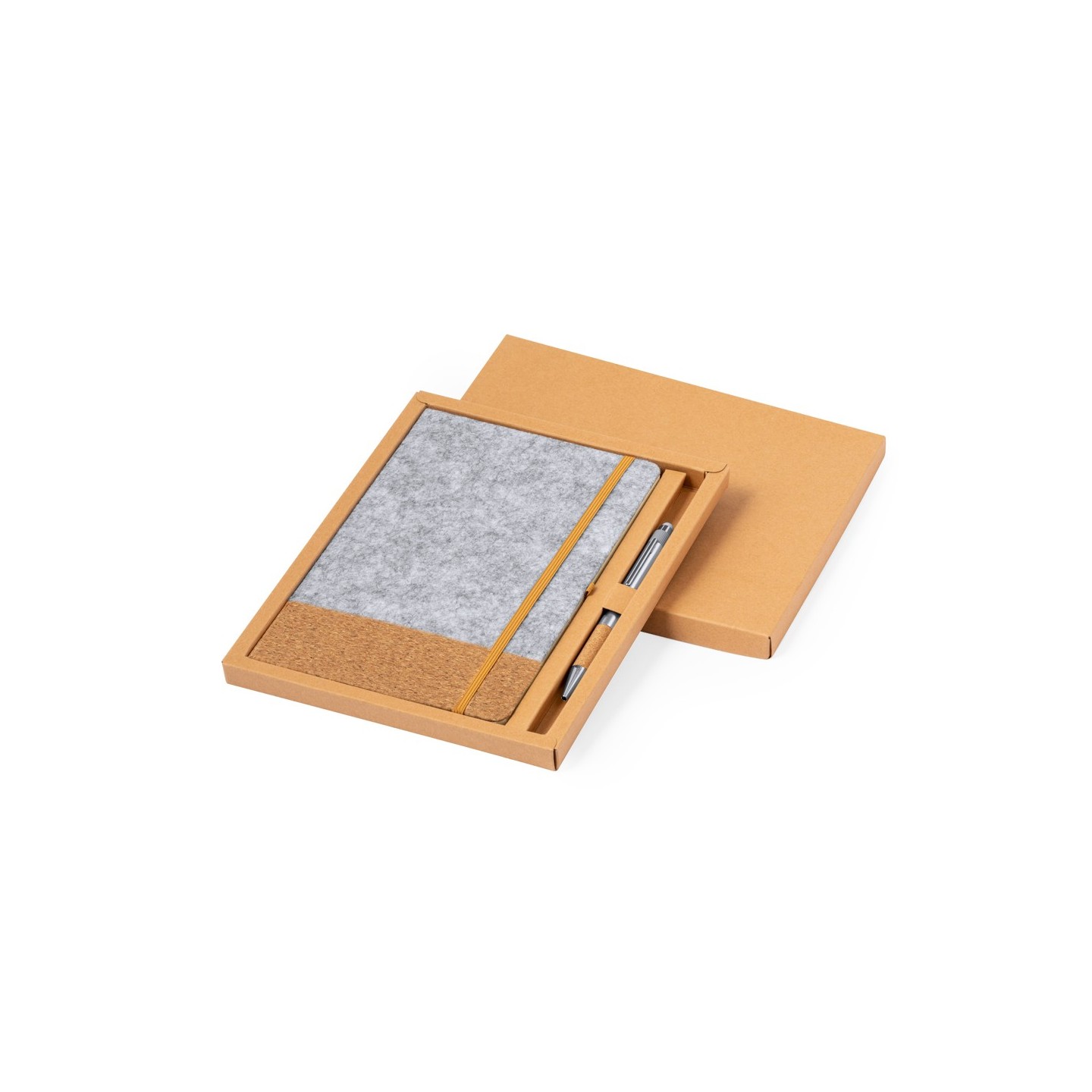 Este set se presenta de manera elegante en una caja de presentación, ideal para regalar a clientes, empleados o colaboradores. Además, tanto el fieltro RPET como el aluminio reciclado utilizados en su fabricación reflejan nuestro compromiso con la sostenibilidad y la eco-tendencia.
