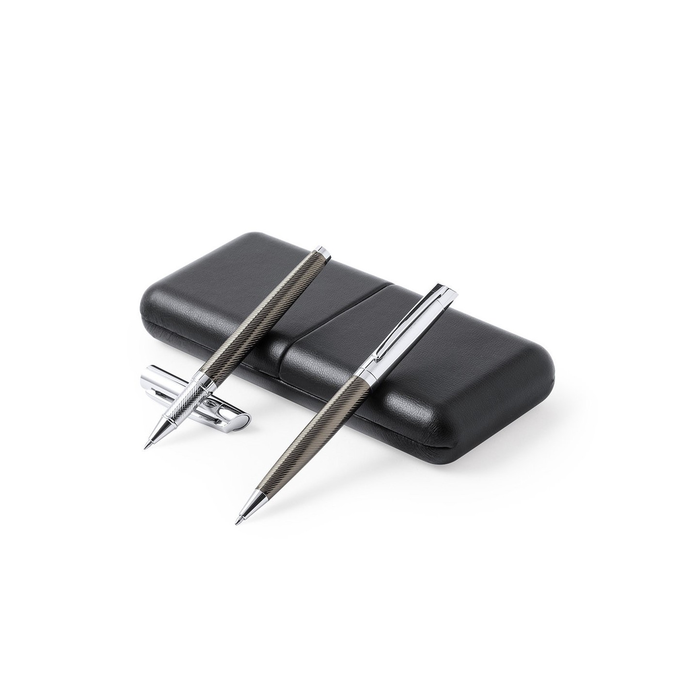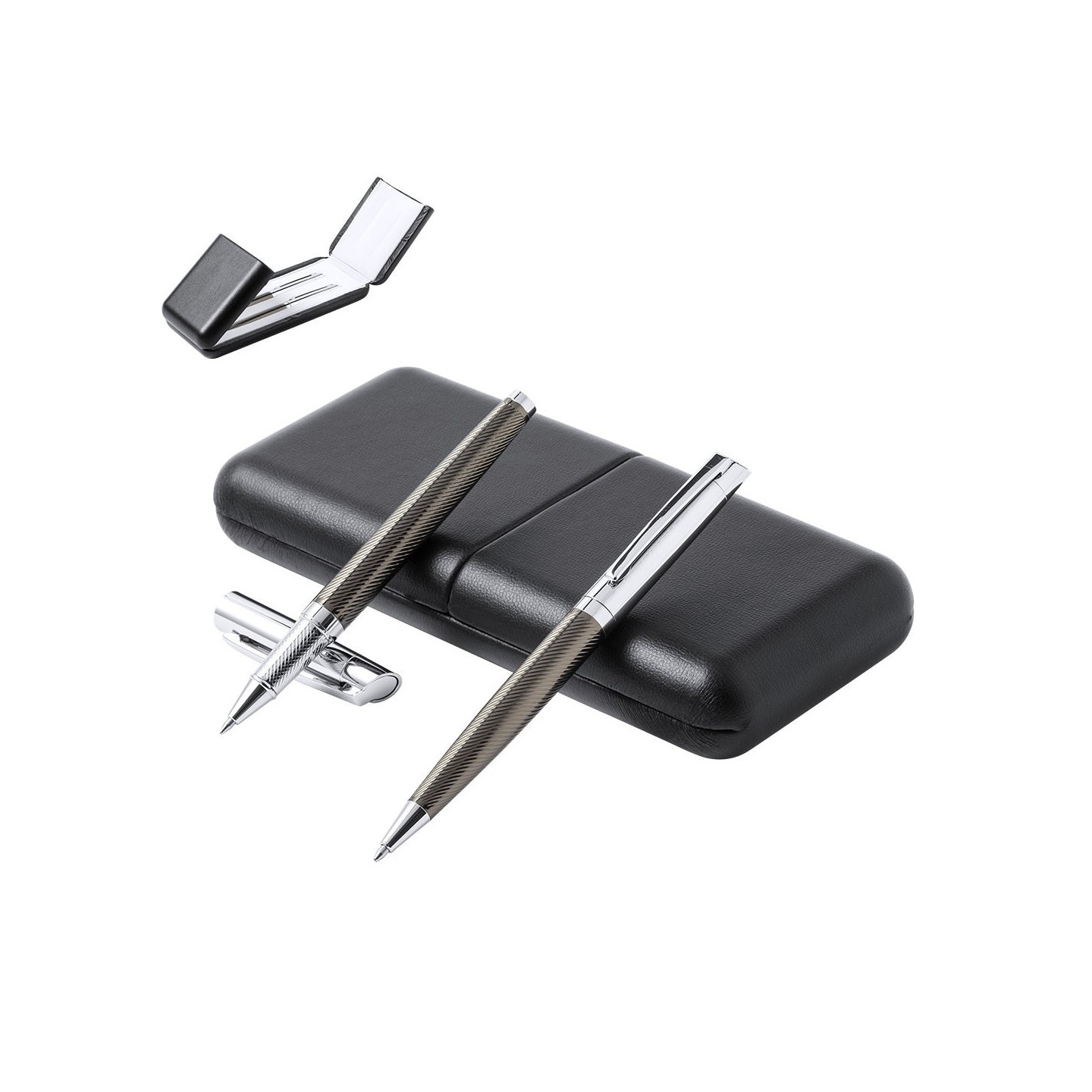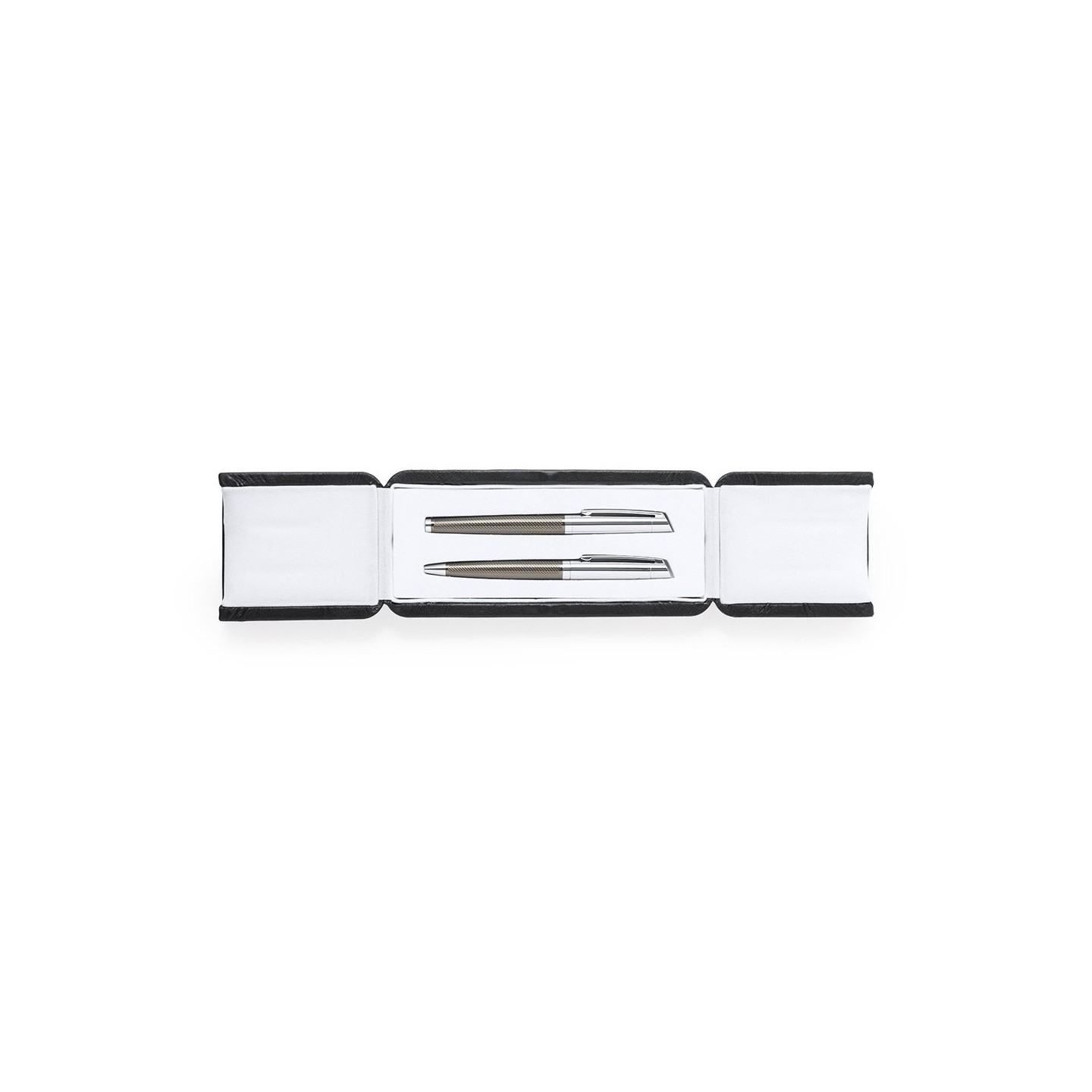 Este Set Williams es la opción perfecta para aquellos que buscan regalos de alta calidad y personalizados para empresas. Este set premium incluye un bolígrafo y un roller, ambos fabricados con una elegante combinación de metal en tonos negros y cromados.