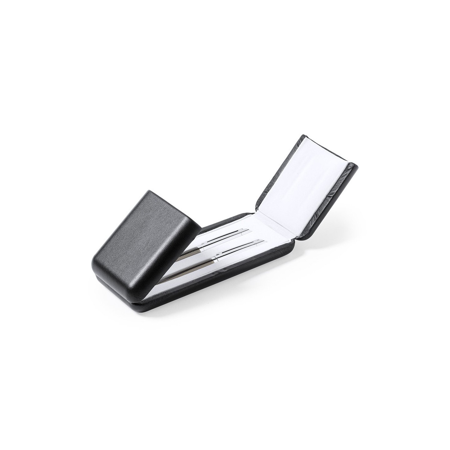 Este set se presenta en un estuche individual de polipiel, que le agrega un toque de elegancia adicional. El interior del estuche está revestido con una suave antelina en color blanco, creando un contraste llamativo y sofisticado.