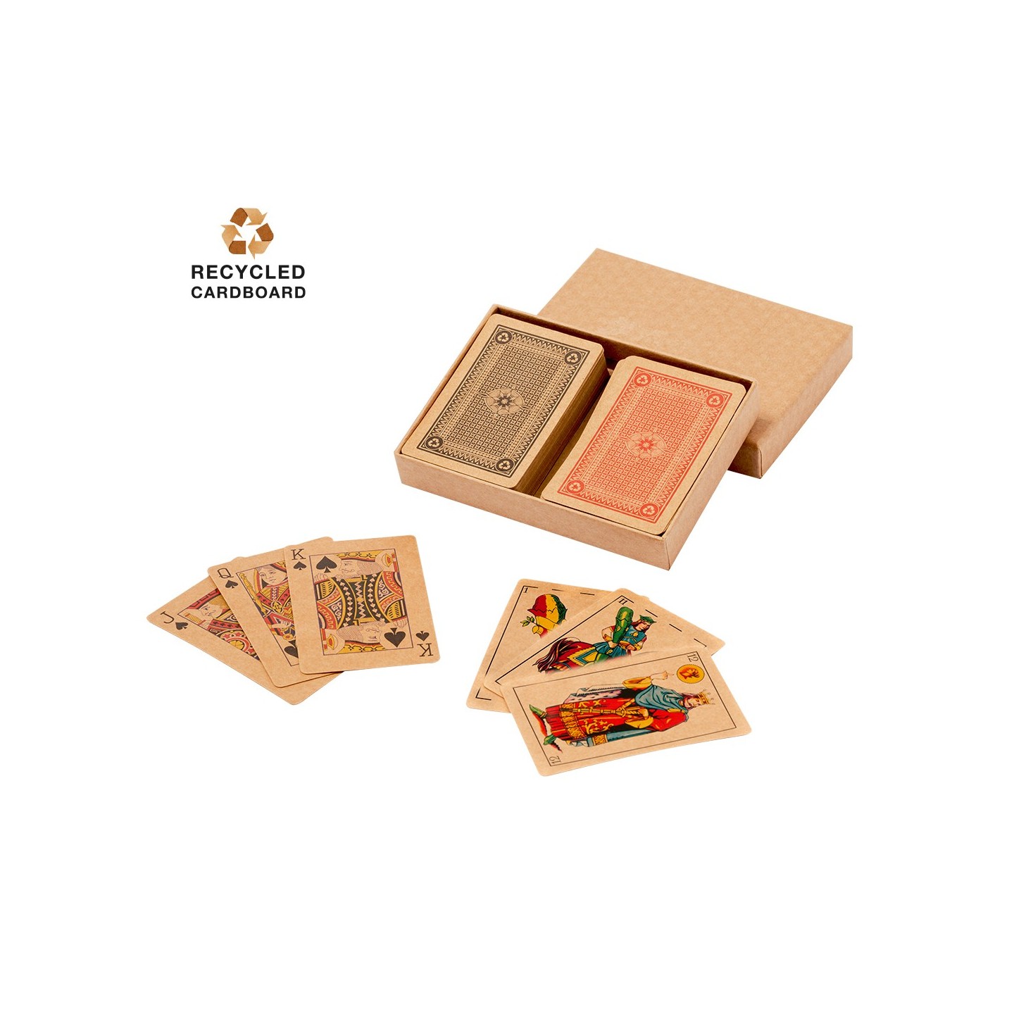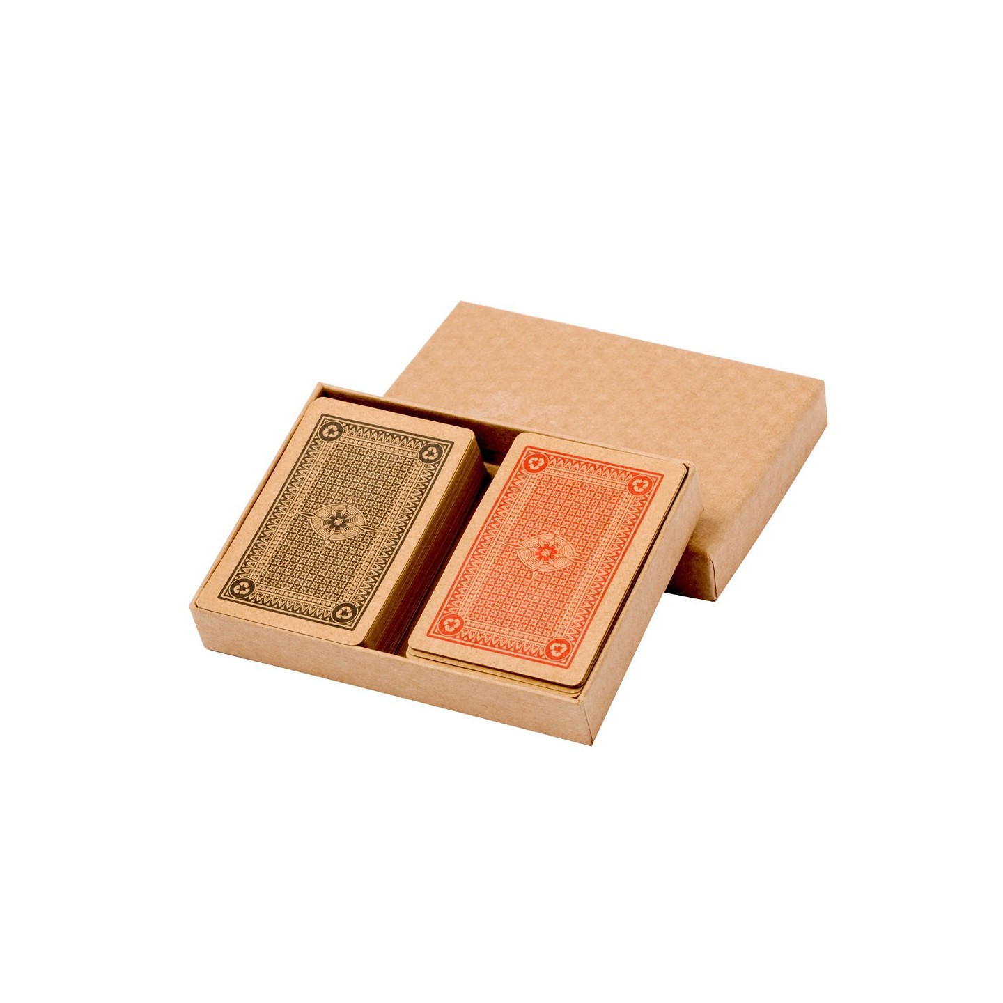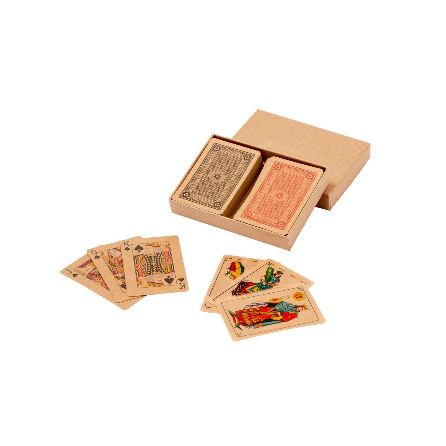 El Sets Barajas Kardain incluye baraja española y francesa en cartón reciclado. Presentadas en estuche kraft. Ideal para regalos corporativos.