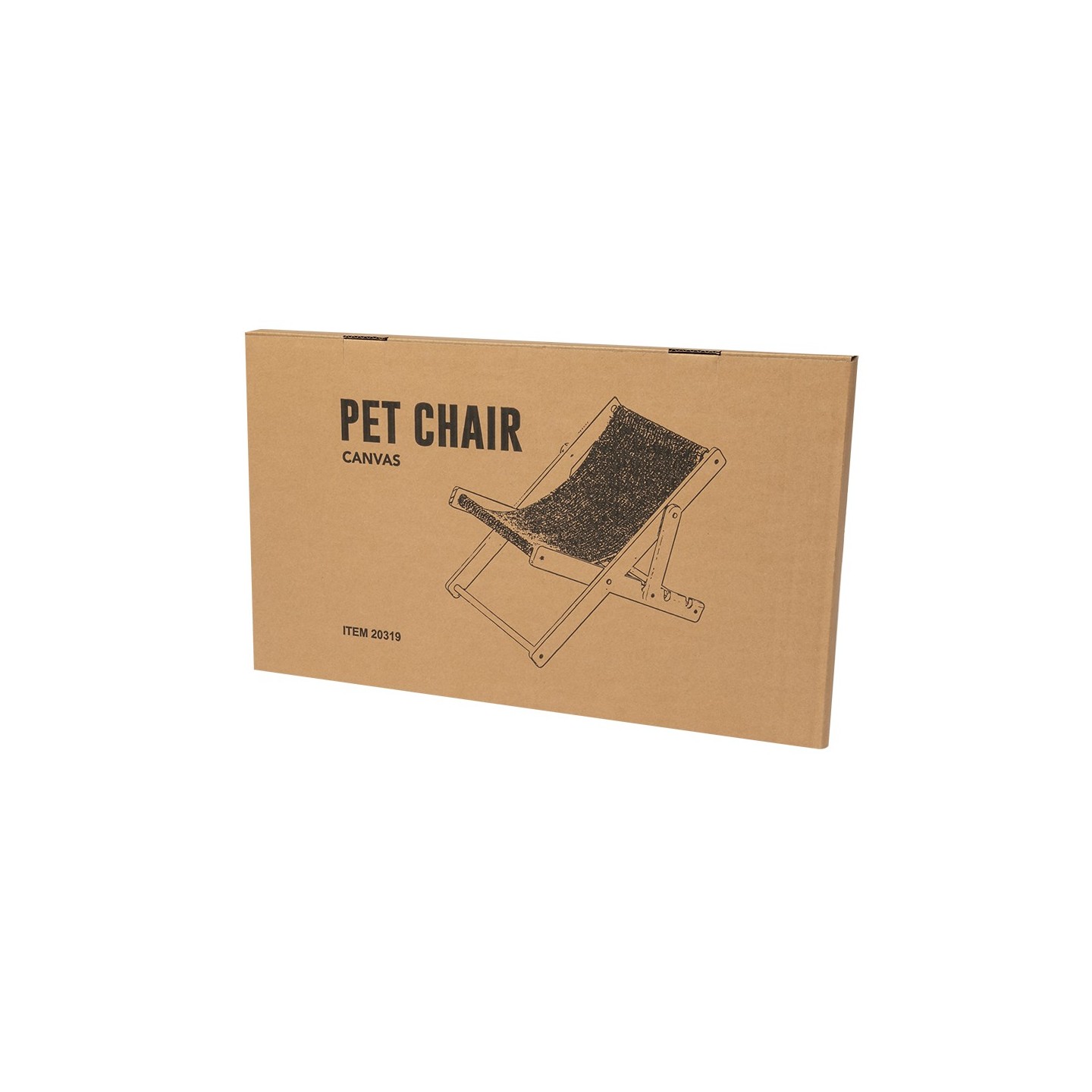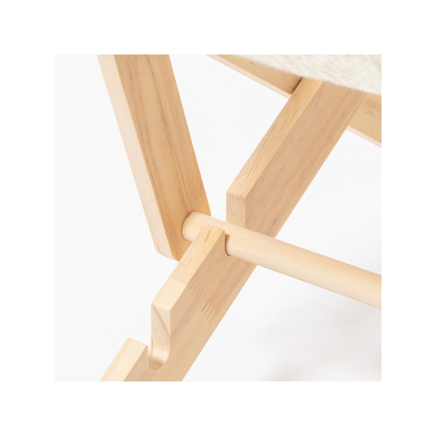 La Silla Mascotas Diny está diseñada con una estructura sólida de madera, garantizando durabilidad y estabilidad. Su asiento de tejido canvas ofrece un confort excepcional, con un acabado suave y resistente que asegura el bienestar de las mascotas.