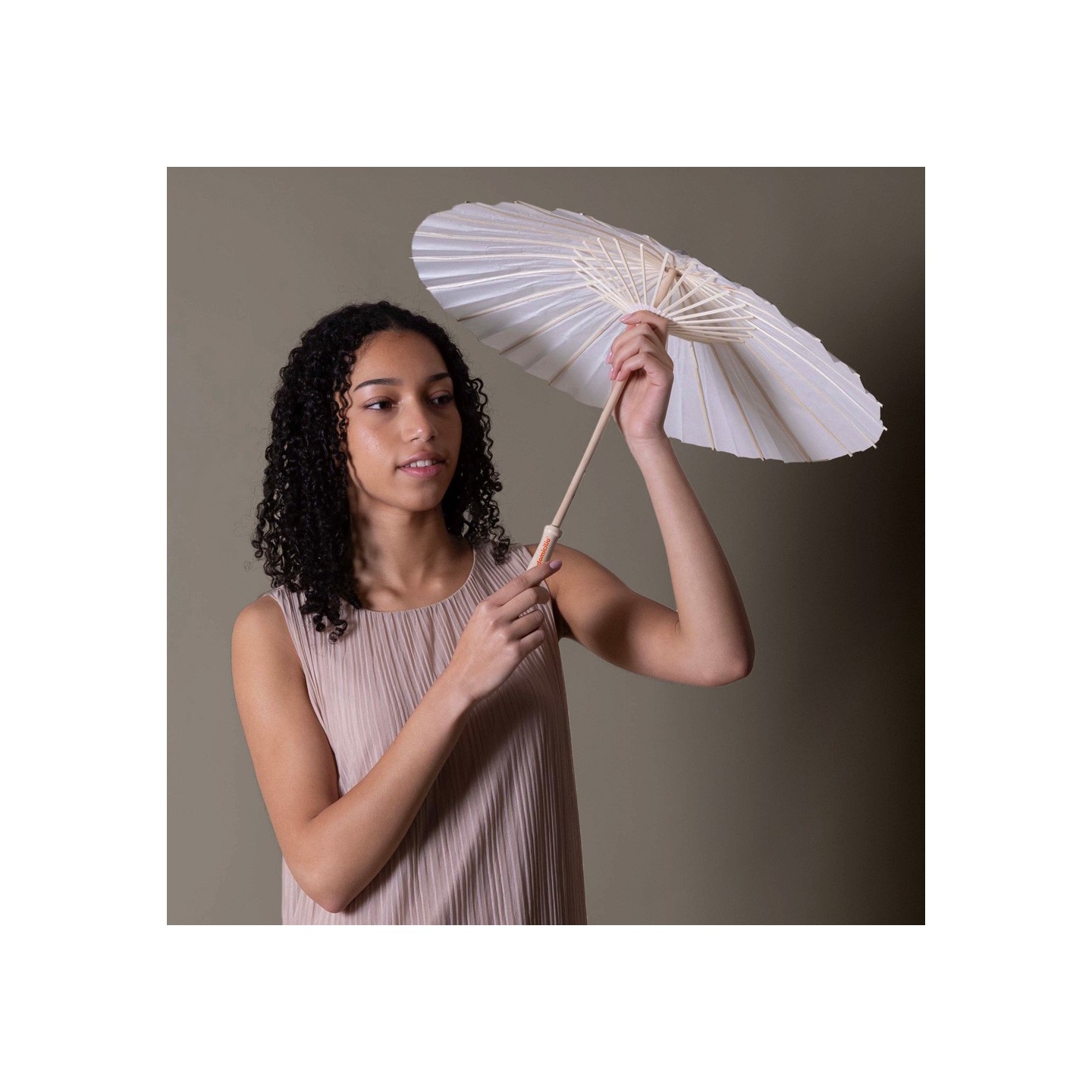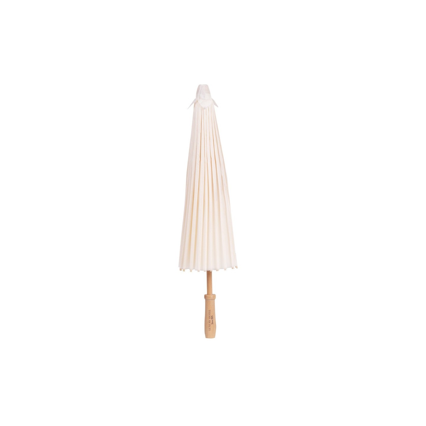 Sombrilla de Mano WEDDING de papel, perfecta para bodas y eventos. Mango ergonómico, 42 cm de longitud y 60 cm de diámetro. Personalizable con tu logotipo.