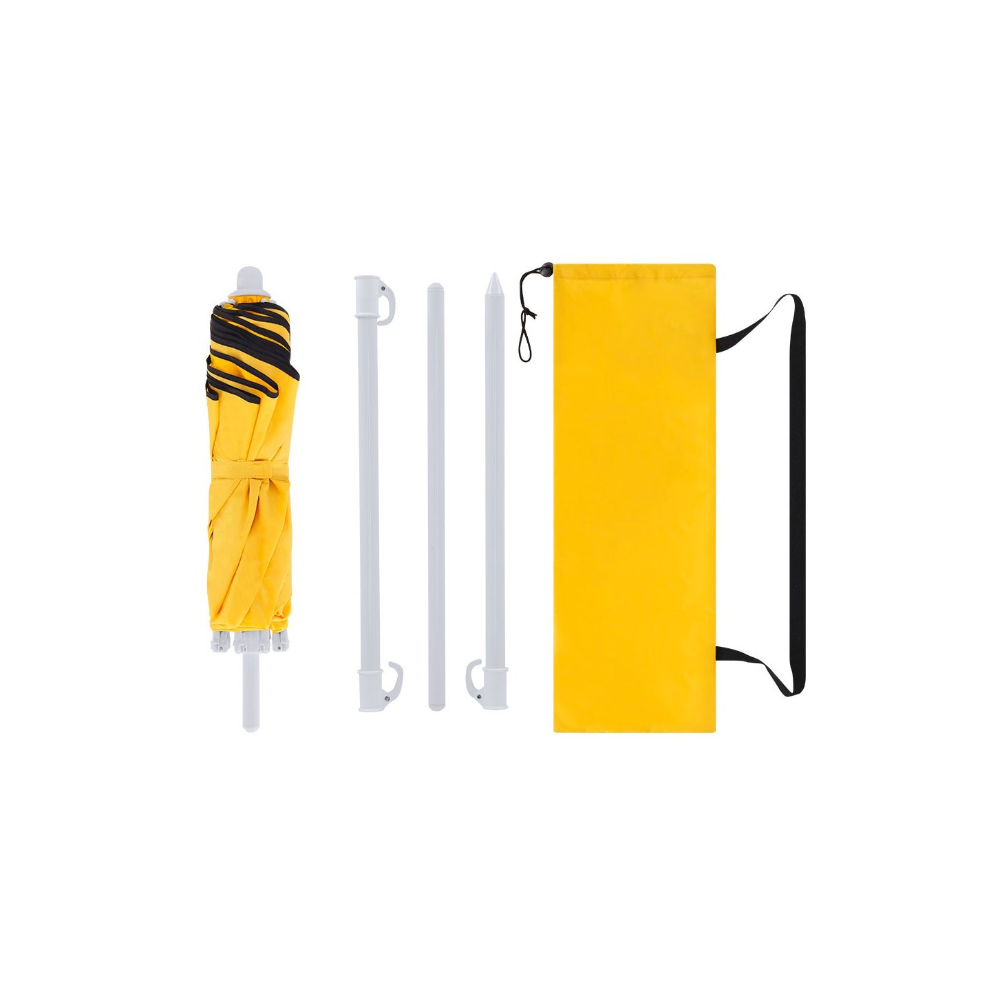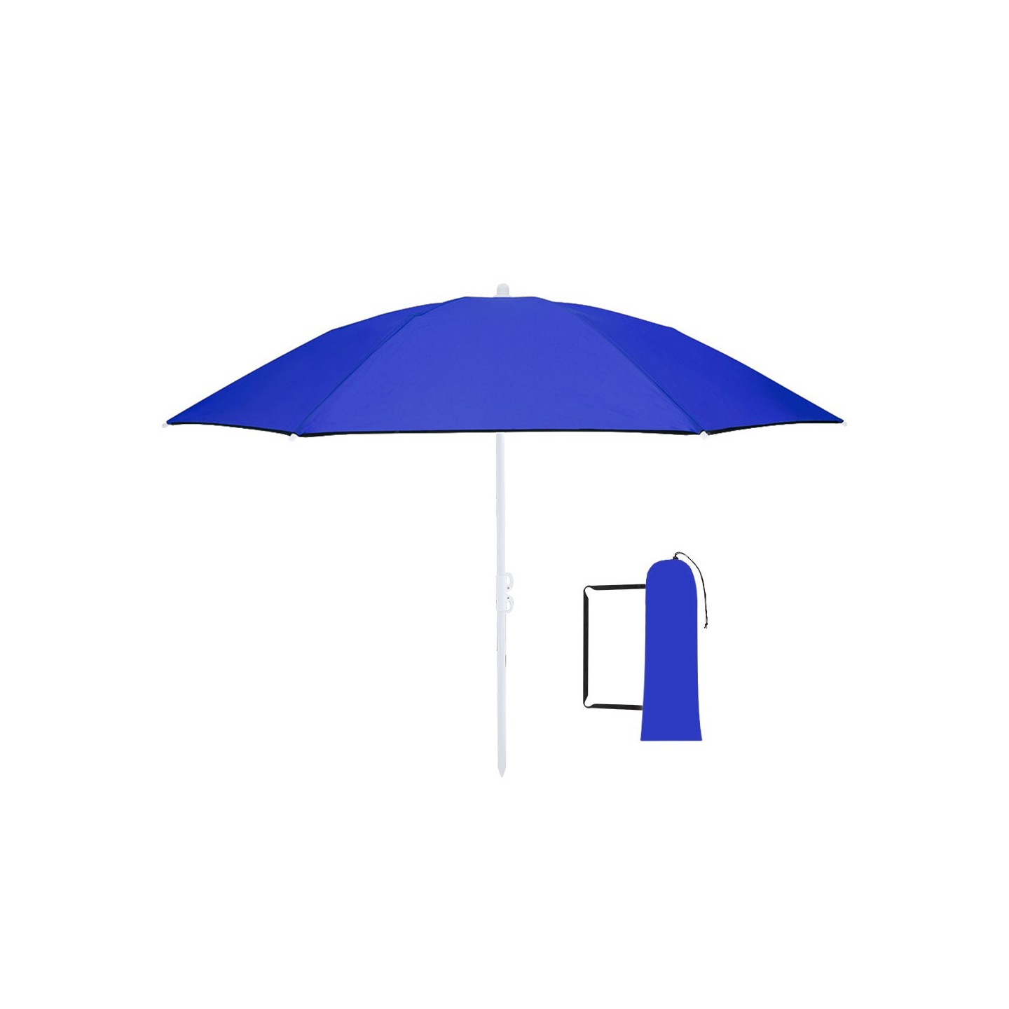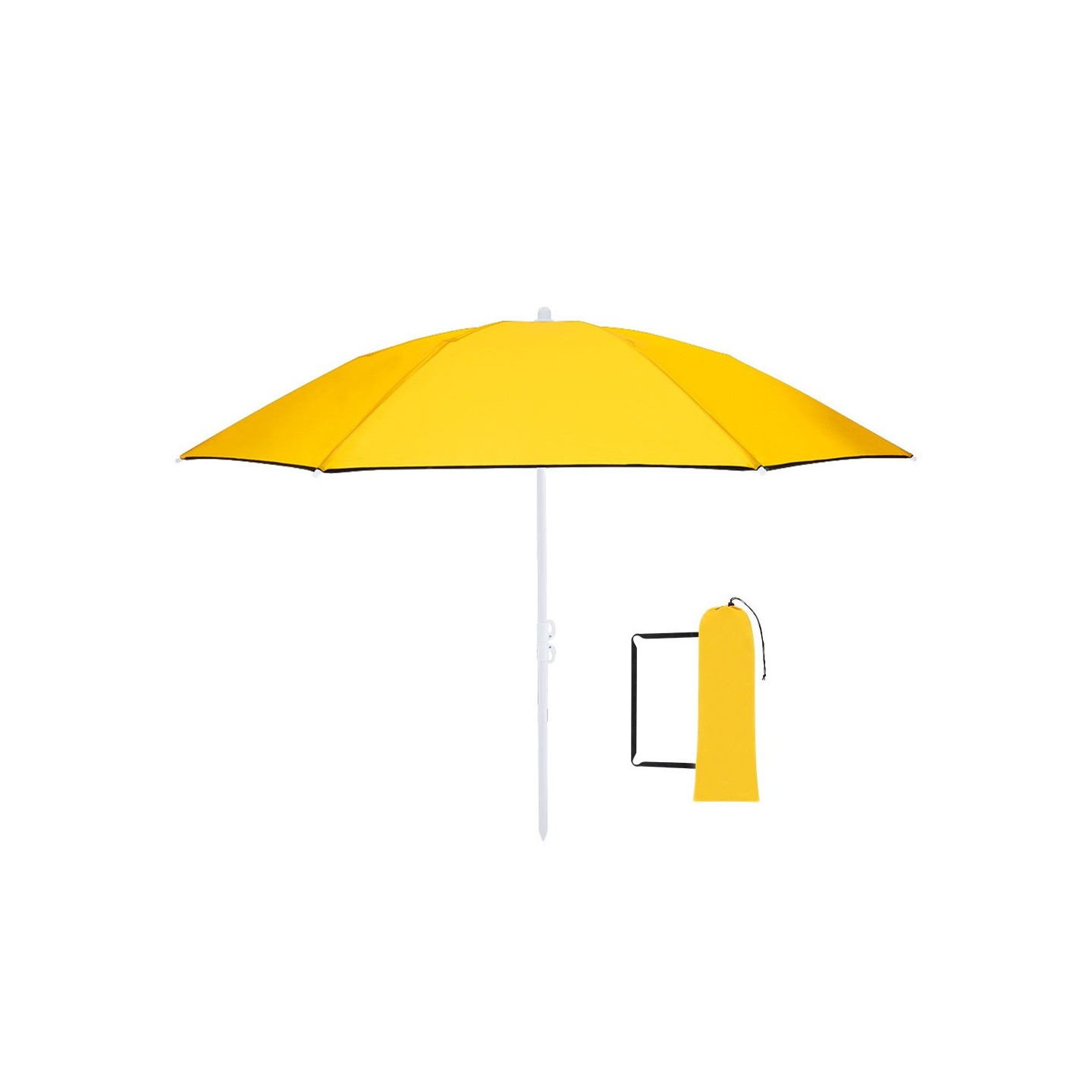 Sombrilla de playa plegable MISARYA con protección UV, 160 cm de diámetro, tubos metalizados y varillas de fibra de vidrio. Personalizable y perfecta para promociones.