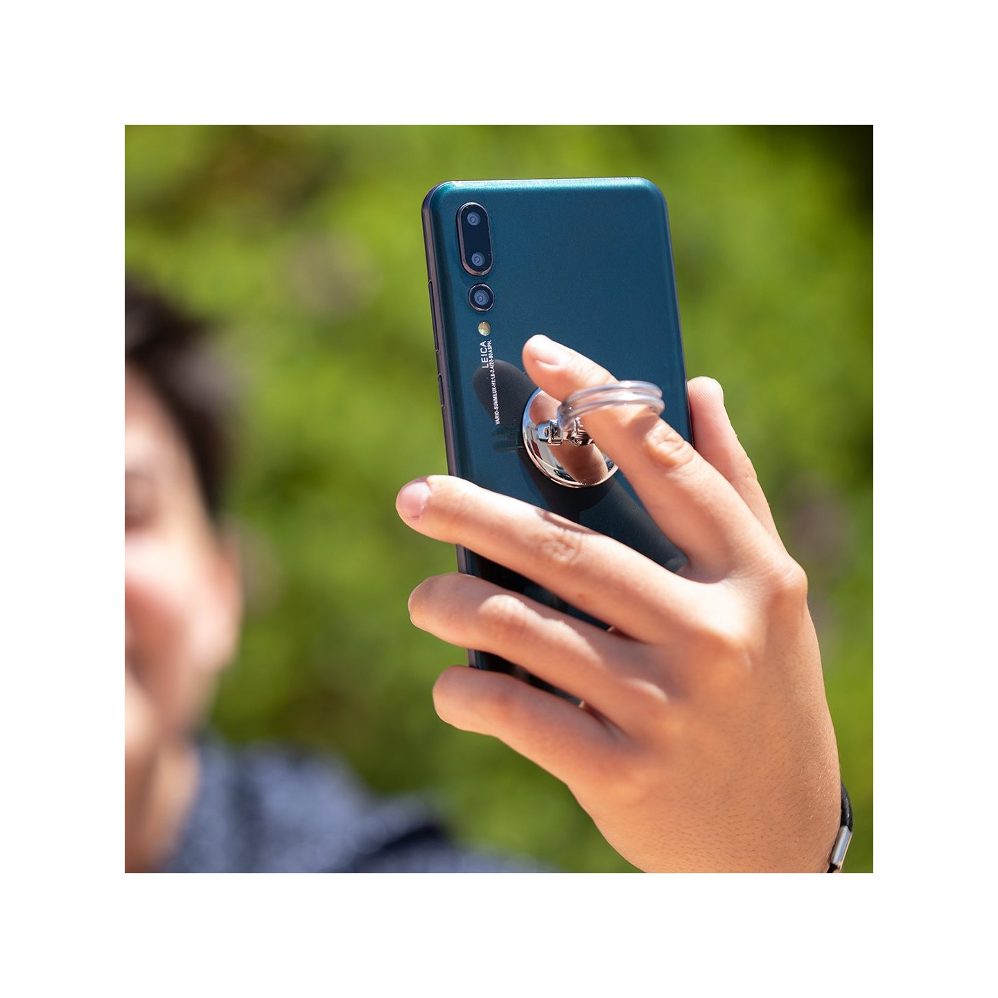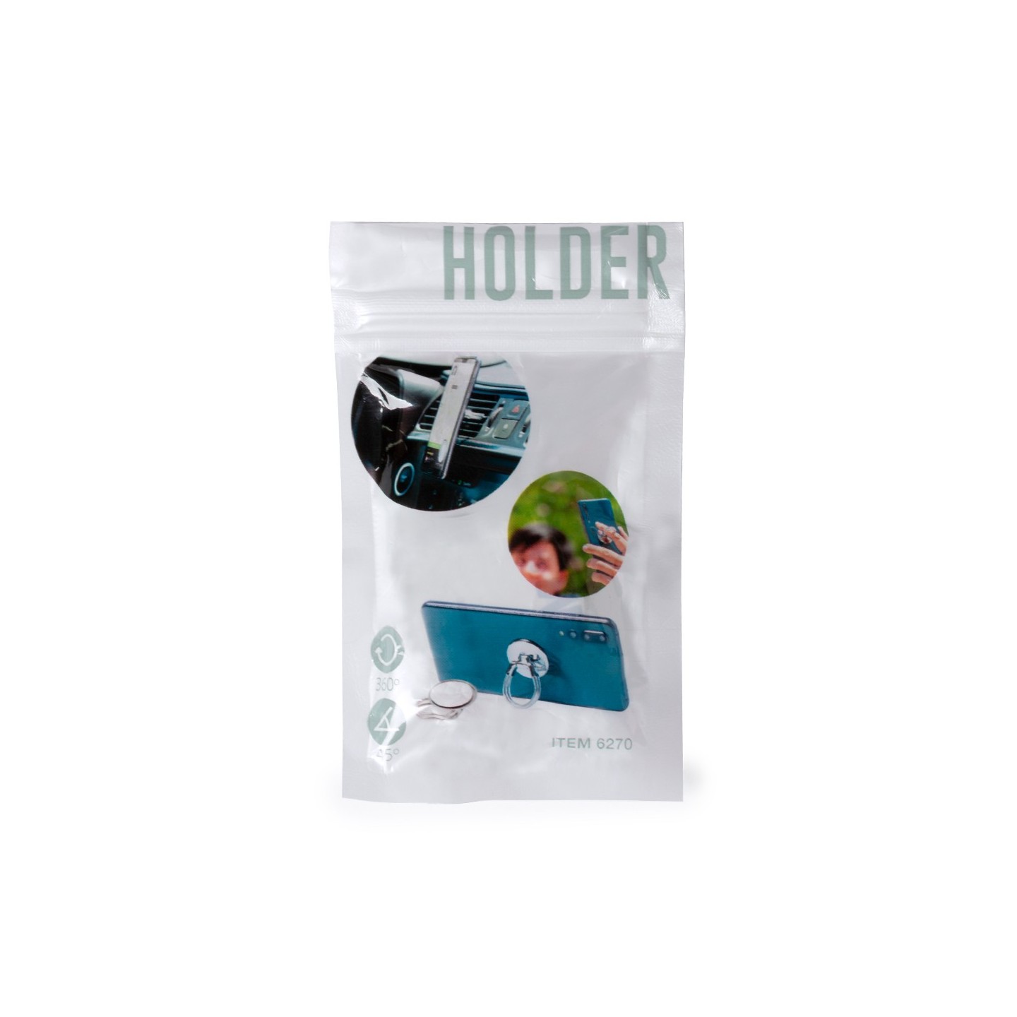 El soporte Atosh es un elegante soporte selfie en metal cromado con adhesivo 3M. Doble anilla para dedo y rejilla del vehículo. Presentado en bolsita individual.