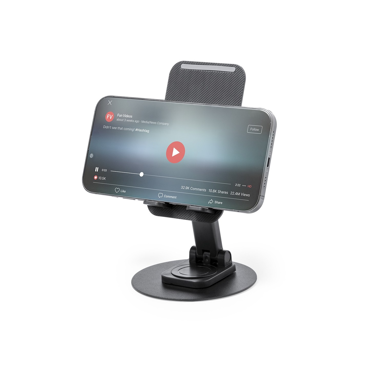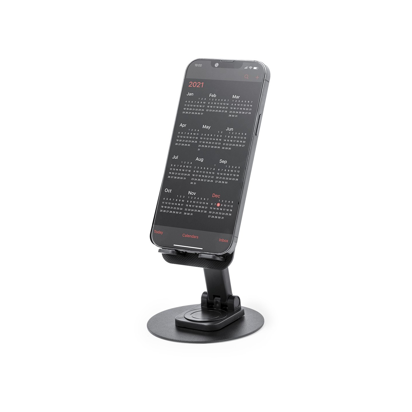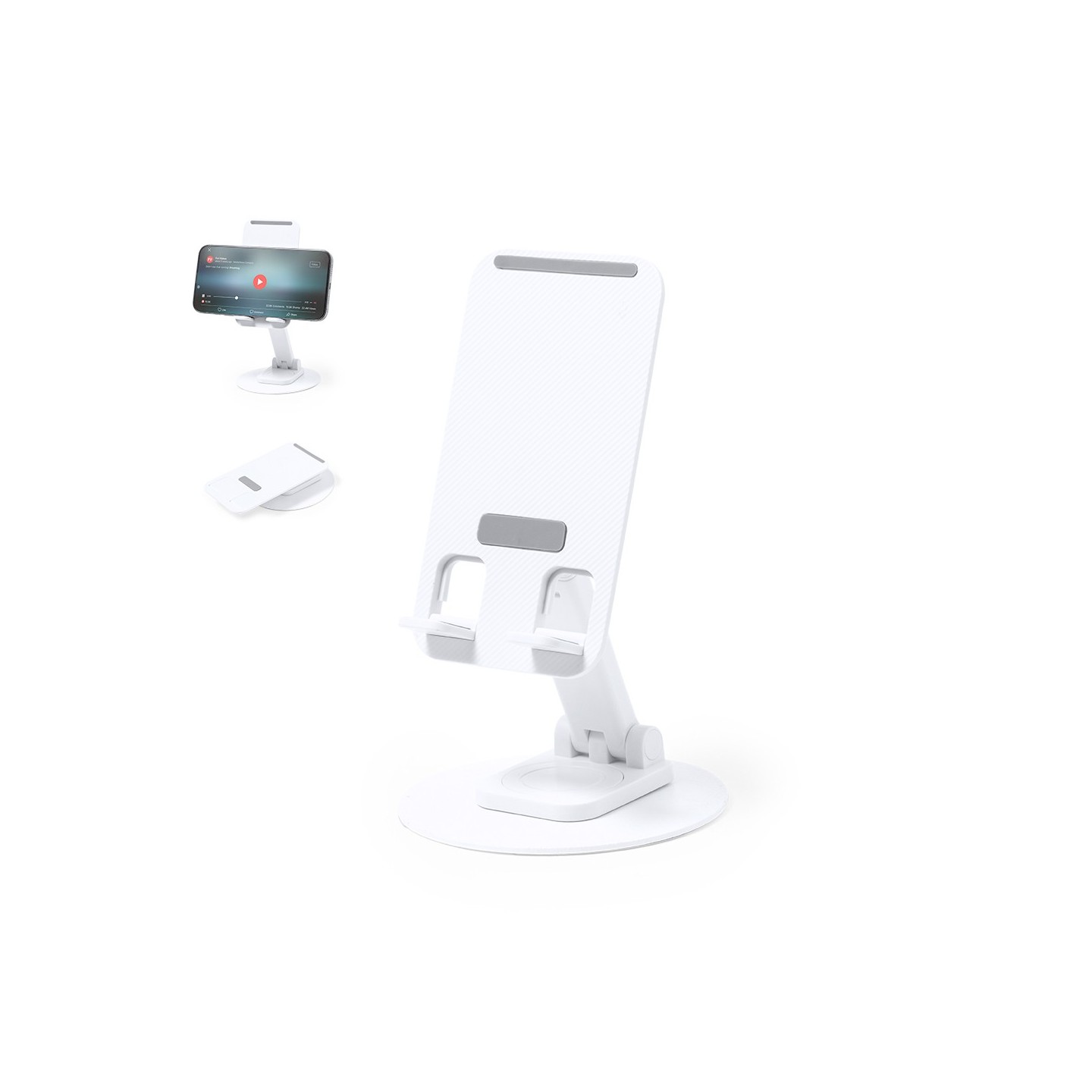 El Soporte Marxel es plegable, para smartphone y tablet. Resistente aluminio y ABS, regulable en altura. Personalizable, práctico y elegante