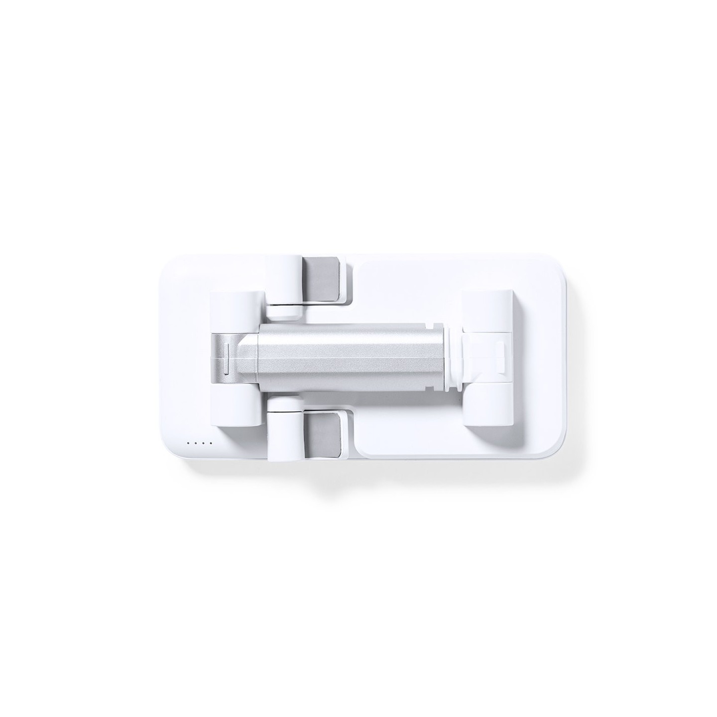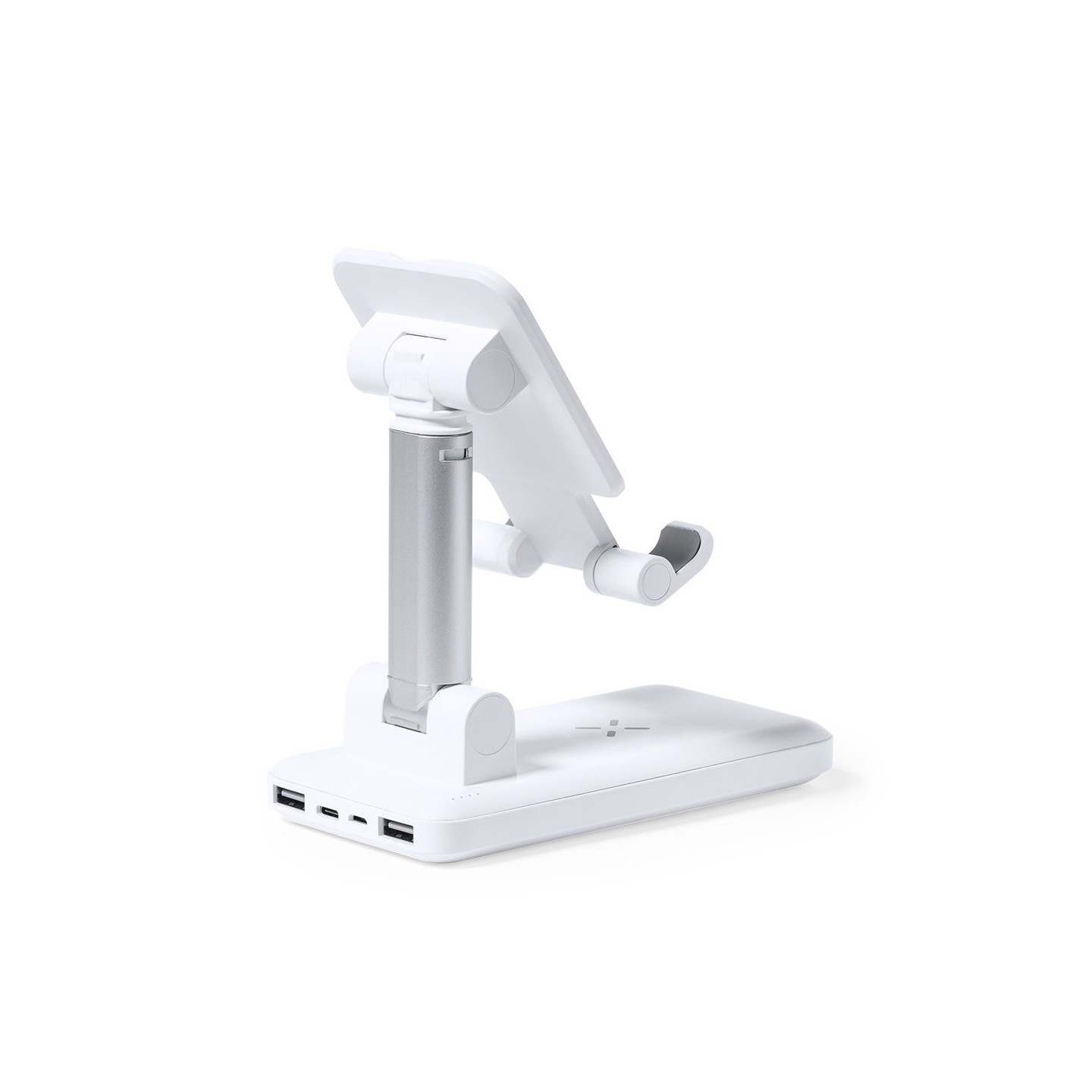Pero eso no es todo, este sorprendente soporte también incorpora un cargador inalámbrico de 10W y una potente batería de 5.000 mAh. Con su entrada/salida Tipo C, entrada micro USB y dos salidas USB, podrás cargar múltiples dispositivos de forma simultánea, brindándote la máxima comodidad y practicidad en cualquier momento y lugar.