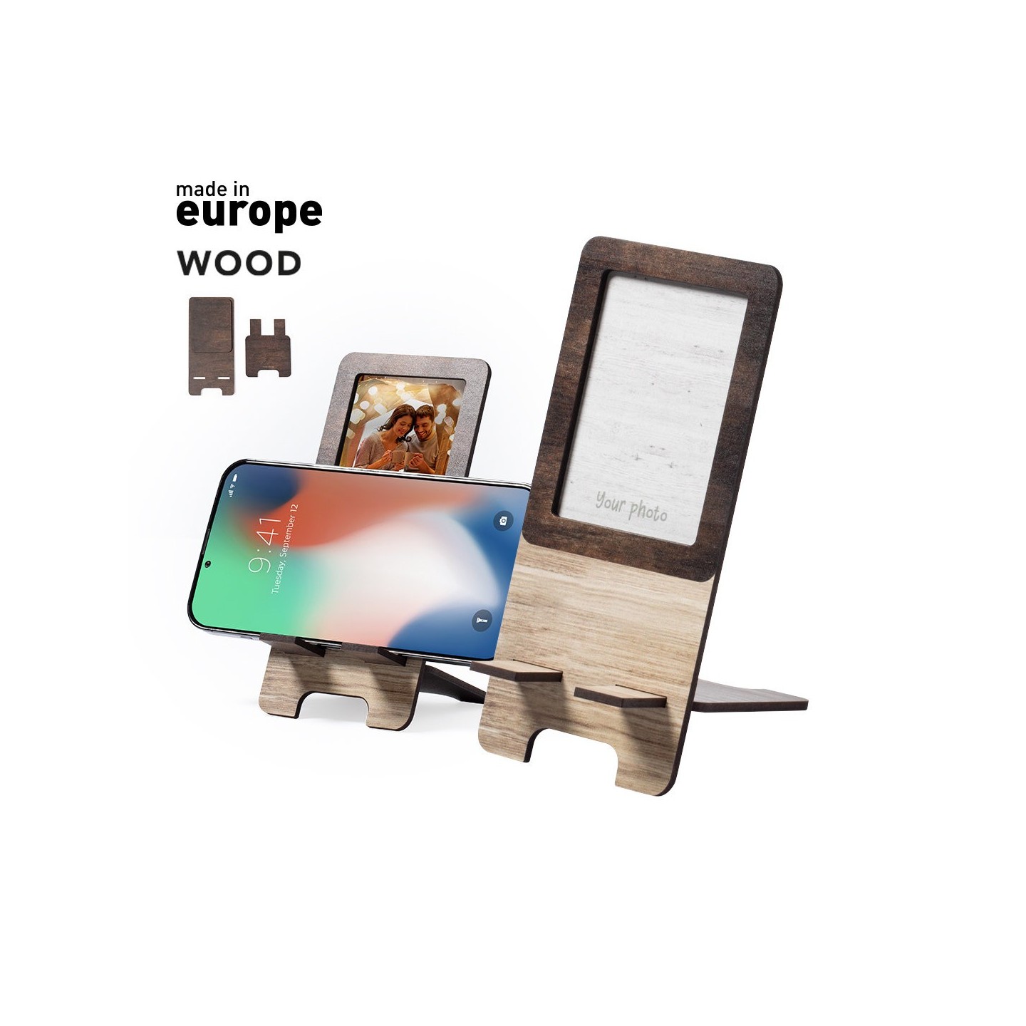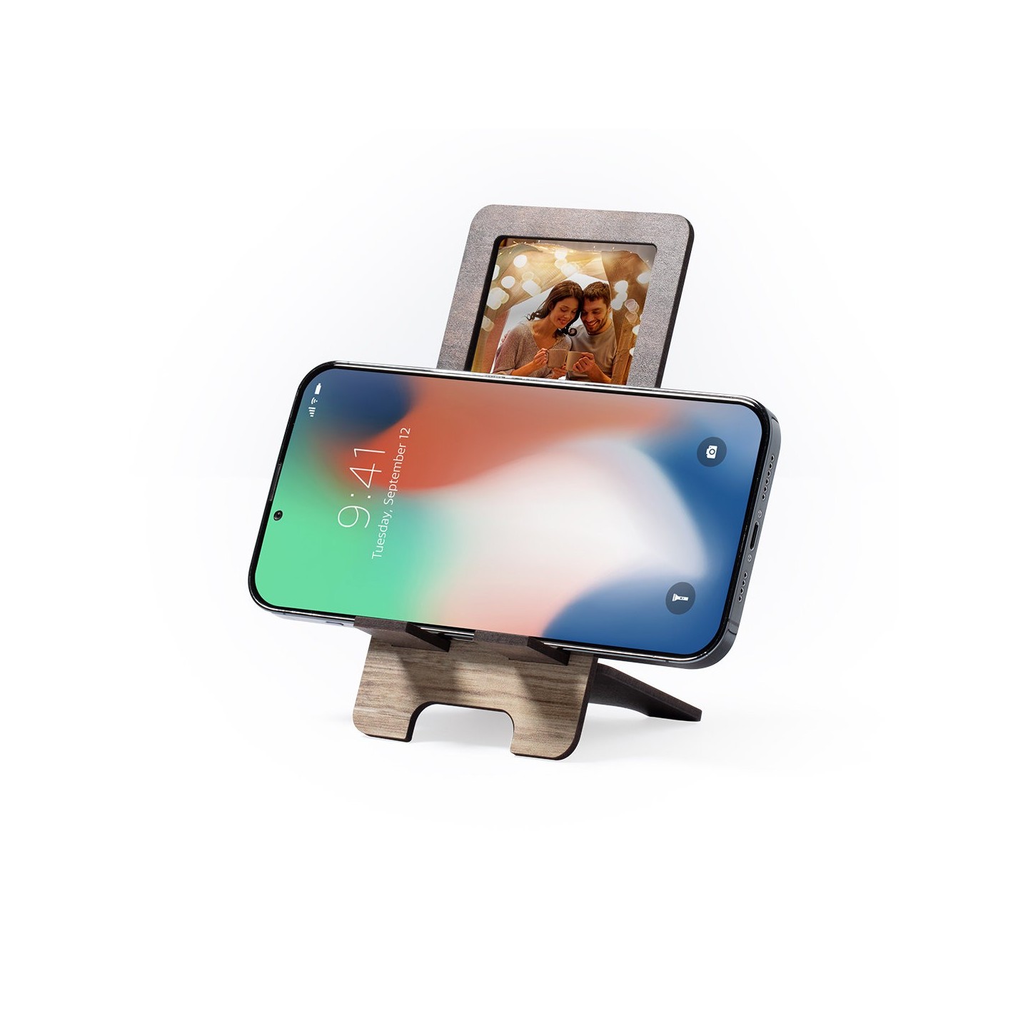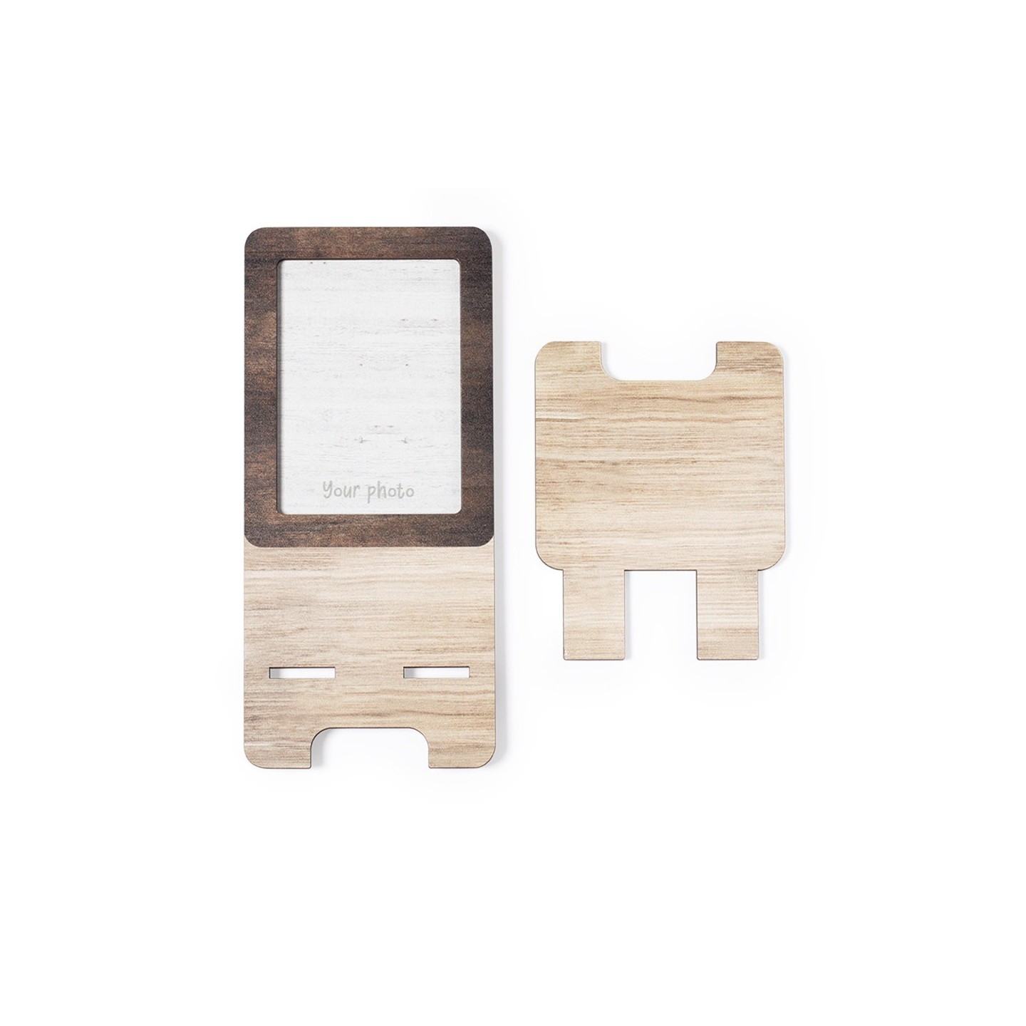 El Soporte Portafotos Vappe es elegante y funcional, fabricado en madera natural. Personalizable. ¡Regalo corporativo perfecto para empresas!
