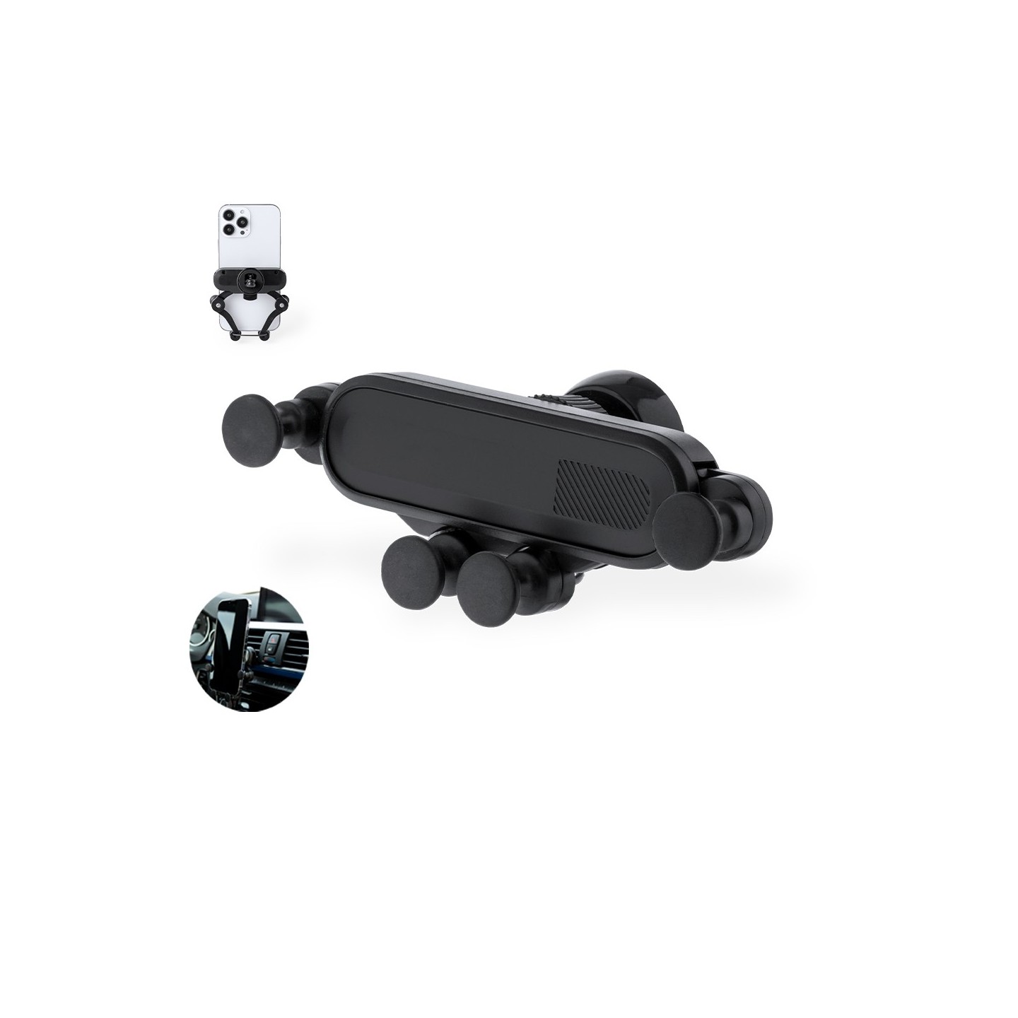 Este soporte está diseñado específicamente para la rejilla de ventilación del automóvil, proporcionando una instalación segura y sin complicaciones. Además, su frontal está especialmente diseñado para el marcaje de tu logo, lo que lo convierte en un excelente artículo promocional para tu empresa.