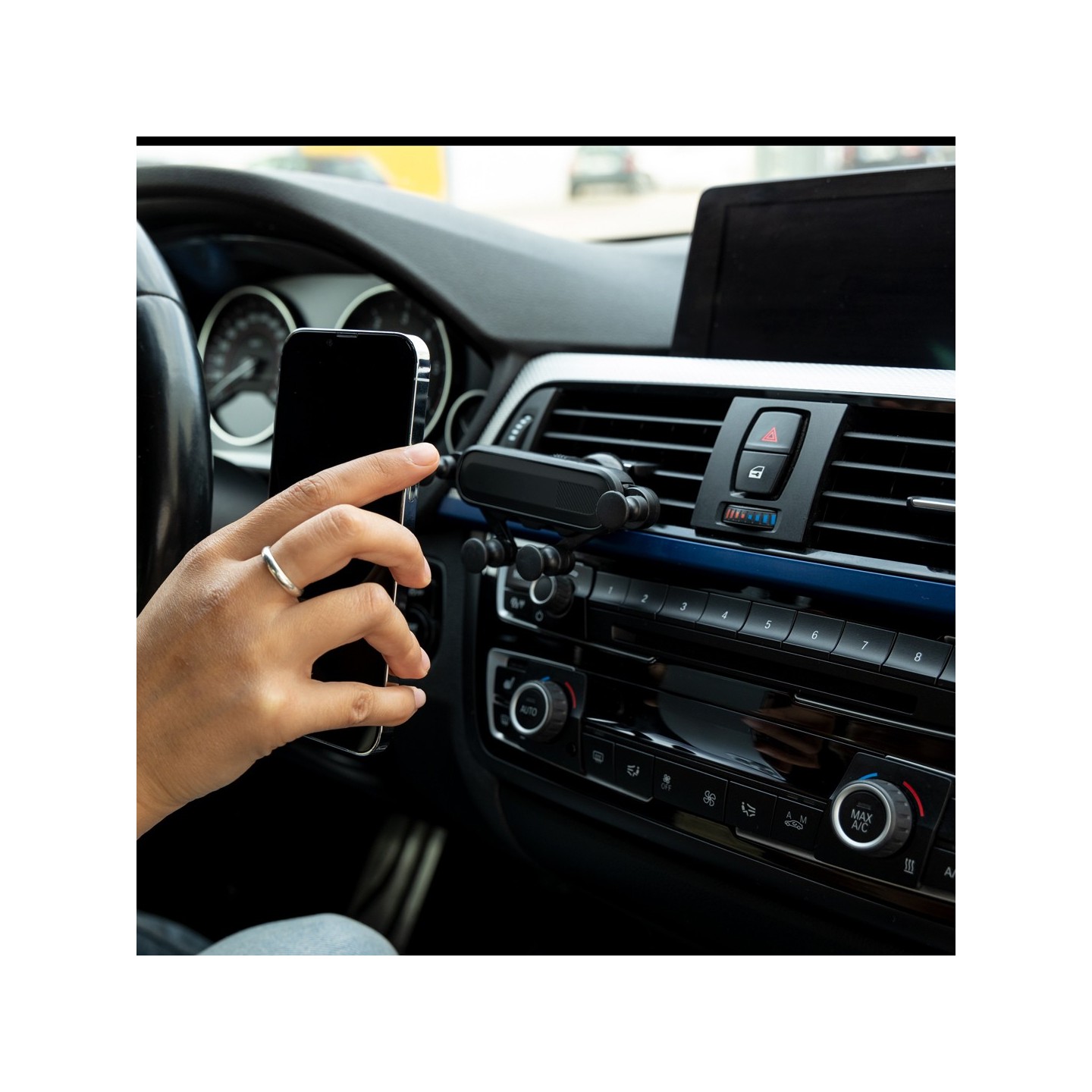 Su sistema de fijación universal se adapta con el propio peso del teléfono, ajustando los enganches de agarre automáticamente una vez se sitúa el dispositivo en el soporte. Esto garantiza un ajuste seguro y estable para tu smartphone, incluso en carreteras con baches o curvas pronunciadas.