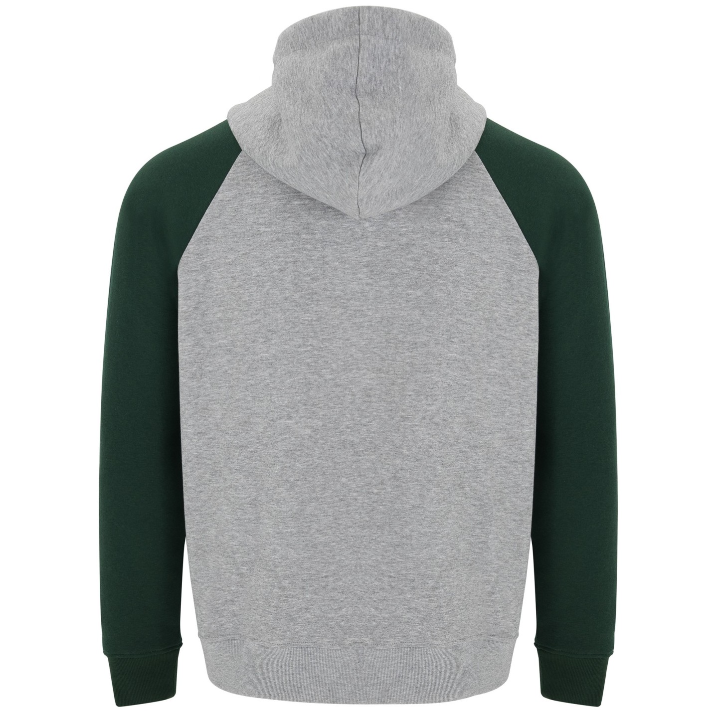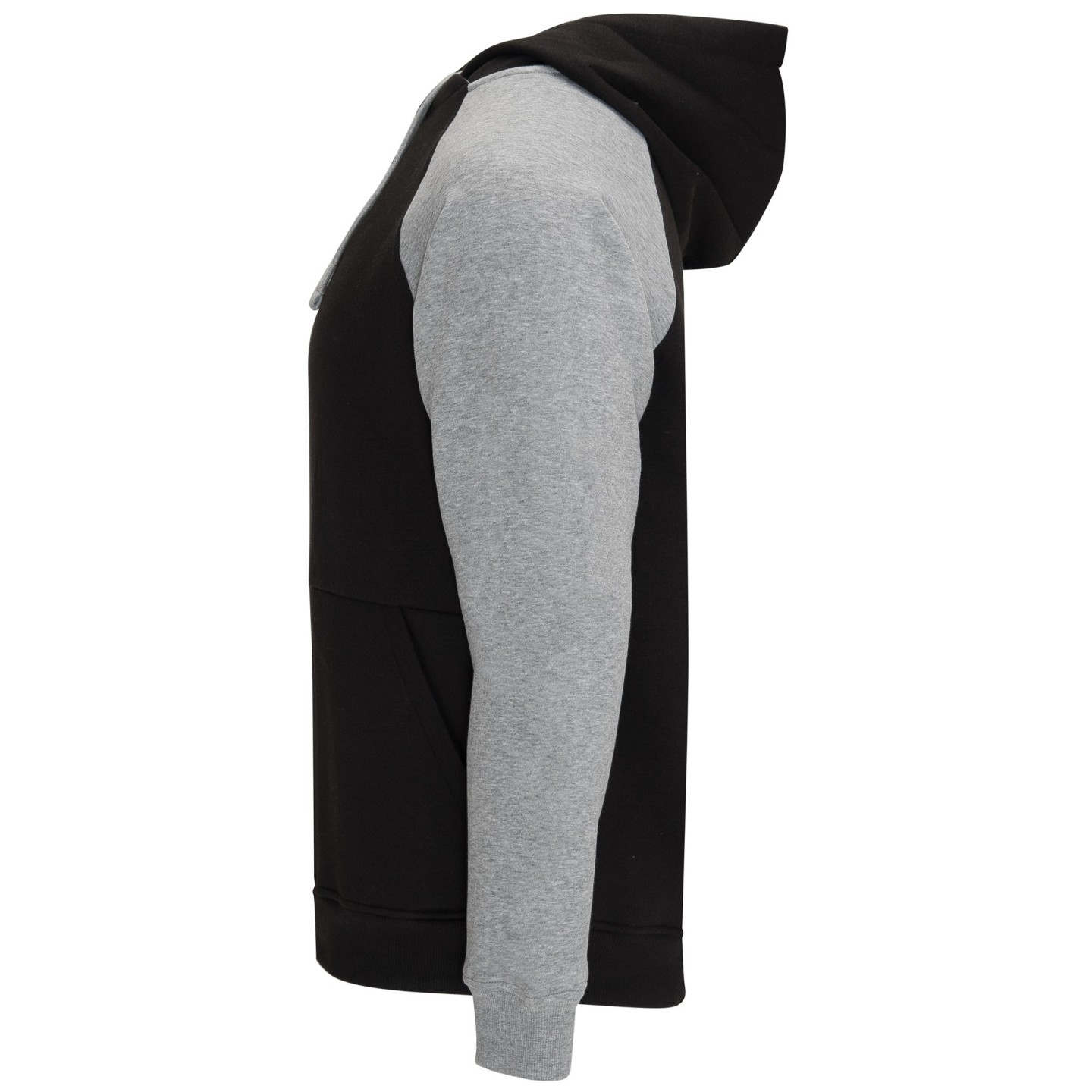 Sudadera unisex bicolor con capucha, bolsillo canguro y manga ranglán. Ideal para personalizar con logotipo en campañas promocionales y uniformes corporativos.