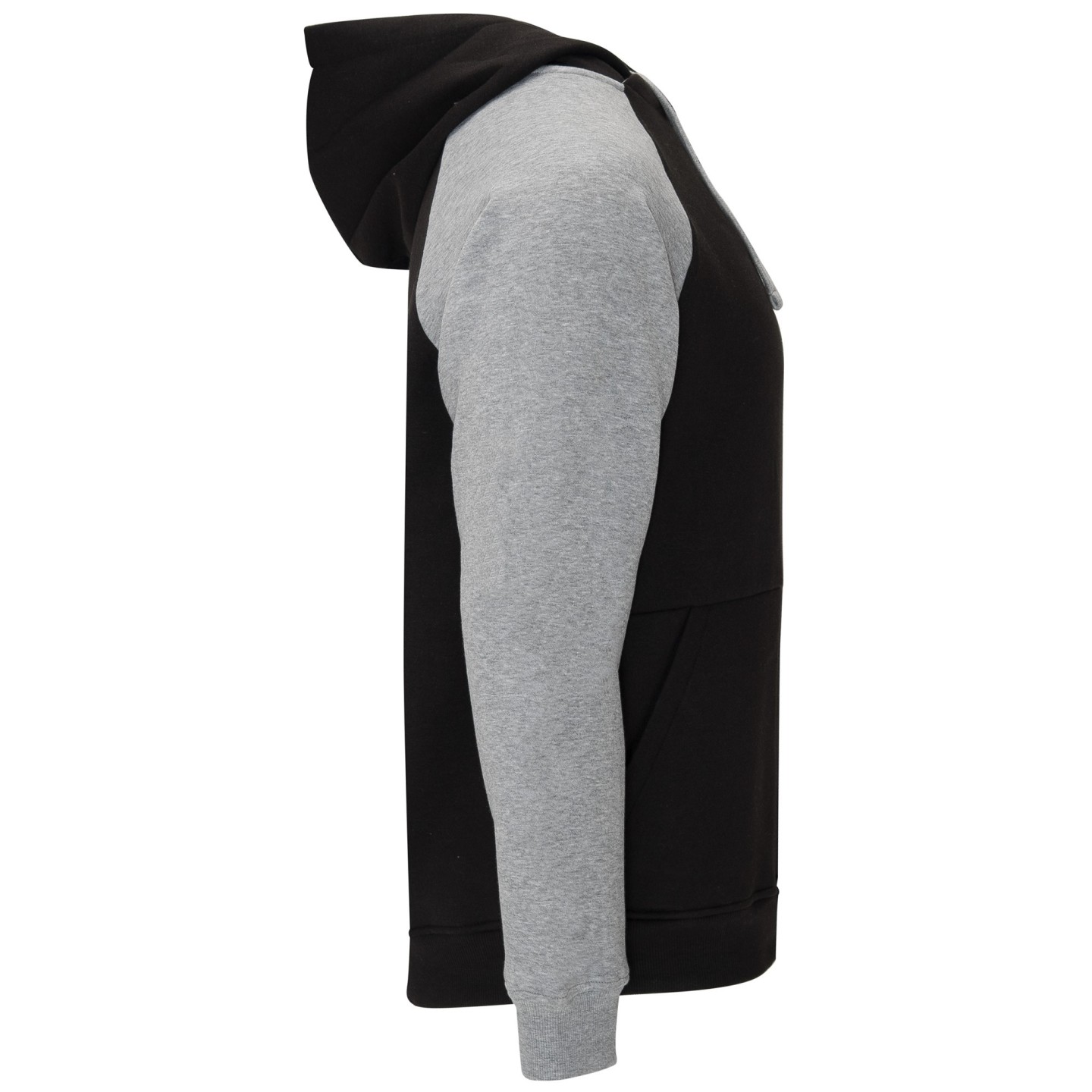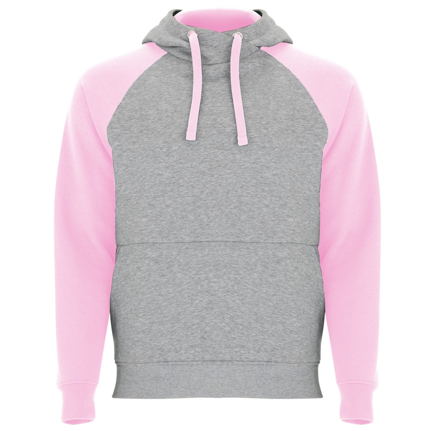 Sudadera infantil bicolor con capucha sin cordones, bolsillo canguro y manga ranglán. Ideal para personalizar con logotipo en promociones, uniformes y eventos escolares
