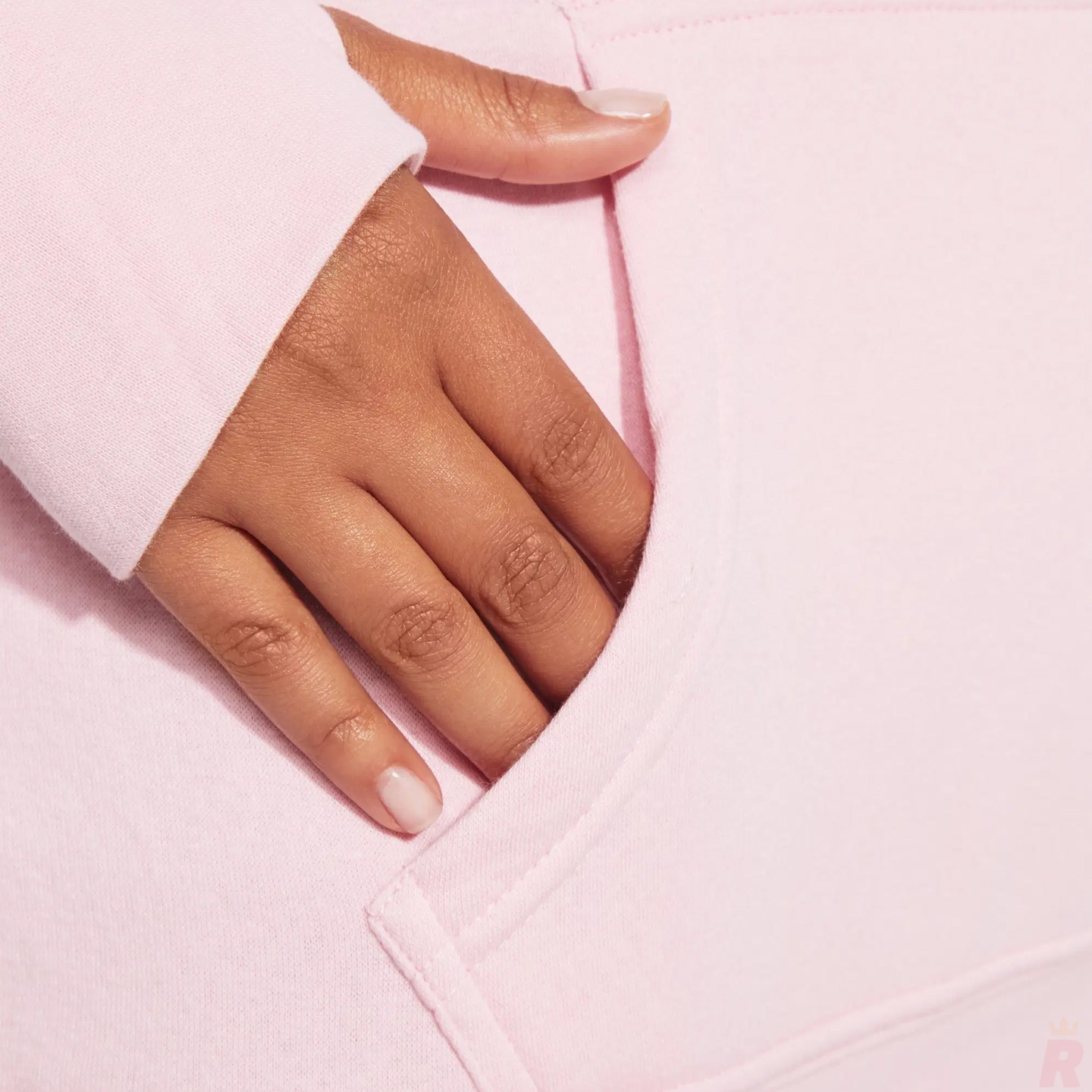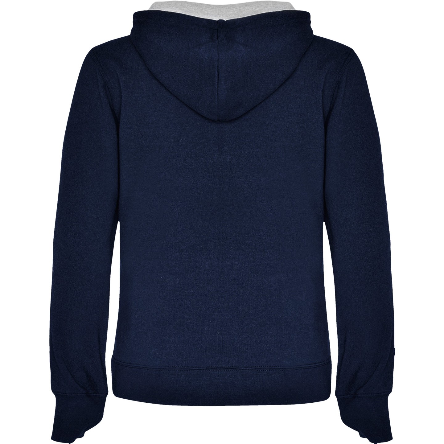 - Diseño: Entallado femenino, capucha bicolor de doble tejido con cordón contrastado ajustable, bolsillo canguro, cubrecosturas en cuello.