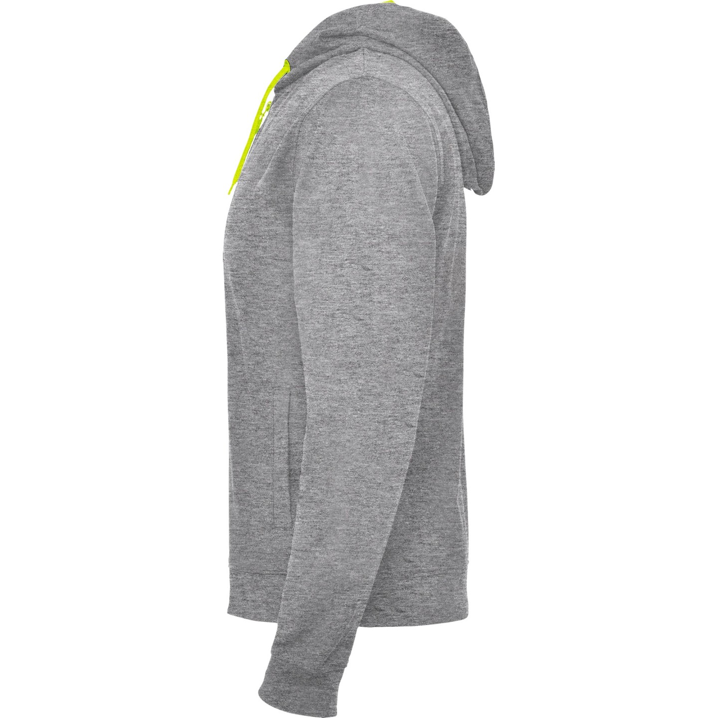 Su diseño bicolor presenta detalles en colores flúor que realzan el contraste, como la cremallera central de espiral con tirador metálico en forma de anilla y los cordones con ojales metálicos, todos en el mismo tono flúor. La capucha forrada en poliéster microperforado proporciona un toque técnico y deportivo, permitiendo una mejor transpiración y una estética más profesional.