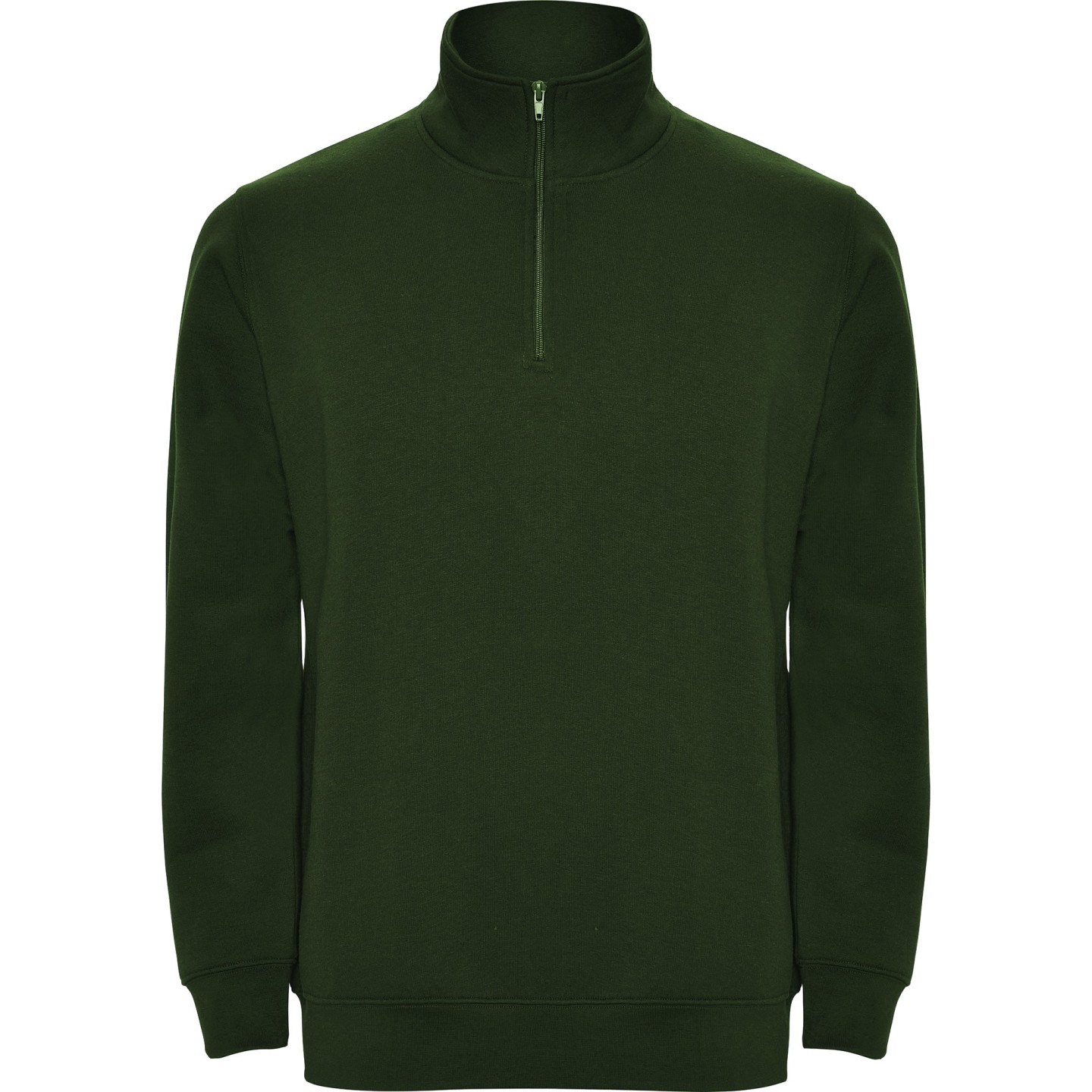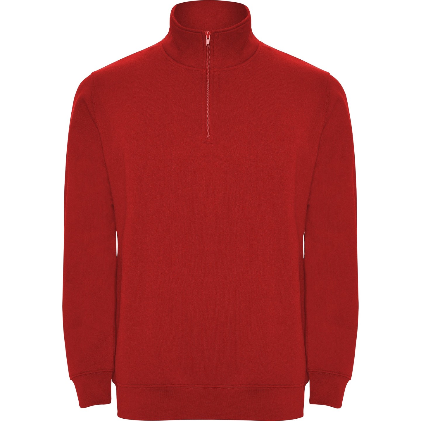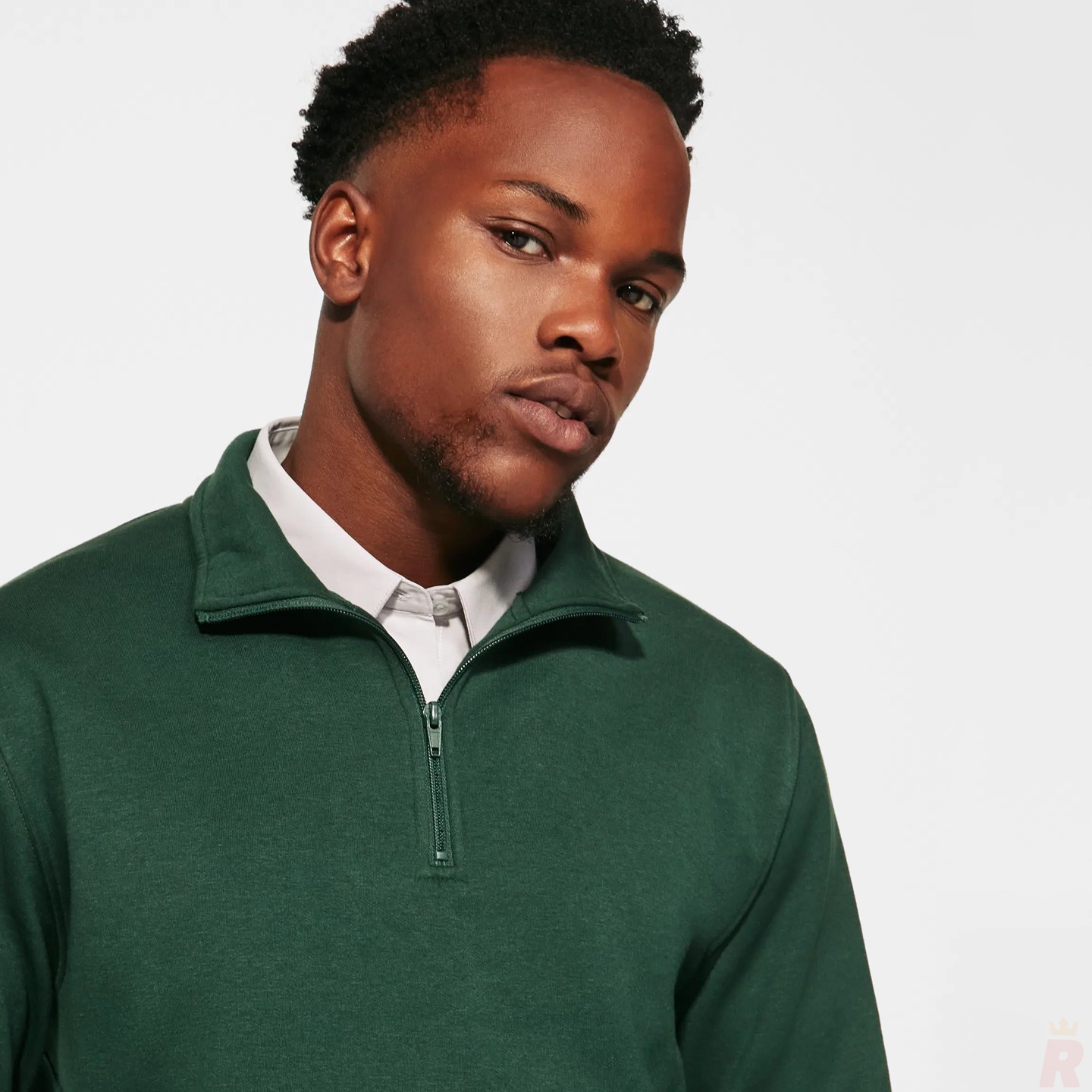 Sudadera laboral con media cremallera y cuello alto, ideal para personalizar con logotipo. Perfecta para uniformes de trabajo, promociones y uso diario en actividades profesionales y de ocio.