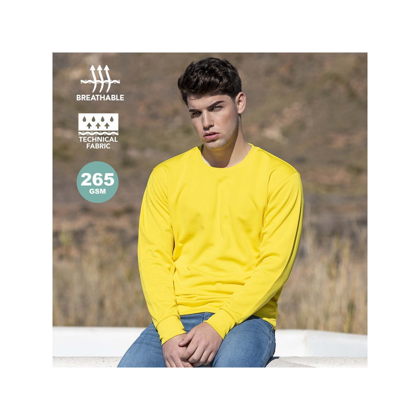 Esta sudadera está diseñada para brindar comodidad y libertad de movimiento, ideal tanto para actividades deportivas como para uso diario. Su tejido técnico de poliéster proporciona transpirabilidad y rápida absorción del sudor, manteniendo al usuario fresco y seco.