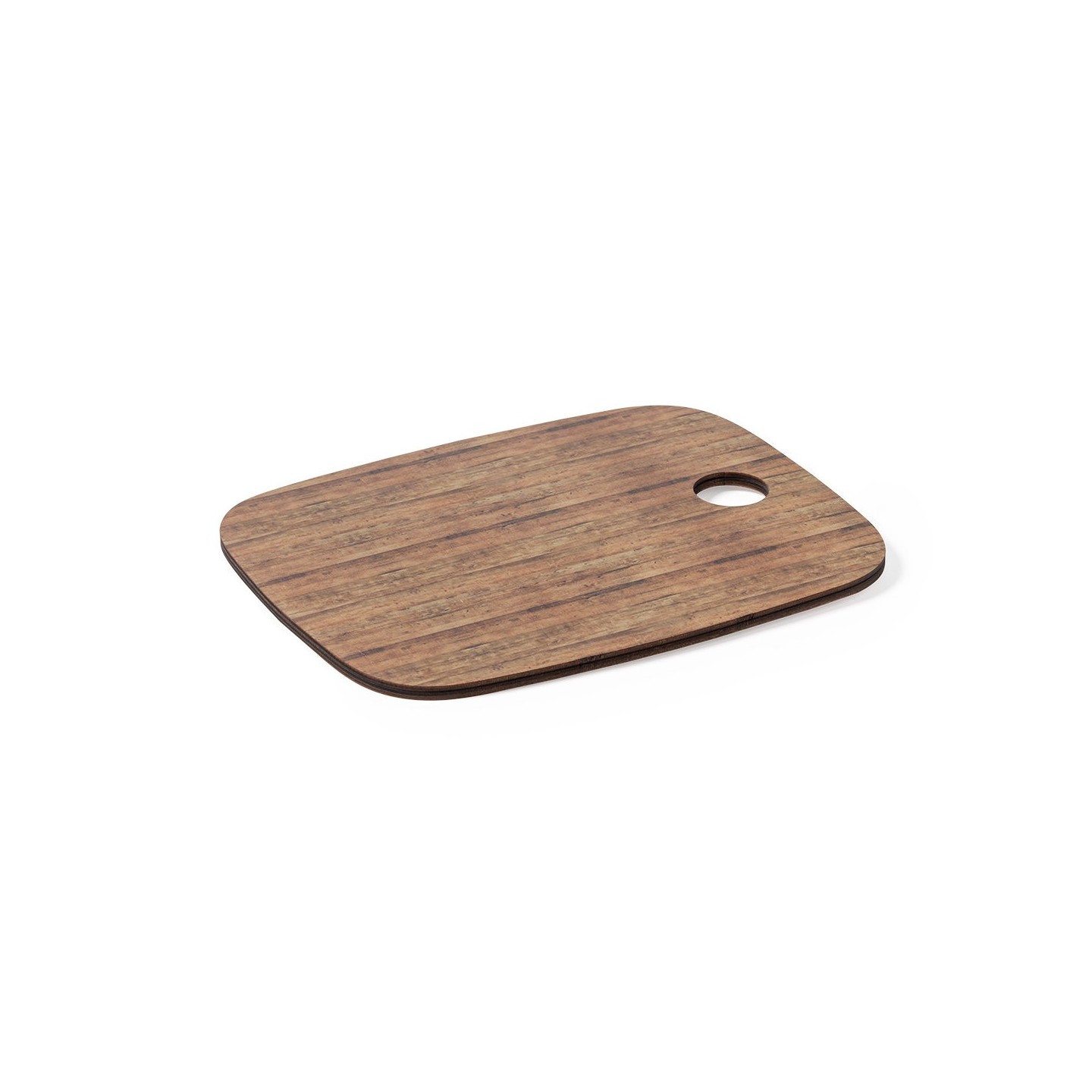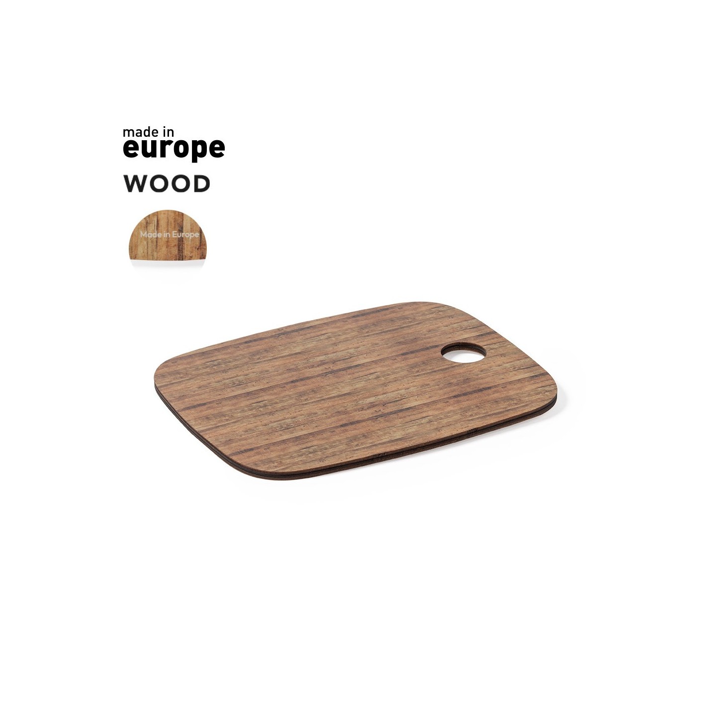Descubre la tabla Cyntiax, perfecta para cortar y presentar tus alimentos. Fabricada en madera natural, esta tabla cuenta con un agujero para colgarla y mantenerla siempre a mano en tu cocina. Con su amplia superficie de marcaje, podrás personalizarla con tu logo o mensaje promocional.