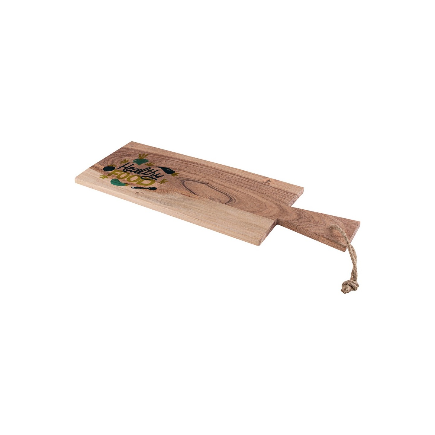 La Tabla Cocina Quiles es de acacia, 40,5 x 13,5 x 1 cm, cordon de yute para mejor agarre. Elegancia y funcionalidad en cada corte.
