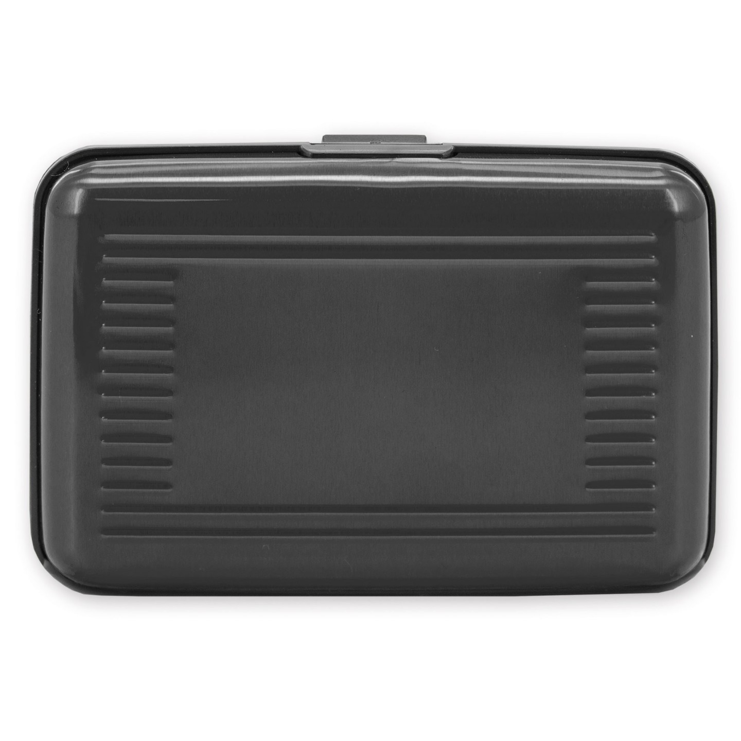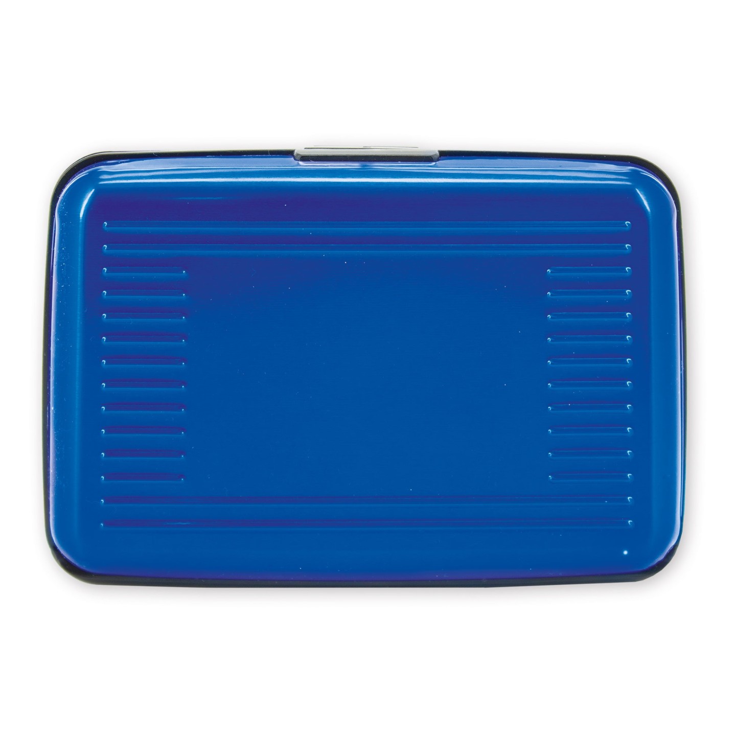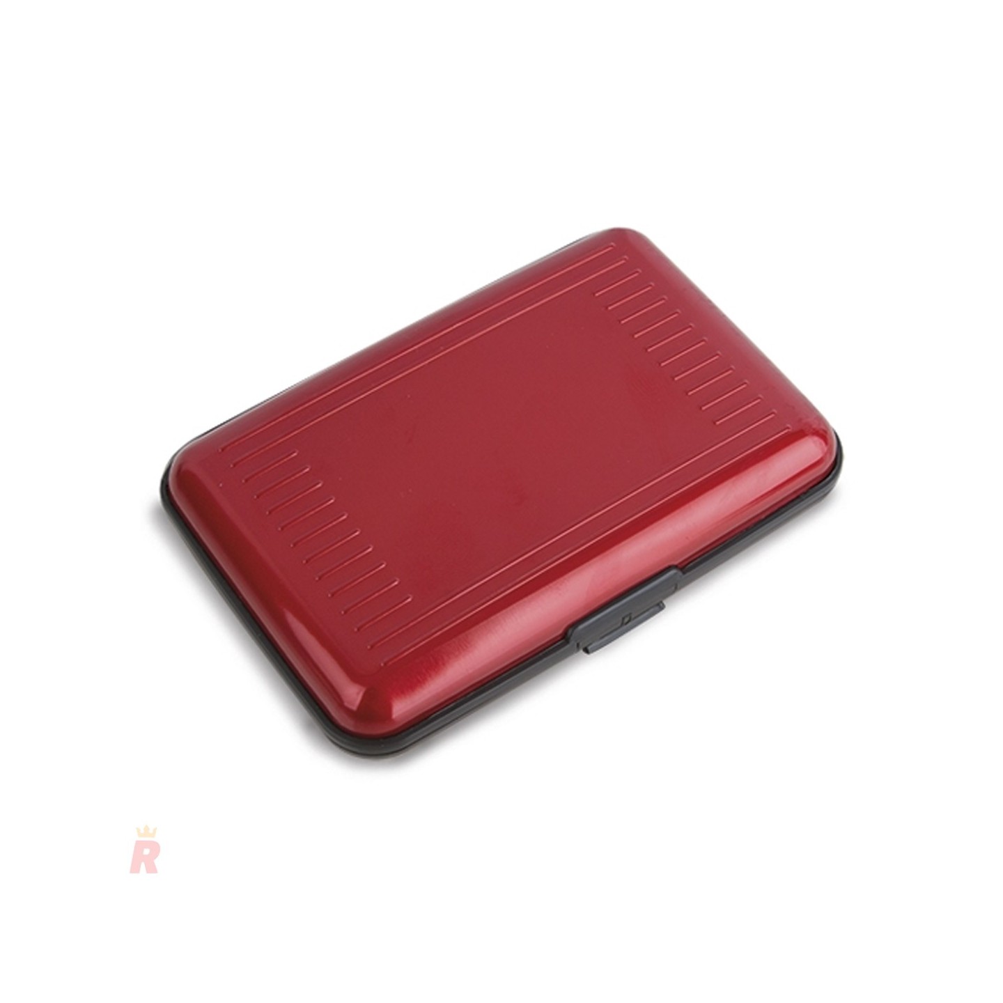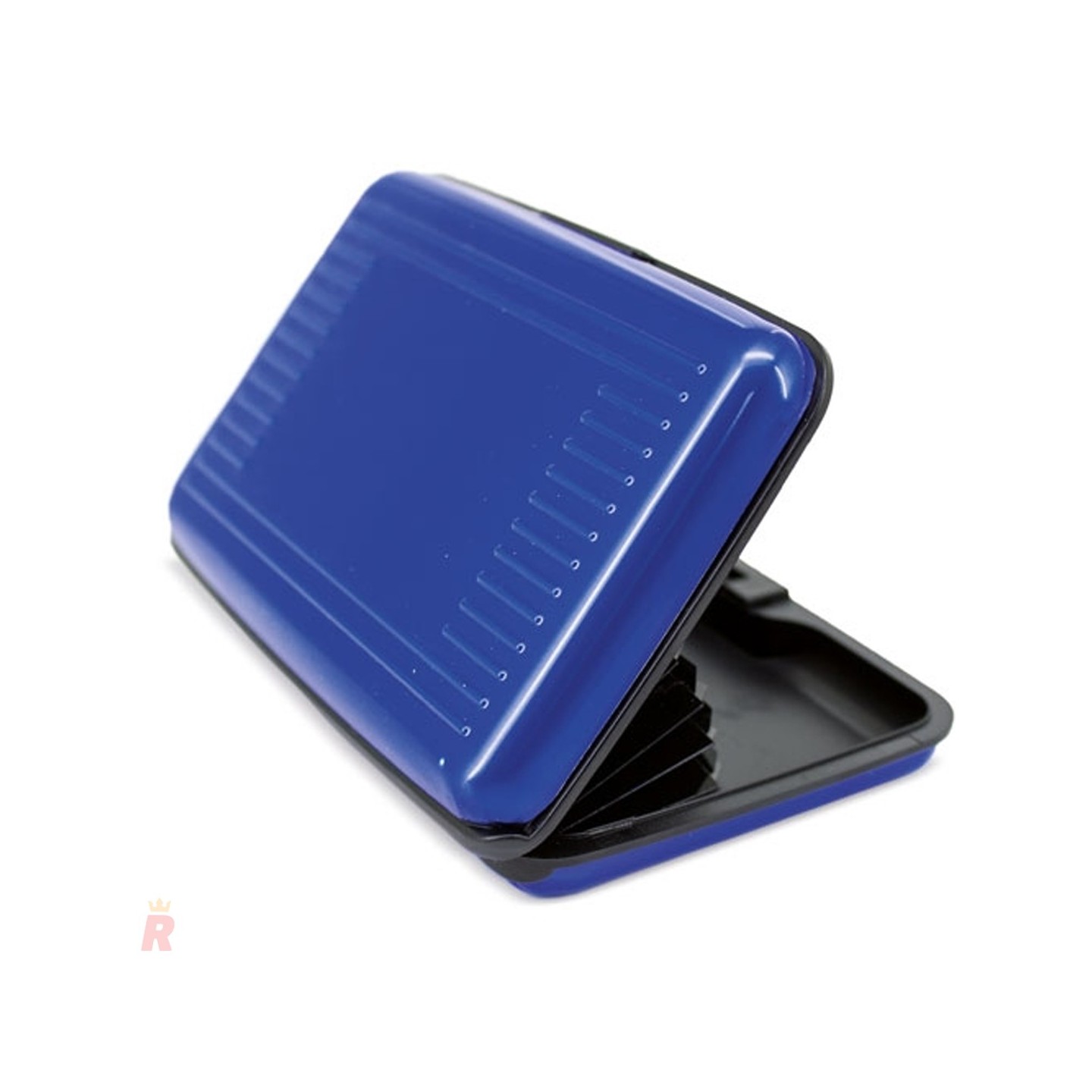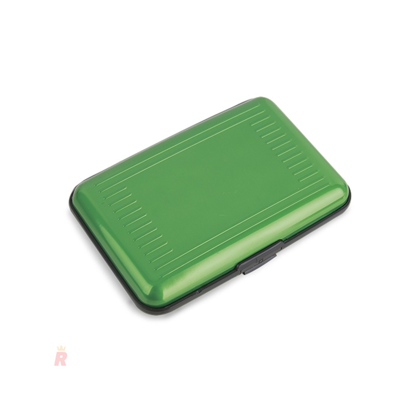 Tarjetero metálico tipo acordeón con protección RFID, evita el robo de datos de tus tarjetas. Diseño compacto y resistente, con cierre de seguridad y colores metalizados