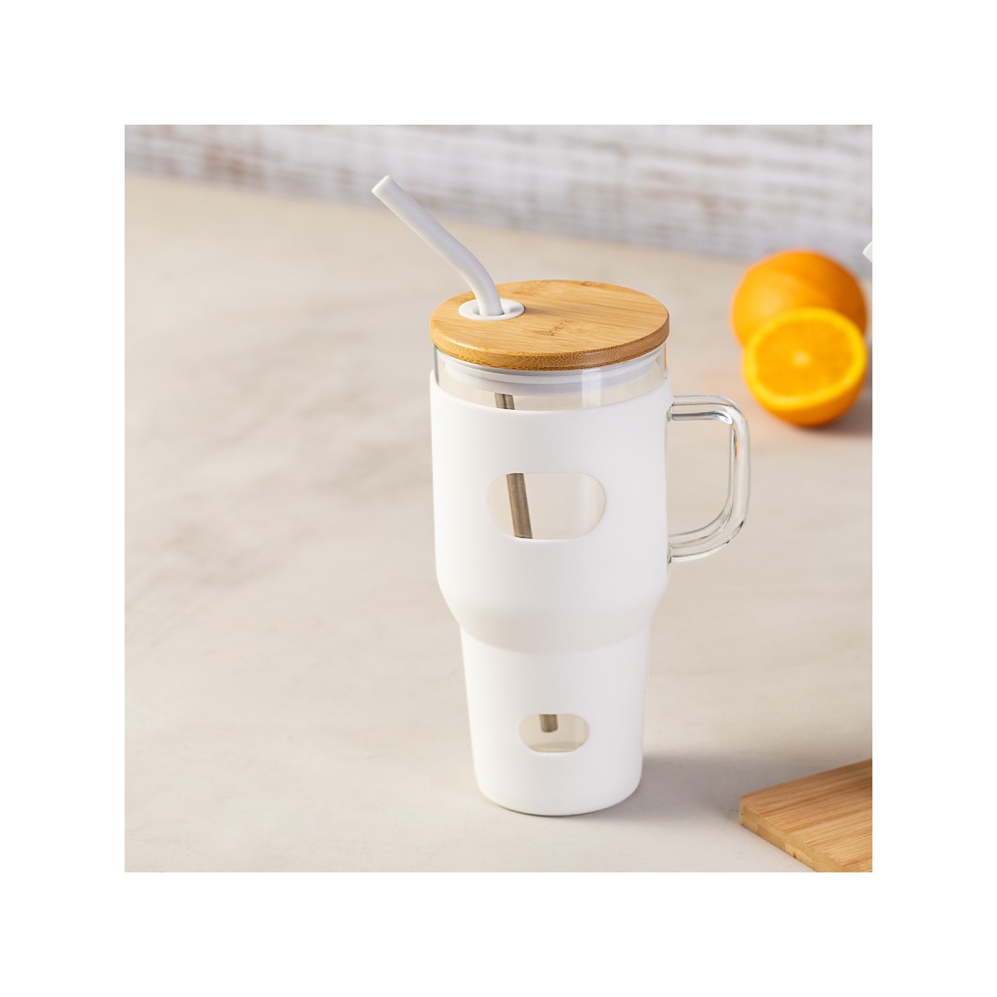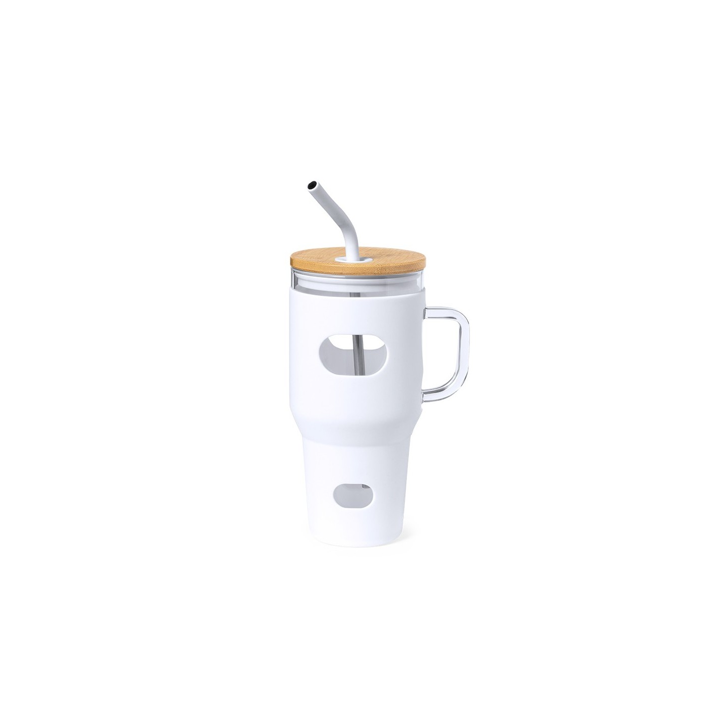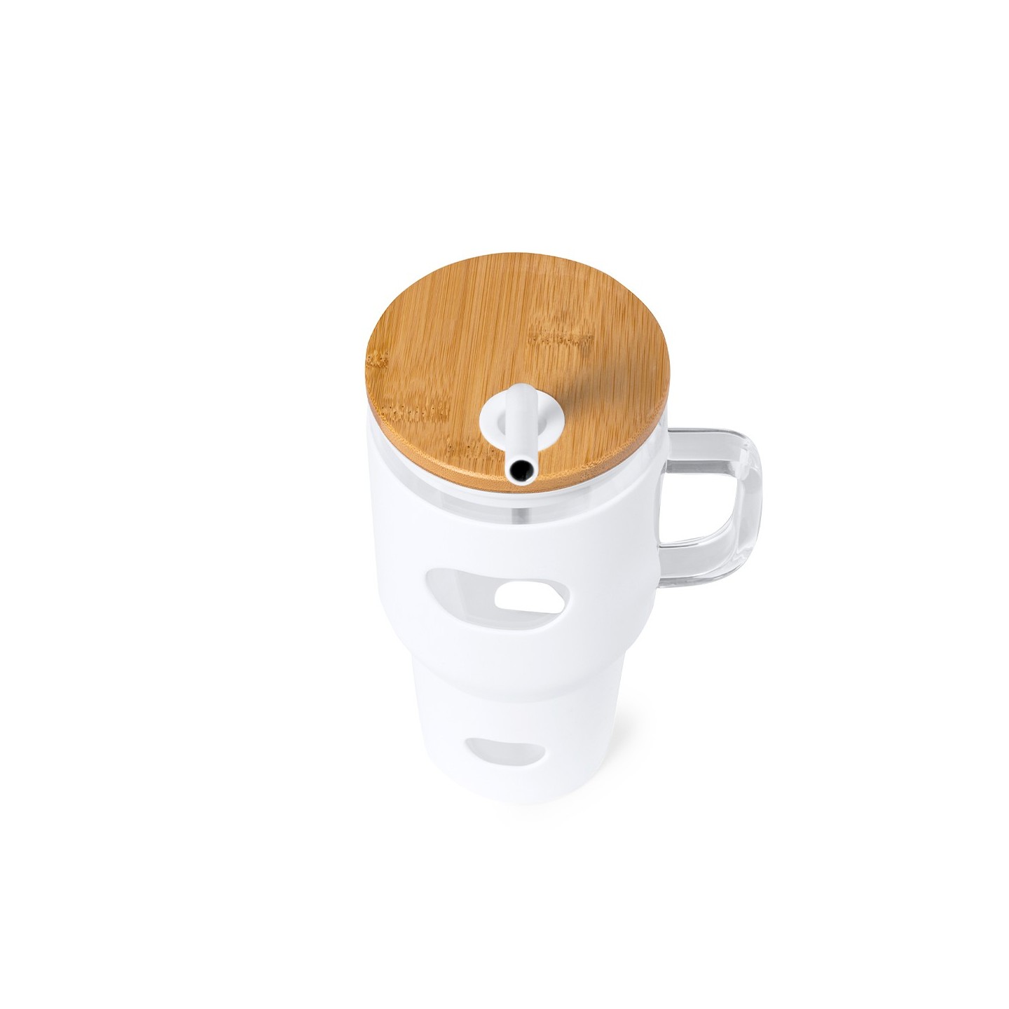 Su tapa, elaborada en bambú a presión, dispone de un orificio específico para su pajita acompañante. La pajita, fabricada en acero inoxidable con punta recubierta de silicona, ofrece una experiencia segura y cómoda al disfrutar de tus bebidas preferidas.