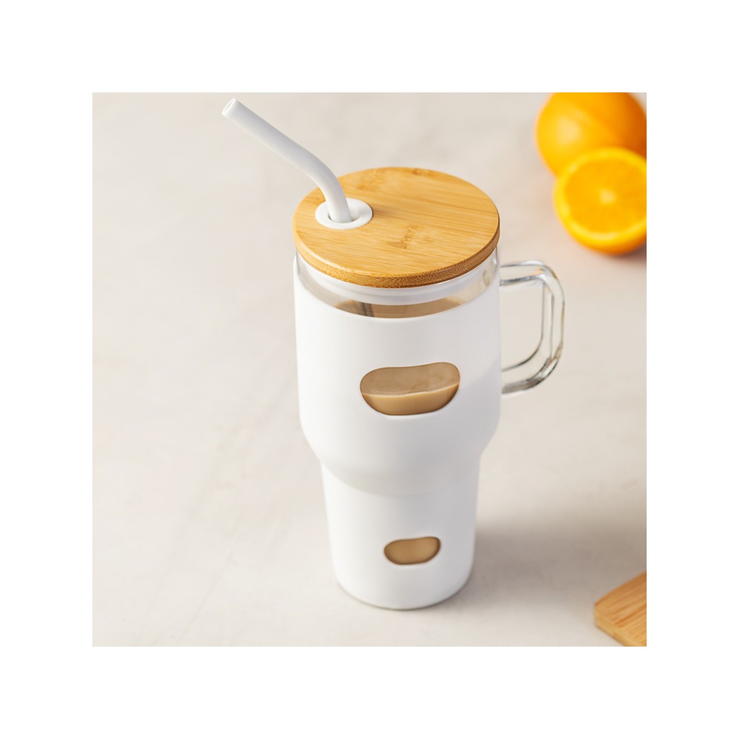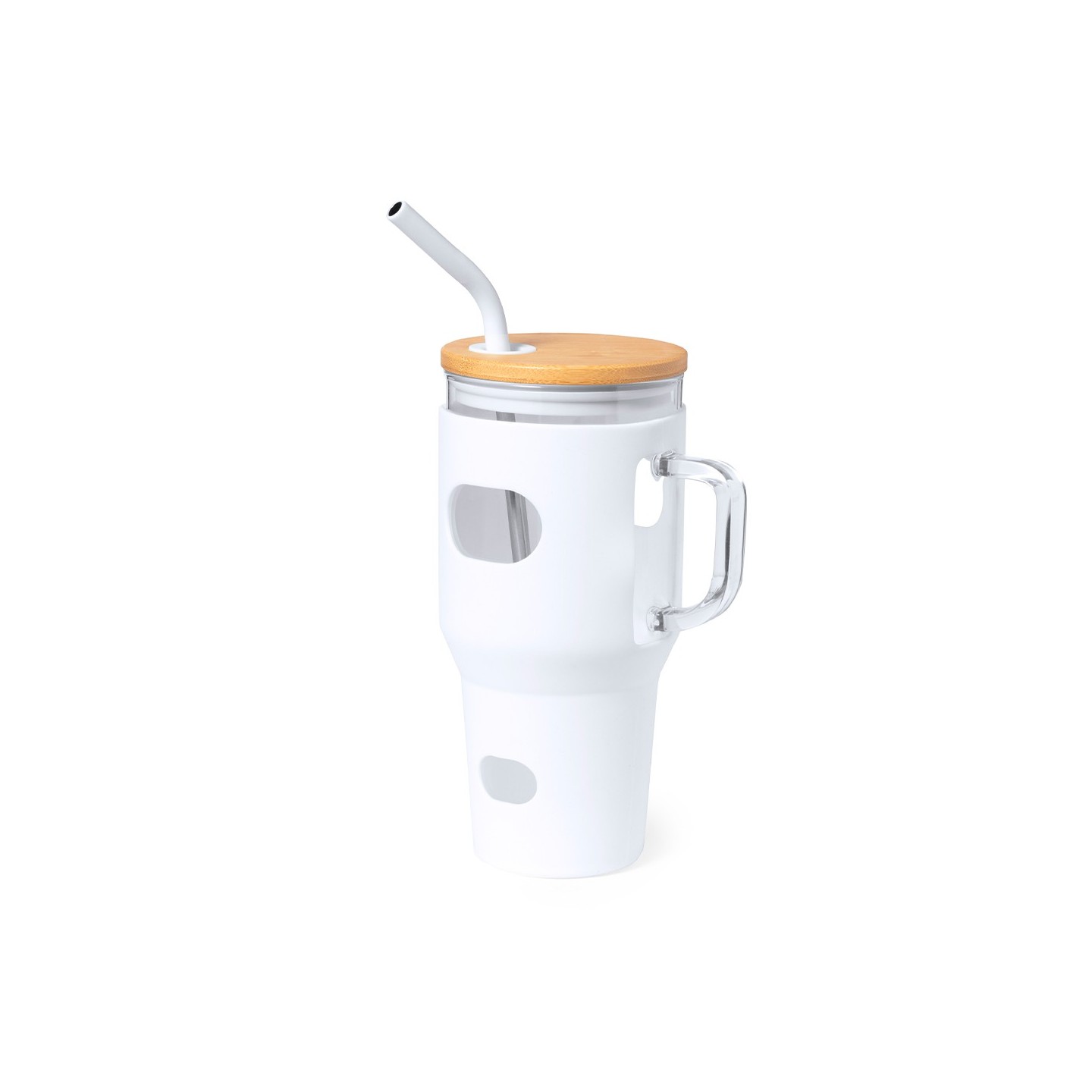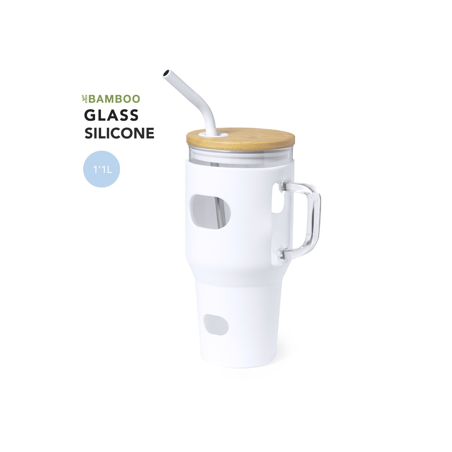 Con un diseño inteligente, este tarro incorpora un asa para transporte cómodo y una funda protectora de silicona, garantizando un agarre seguro y cómodo.