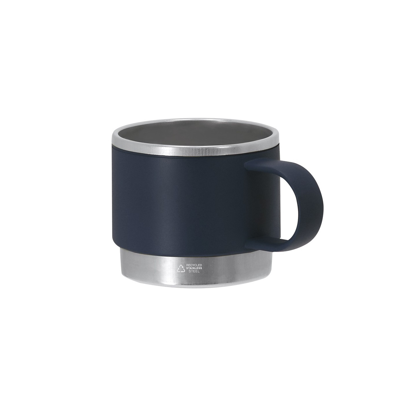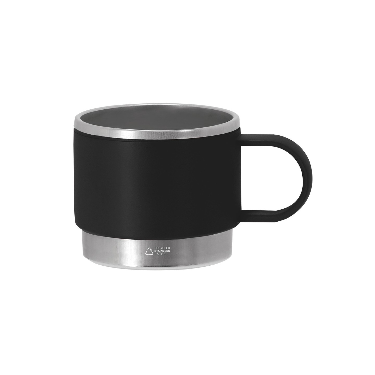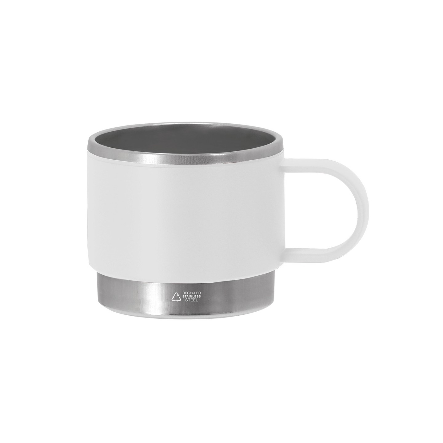 La base y el borde de la taza están hechos de acero inoxidable reciclado, un material conocido por su durabilidad y alto grado de reutilización. El acero inoxidable es un material versátil que se encuentra en muchos productos de uso diario, desde utensilios hasta grandes construcciones, lo que lo convierte en una opción altamente valorada en soluciones sostenibles.