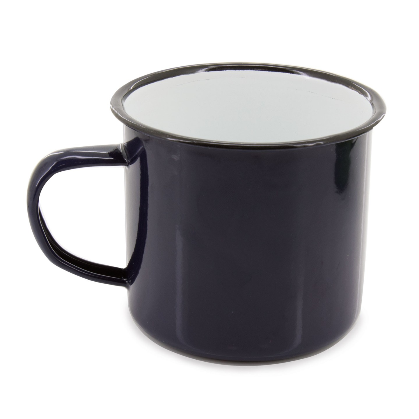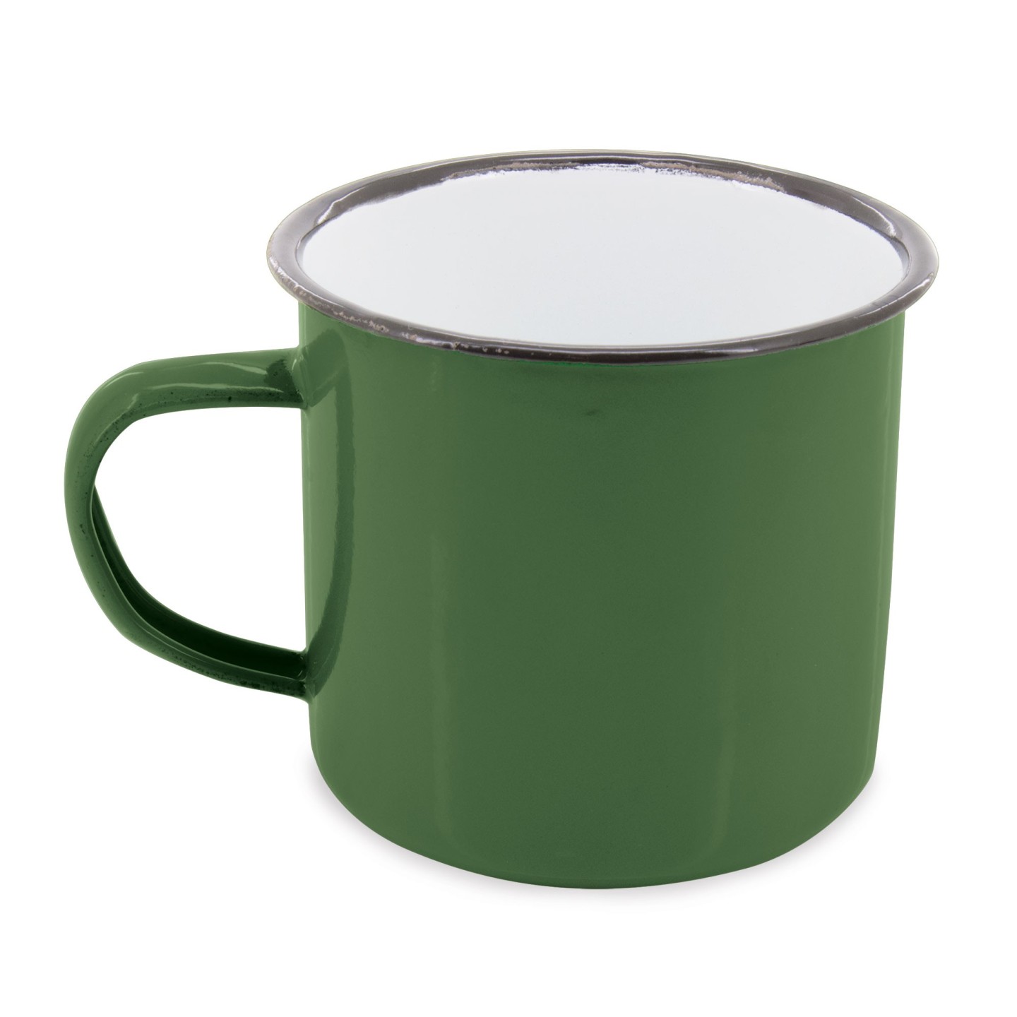 Taza Esmaltada RETRO de 350 ml, diseño vintage con borde negro, interior blanco y cuerpo a juego con el asa. Personalizable con tu logotipo. Ideal para promociones.