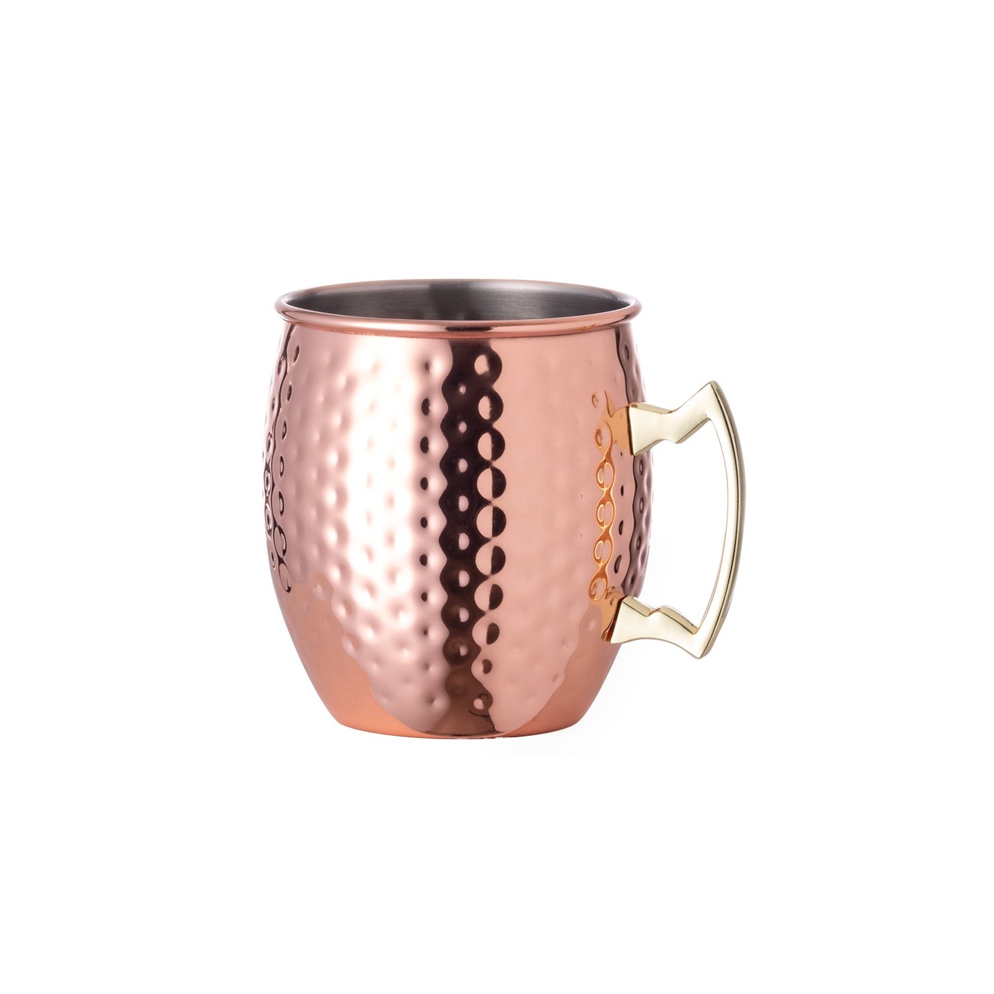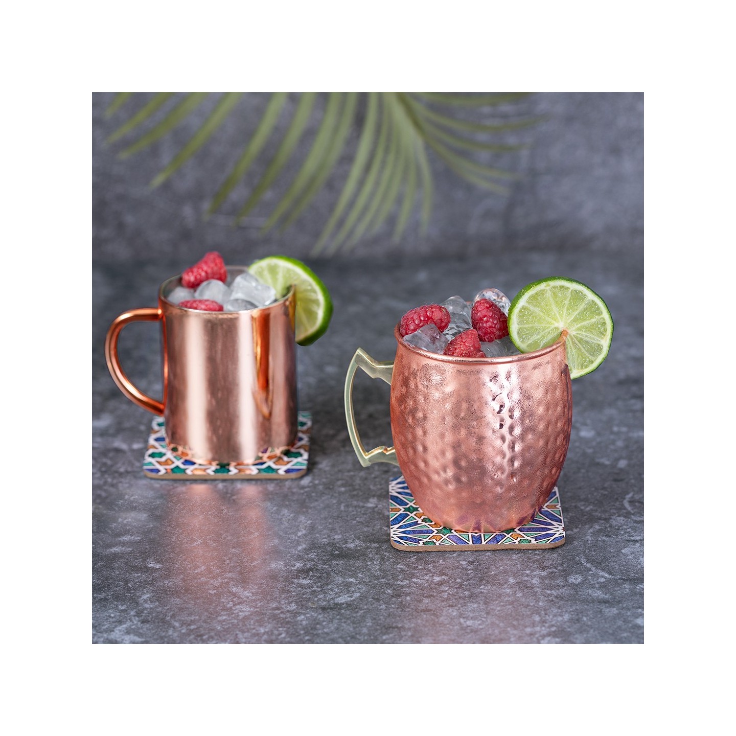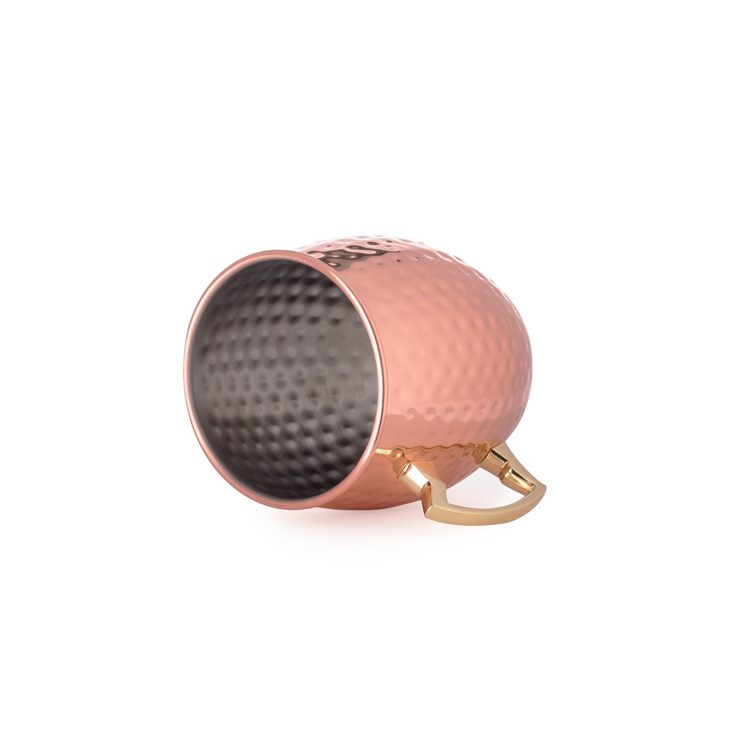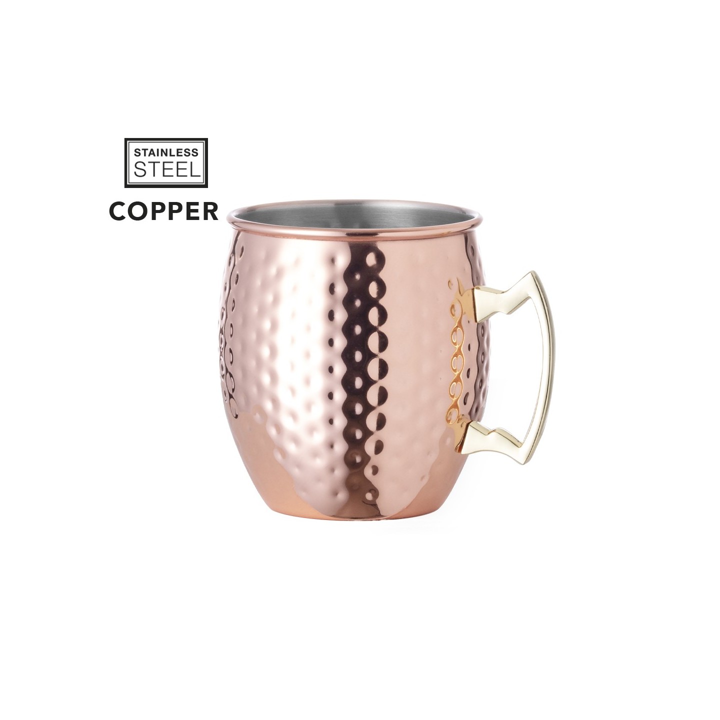 Disfruta de tus bebidas favoritas con estilo y elegancia con la Taza Indya. Con una capacidad de 500 ml, está fabricada en acero inoxidable con un atractivo recubrimiento exterior de cobre galvanizado, que le otorga un diseño original, vintage y brillante.