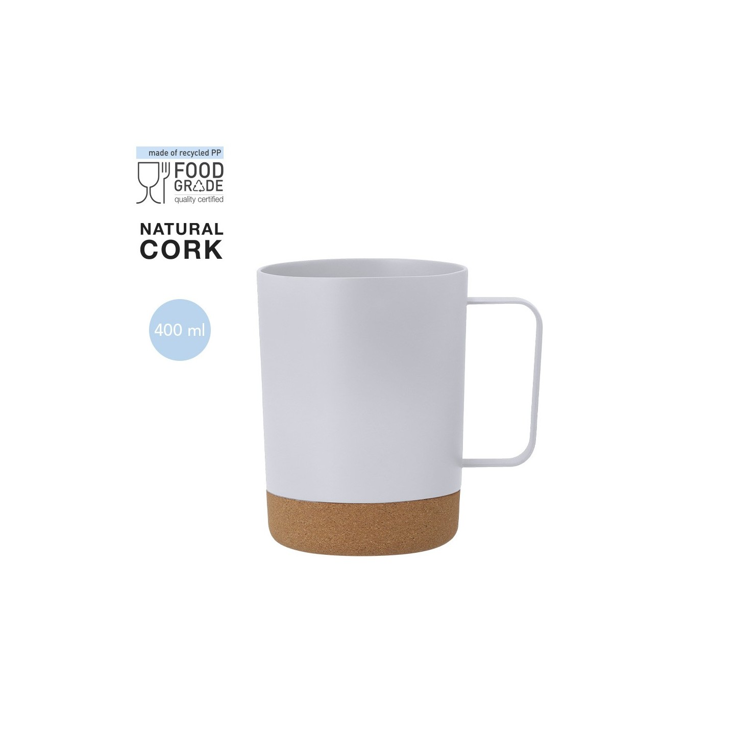La Taza Jurgen es una combinación perfecta de diseño distintivo y sostenibilidad, ideal para quienes buscan un artículo práctico y atractivo que refleje su compromiso con el medio ambiente. Fabricada en resistente PP Reciclado y corcho natural, esta taza ofrece una capacidad de 400 ml, perfecta para disfrutar de tus bebidas favoritas, ya sea en casa, en la oficina o en cualquier espacio.