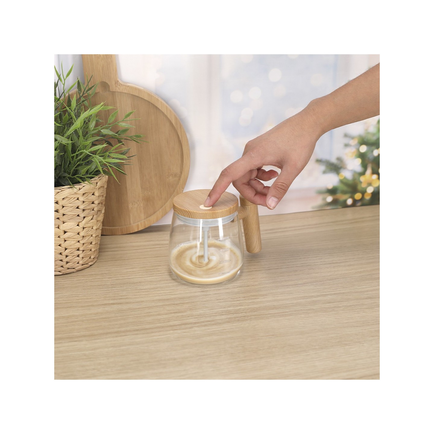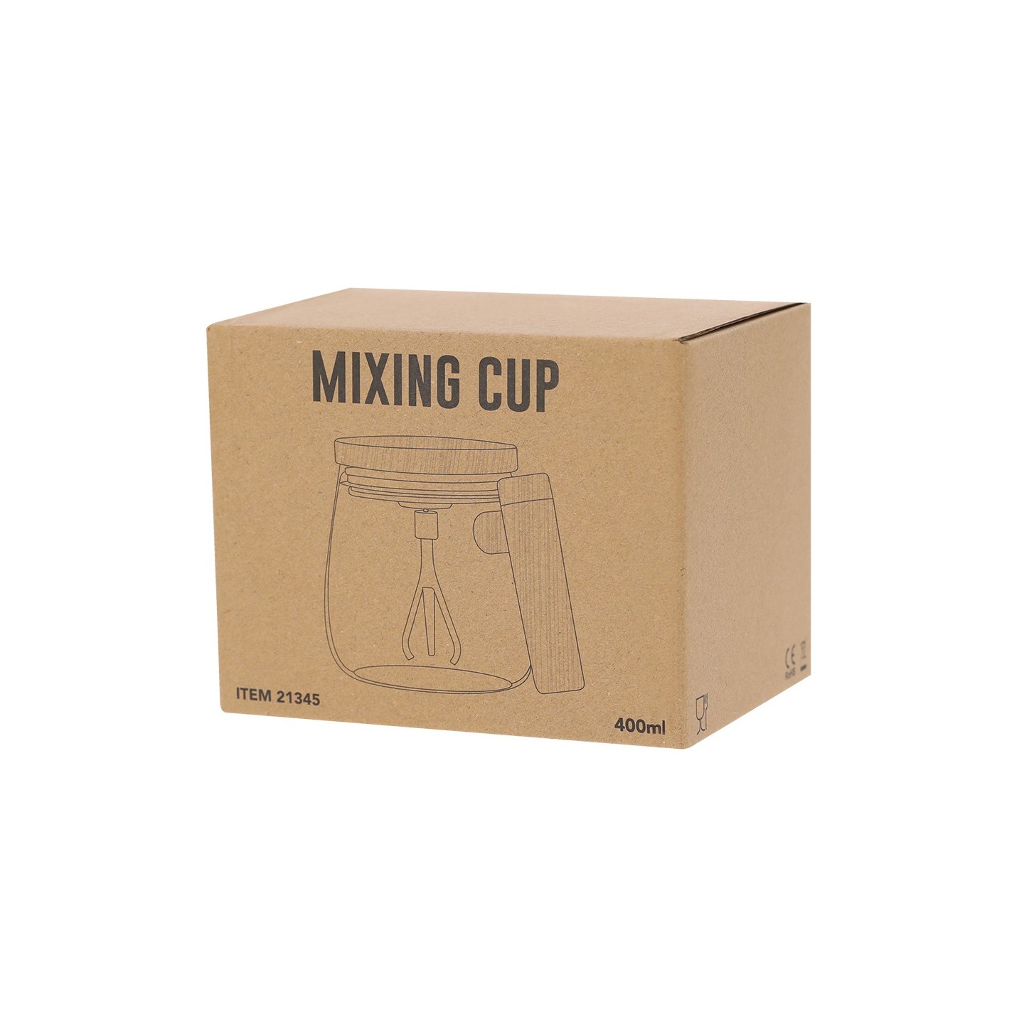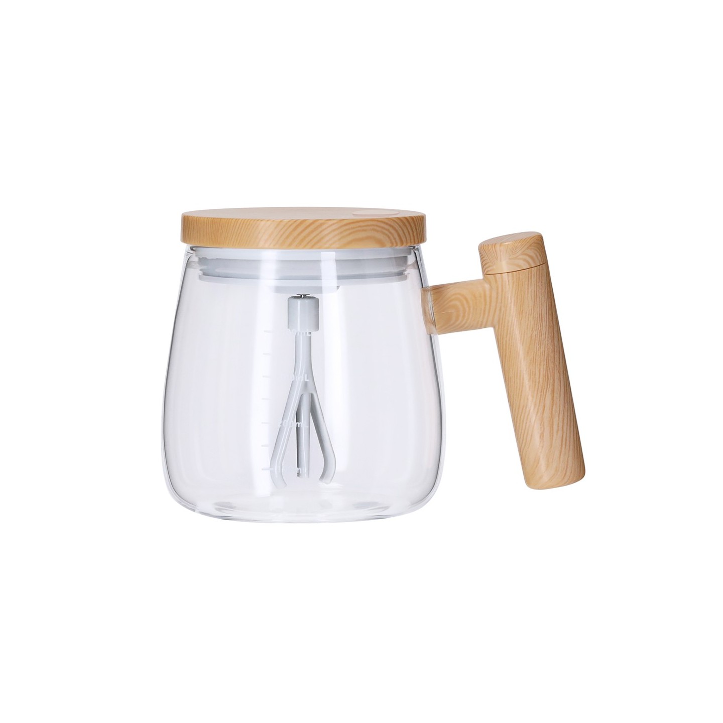 La Taza Mezcladora Rydian de 400 ml, en cristal de borosilicato, incluye un agitador eléctrico y compartimento en el mango. Personalizable, ideal para regalos corporativos.