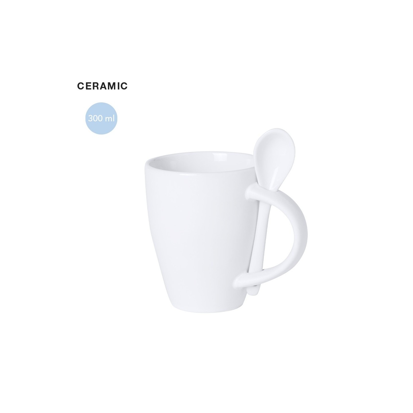 La Taza Samay es perfecta para disfrutar de tus bebidas favoritas. Con capacidad de 300ml, esta taza de cerámica en color blanco es elegante y funcional. Además, cuenta con una cuchara de cerámica integrada en el asa, lo que la hace aún más práctica. Presentada en una caja individual, es ideal como regalo personalizado para tus seres queridos o para promocionar tu empresa.