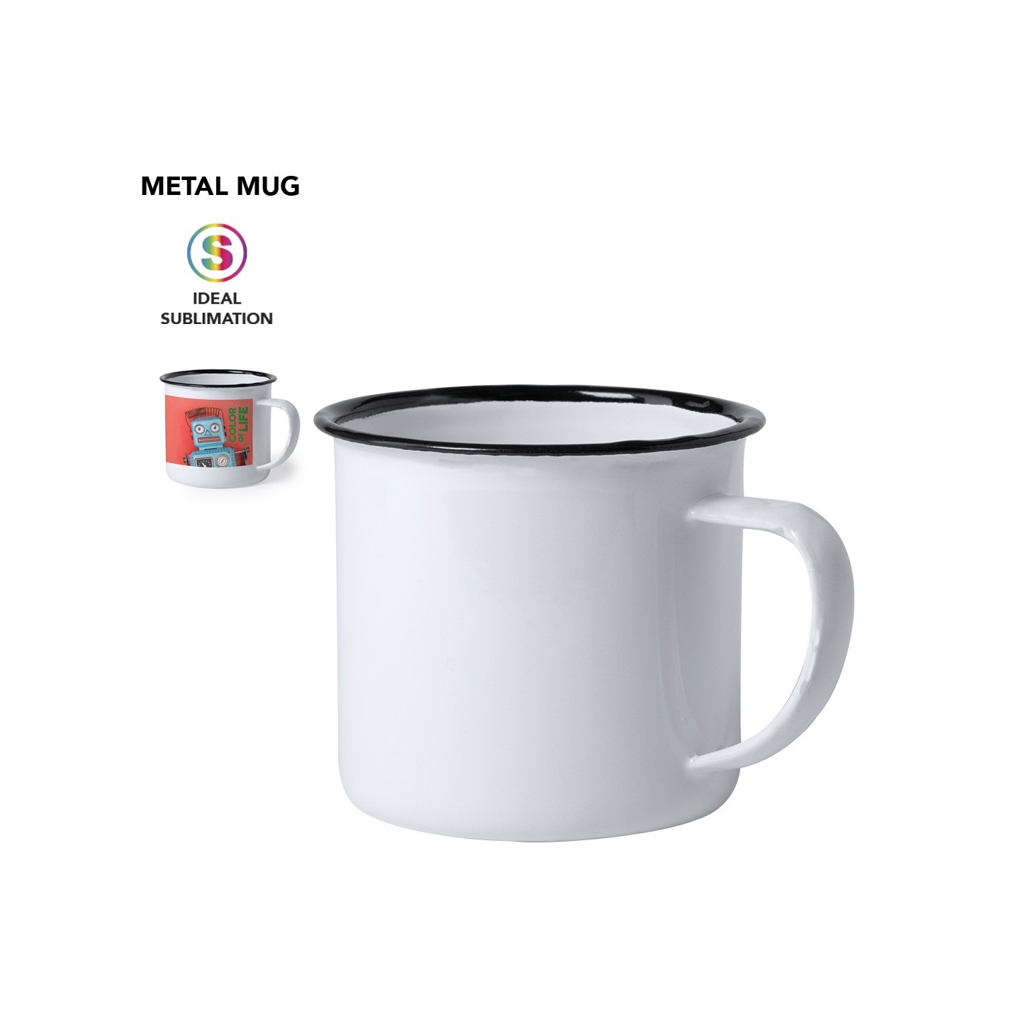 En resumen, si buscas una taza metálica con diseño retro y la opción de personalizarla, la Taza Sublimación Kantol es la elección ideal. Con su capacidad generosa, elegante detalle en color negro y acabado vintage, esta taza te ofrece una combinación perfecta de estilo y funcionalidad. ¡Destaca tu marca y disfruta de tus bebidas con la Taza Sublimación Kantol!