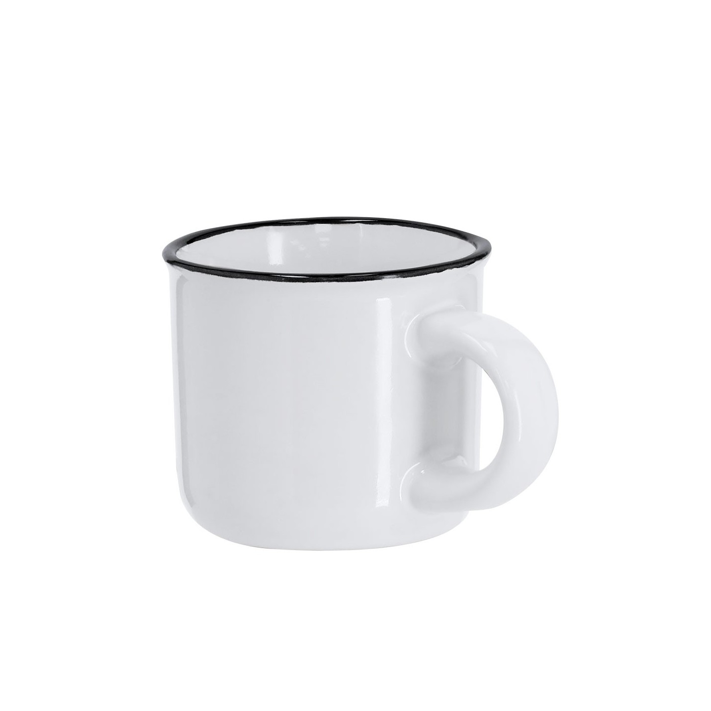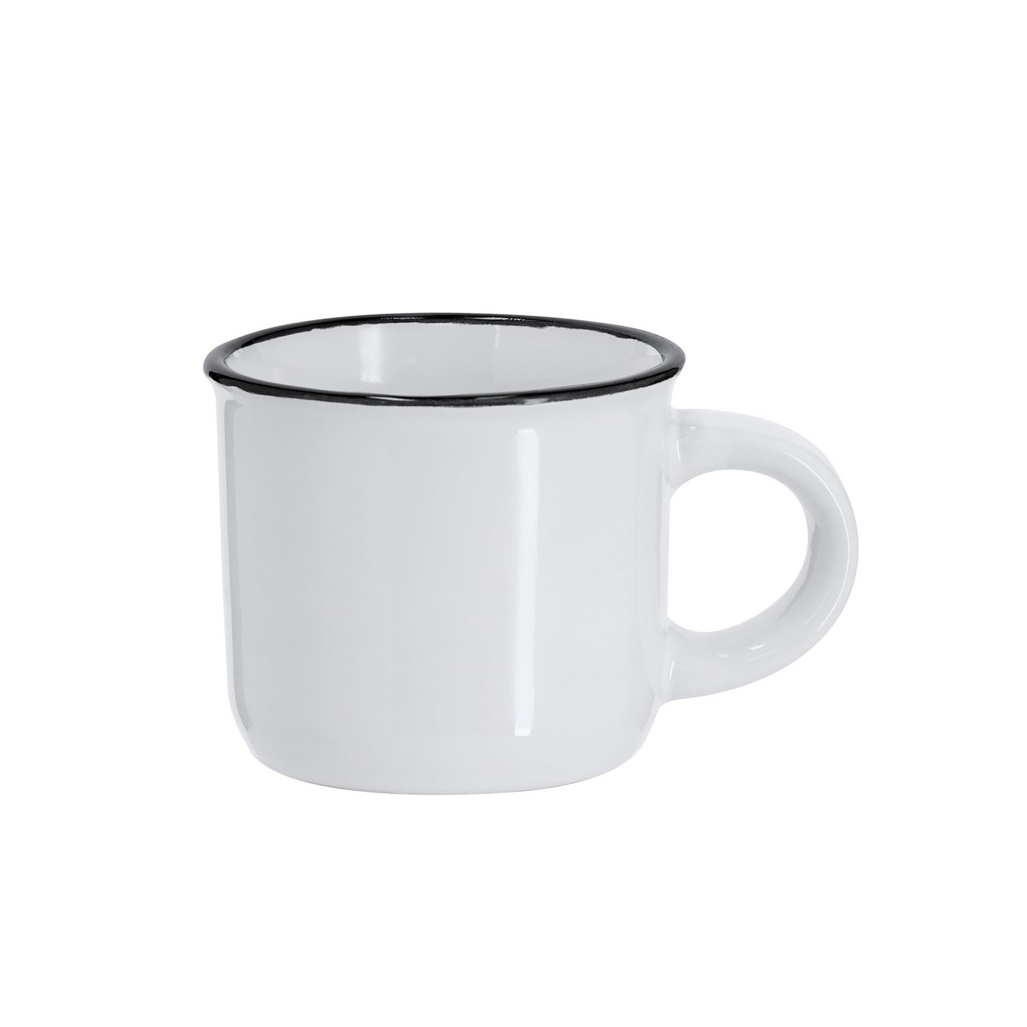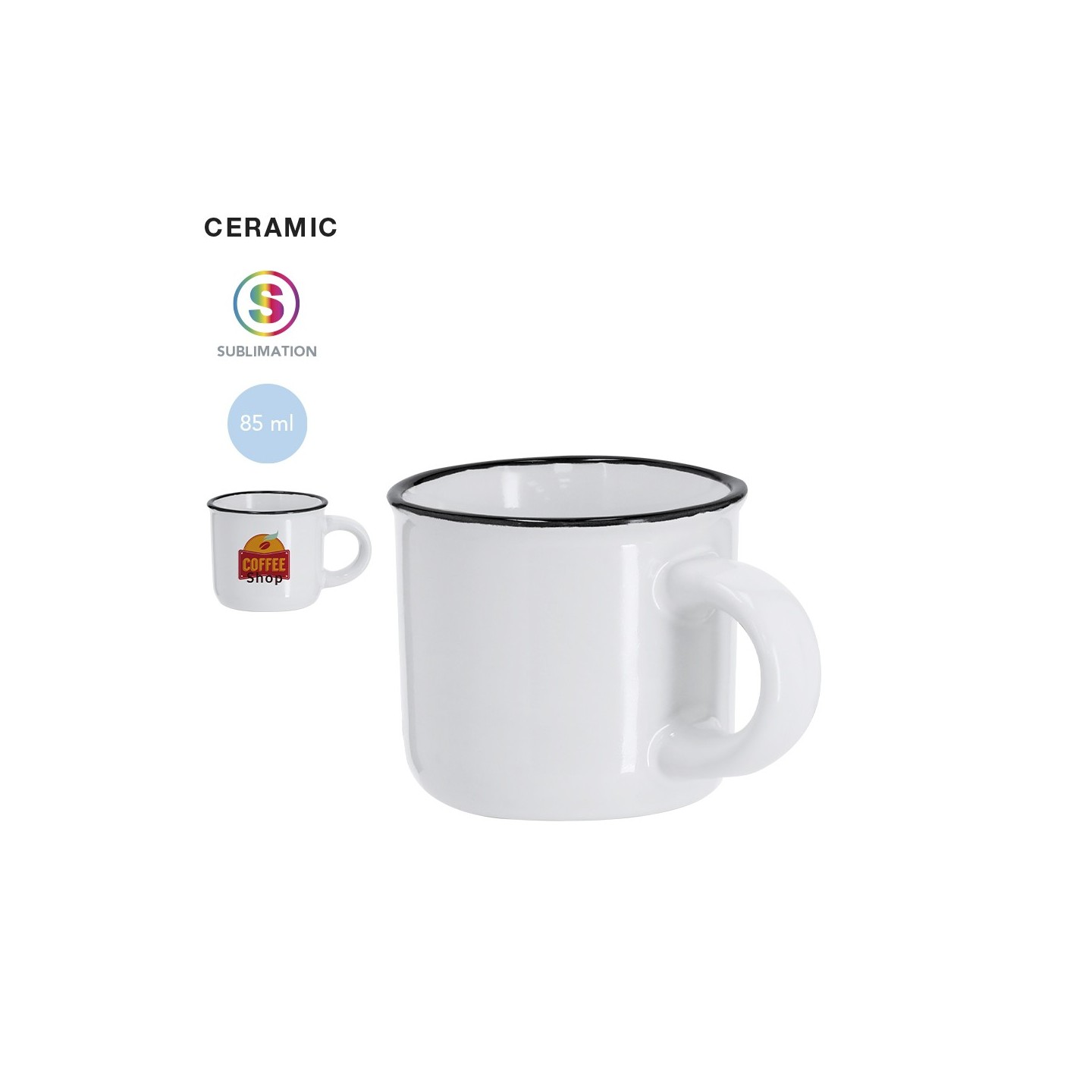 La Taza Sublimación MONBEIK es el regalo perfecto para empresas que desean ofrecer productos promocionales personalizados con un toque único y elegante. Con una capacidad de 85 ml, esta taza de cerámica presenta un diseño vintage que la hace especial, destacándose por su elegante combinación de colores. El borde de la taza tiene una anilla de color negra, mientras que el cuerpo es de un blanco puro, proporcionando un contraste visual atractivo que destaca la personalización que puedes agregarle.