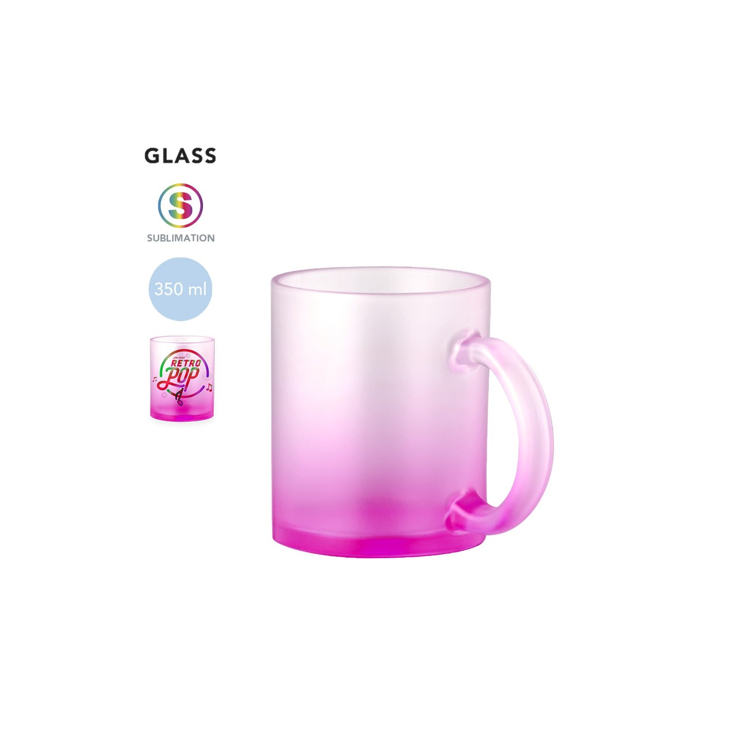La Taza Sublimación Osaka es de cristal de borosilicato de 350 ml, diseñada para sublimación. Disponible en colores translúcidos. Presentada en caja kraft.