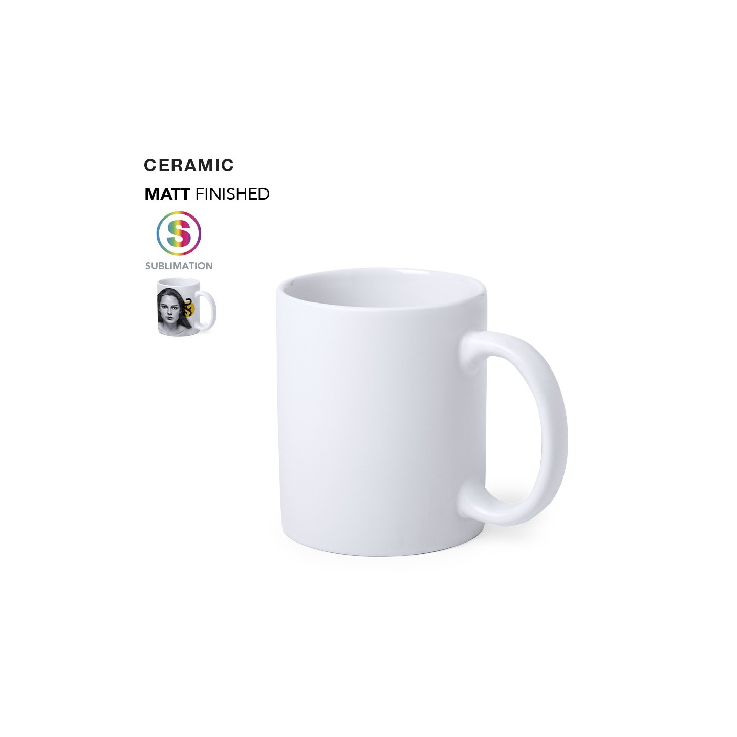 Esta taza de cerámica, con una capacidad de 350ml, no solo es funcional, sino que también cuenta con un acabado mate que le da un toque elegante y sofisticado. Su diseño ha sido especialmente pensado para el marcaje en sublimación, lo que significa que podrás plasmar cualquier imagen, logo o mensaje que desees, logrando un resultado nítido y duradero.