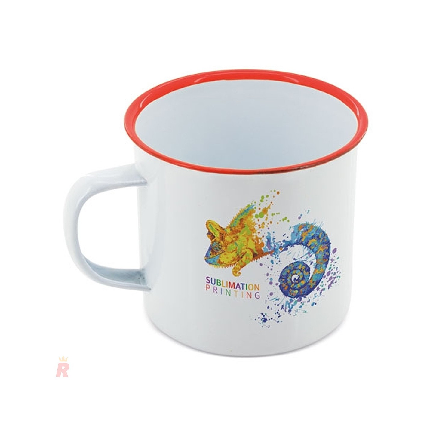 Fabricado en metal esmaltado, esta taza está especialmente diseñado para la sublimación, lo que permite personalizarlo con el logotipo o diseño de tu empresa. El cuerpo y el interior de la taza son de color blanco, lo que proporciona una superficie perfecta para la impresión, mientras que el borde está disponible en varios colores, lo que añade un toque único y personalizado al diseño final. La superficie metálica, con ligeras irregularidades, aporta una estética rústica y auténtica, perfecta para quienes buscan un producto con un toque de nostalgia.