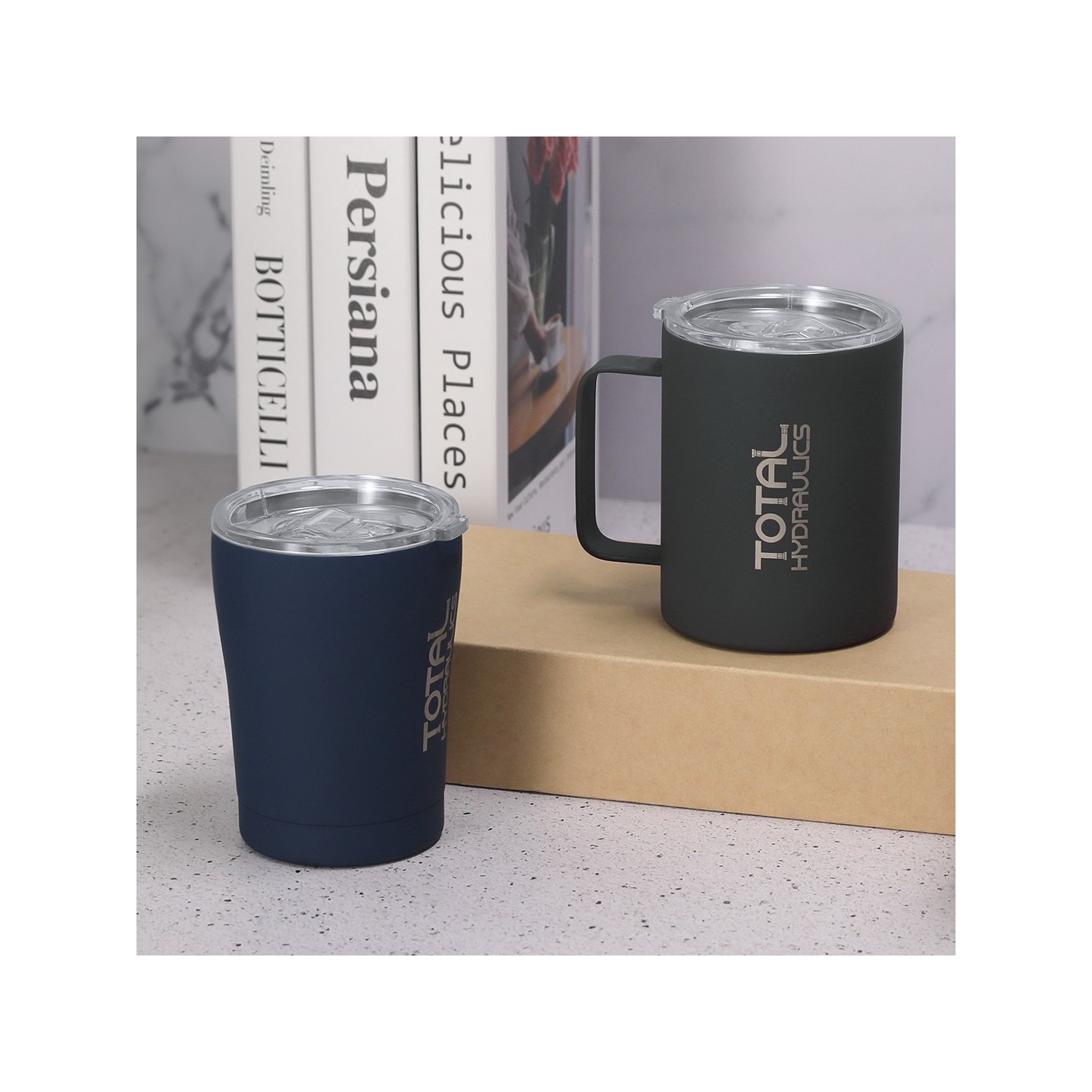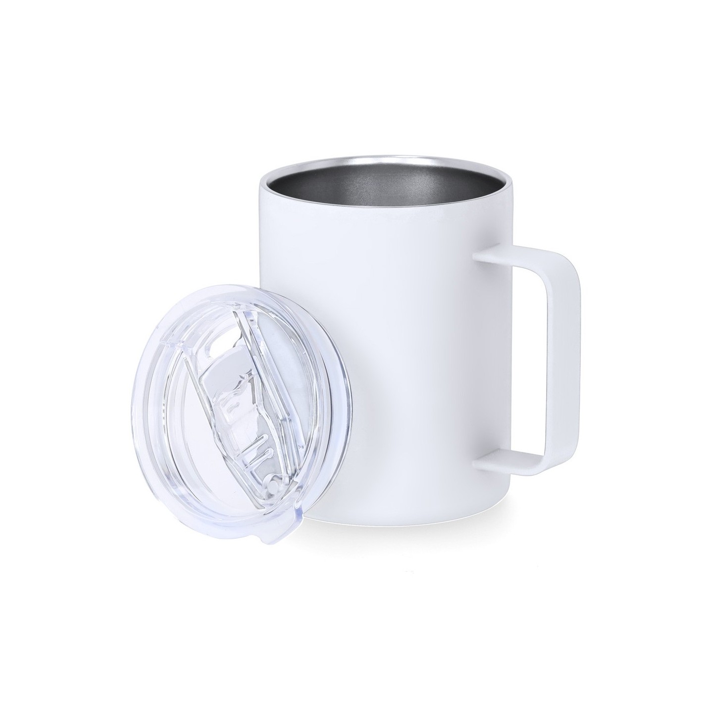 El exterior de la Taza Adelax cuenta con un acabado en caucho, lo que no solo añade un toque moderno, sino que también está especialmente diseñado para permitir un marcaje láser de alta calidad. Esto la convierte en una excelente opción para personalizar con el logotipo de tu empresa, asegurando que tu marca sea visible en cada uso.
