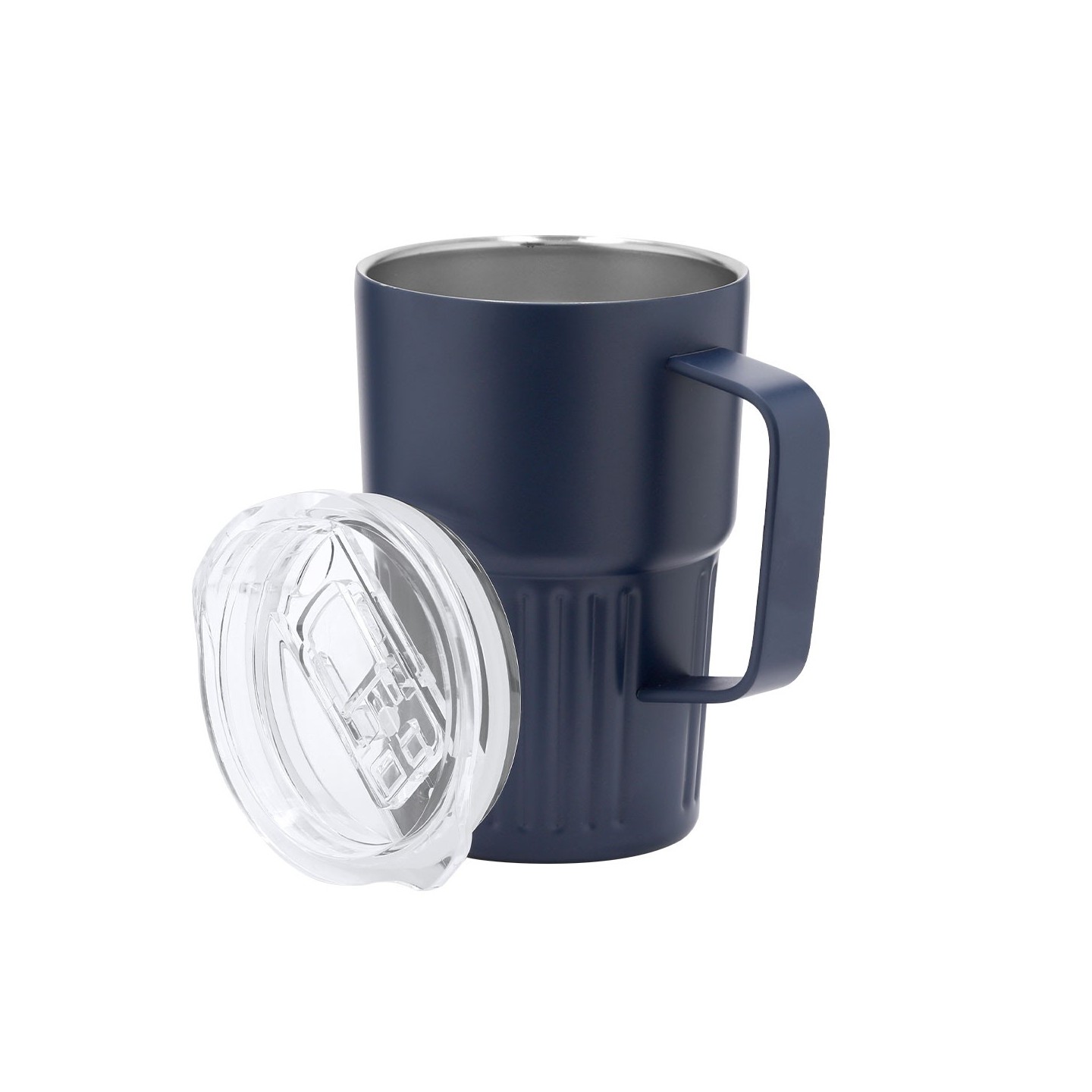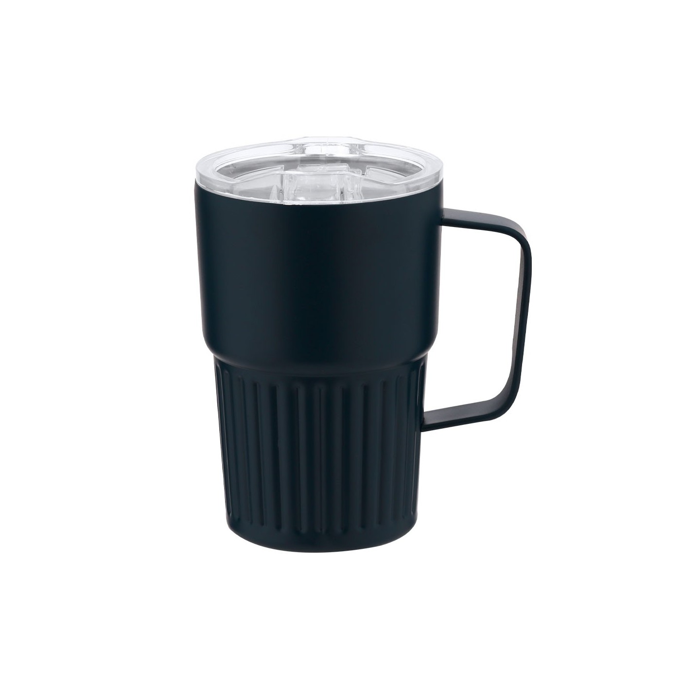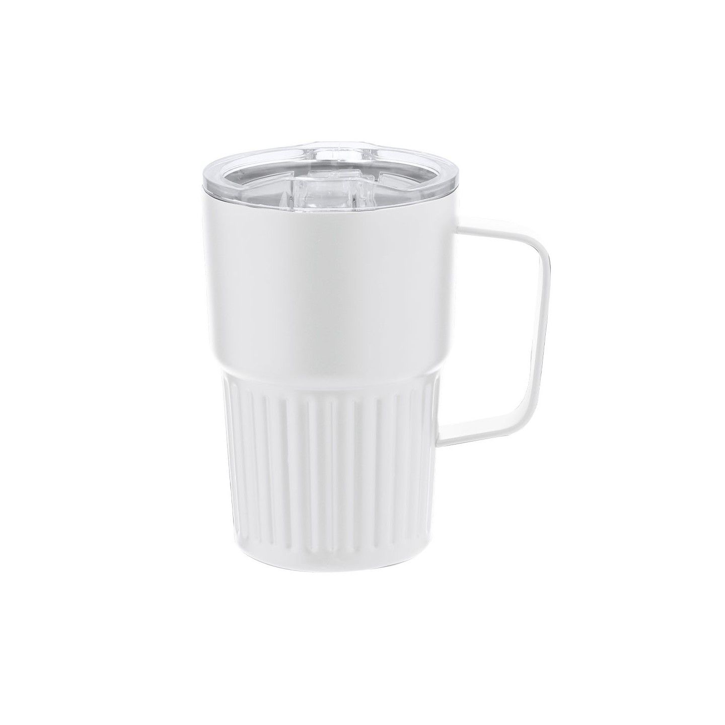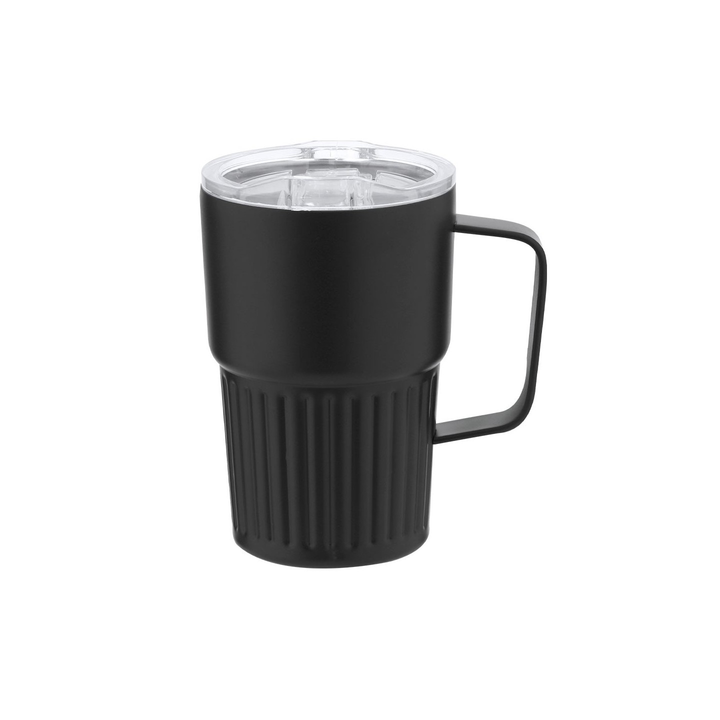 El exterior de la Taza Térmica FINBAR tiene un acabado biselado mate, que le otorga un toque sofisticado y moderno. Además, incluye una tapadera con sistema de cierre a presión transparente que garantiza un sellado seguro, evitando derrames accidentales. Su dosificador de fácil apertura abatible te permite disfrutar de tu bebida de manera cómoda y práctica, sin complicaciones. Este producto es completamente libre de BPA, asegurando que no afecte la calidad de tus bebidas y cumpla con los estándares más altos de seguridad.