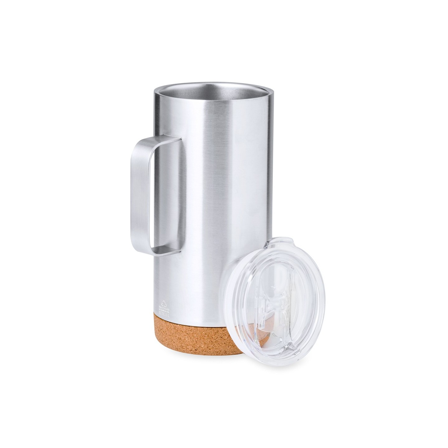 La Taza Térmica Frilan es de acero inox reciclado, doble pared, 450 ml, con base de corcho. Personalizable, perfecta para regalos corporativos