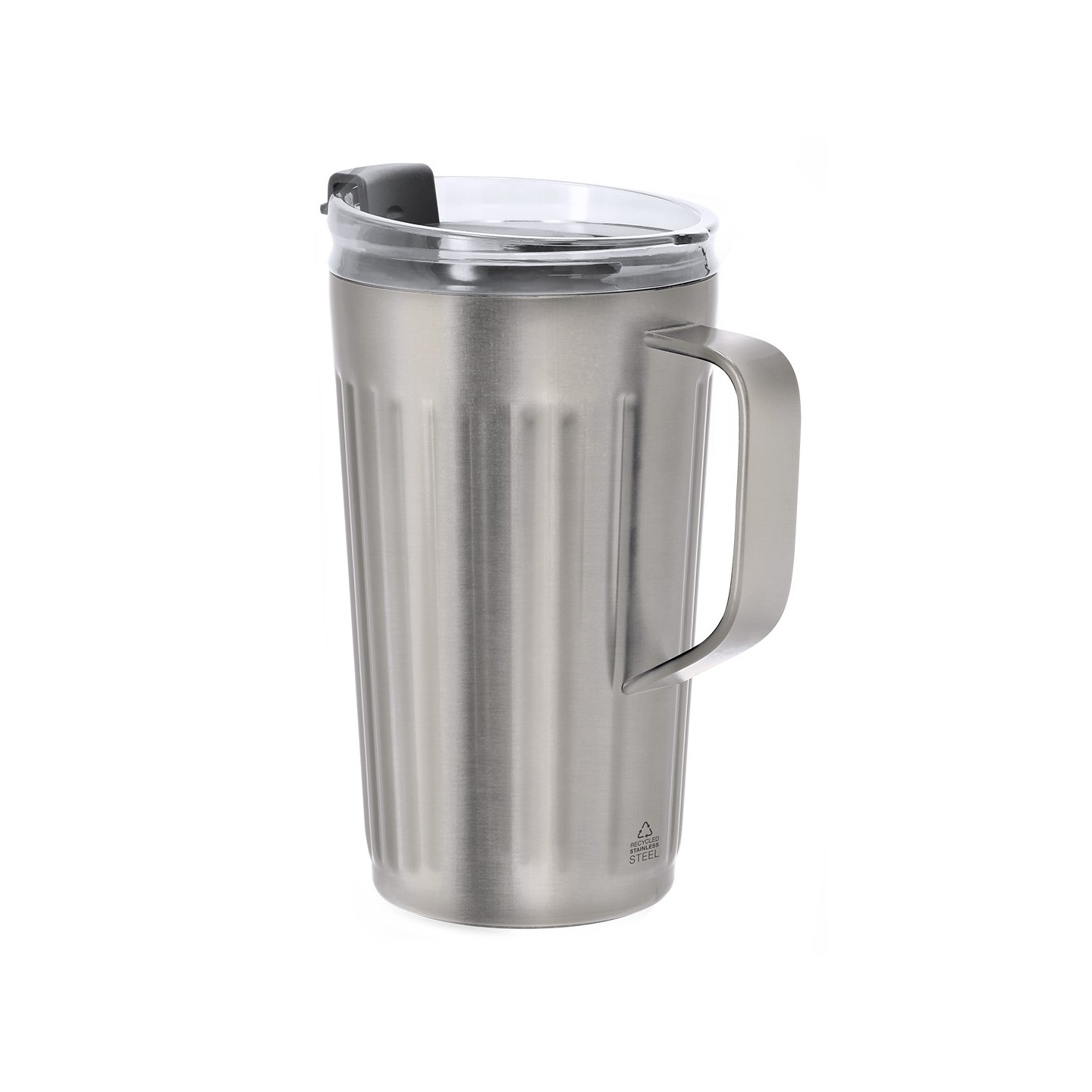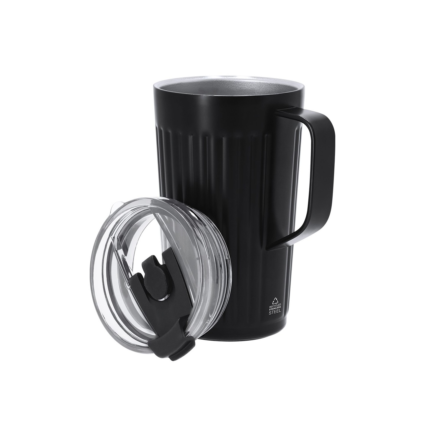 La base antideslizante de silicona asegura que la taza se mantenga firmemente en su lugar, evitando deslizamientos y caídas, lo que la convierte en una opción ideal para llevar a la oficina, al gimnasio o durante tus aventuras al aire libre. El distintivo de Acero Inox Reciclado resalta el compromiso de la Taza Térmica Korpla con la sostenibilidad y el medio ambiente.