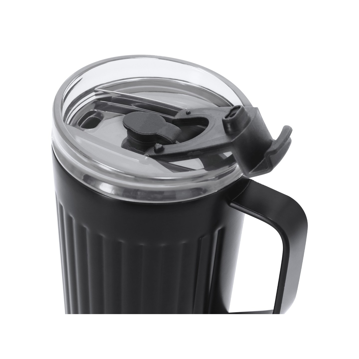 Esta taza no solo es atractiva, sino también altamente funcional. Incluye una tapadera con un sistema de cierre a presión, que garantiza que tus bebidas permanezcan seguras y sin derrames. El orificio especial para pajitas, junto con un tapón de silicona y un dosificador de fácil apertura abatible, proporciona comodidad adicional, permitiéndote disfrutar de tus bebidas con total facilidad, sin importar dónde te encuentres.