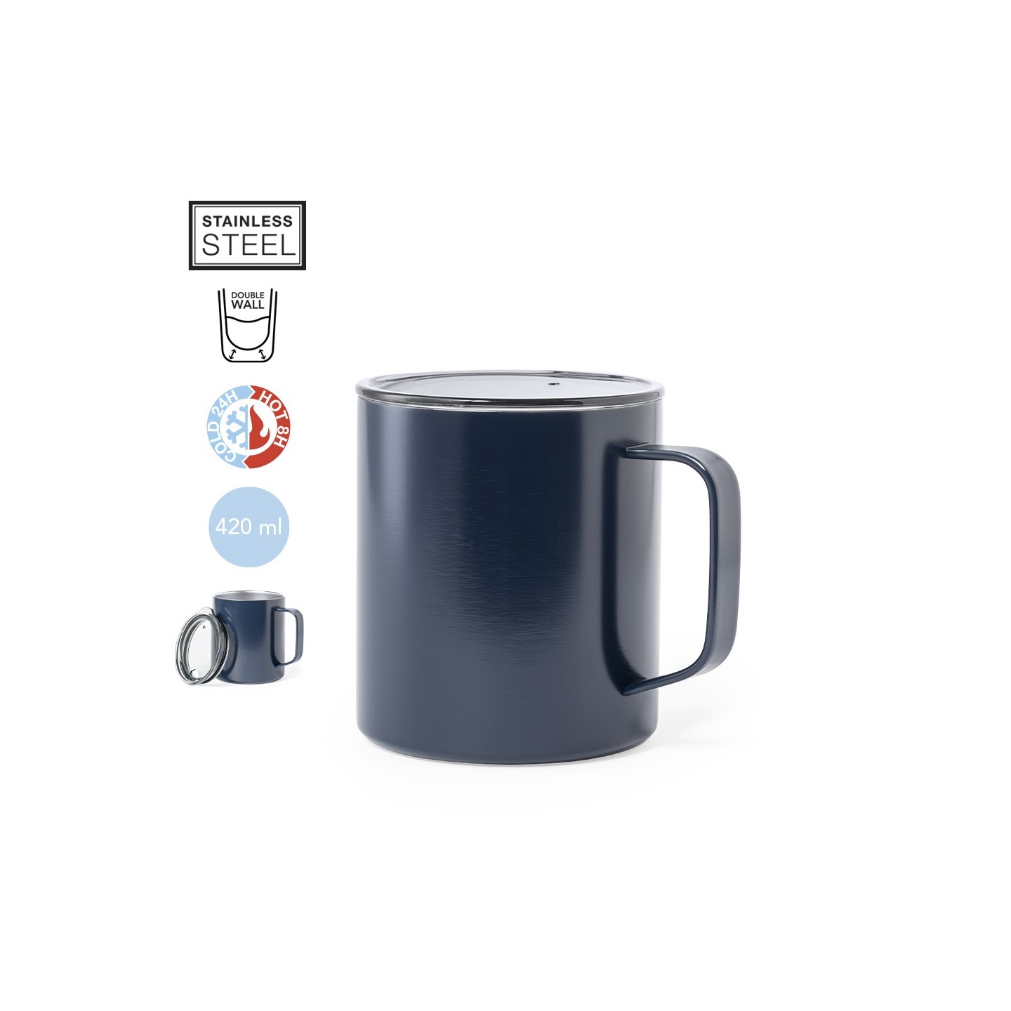 Taza térmica Hanna de acero inoxidable, doble pared y aislamiento al vacío. Mantén tus bebidas calientes o frías por más tiempo. Capacidad de 420ml.