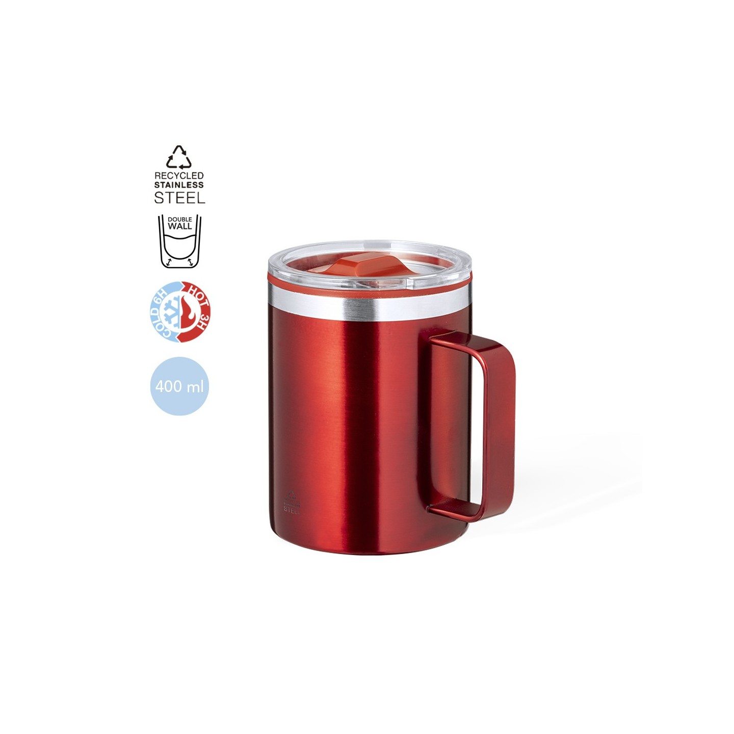 La Taza Térmica Suprax es de acero inox reciclado, doble pared, 400 ml. Personalizable con tu logo. Ideal para promover tu marca con estilo.