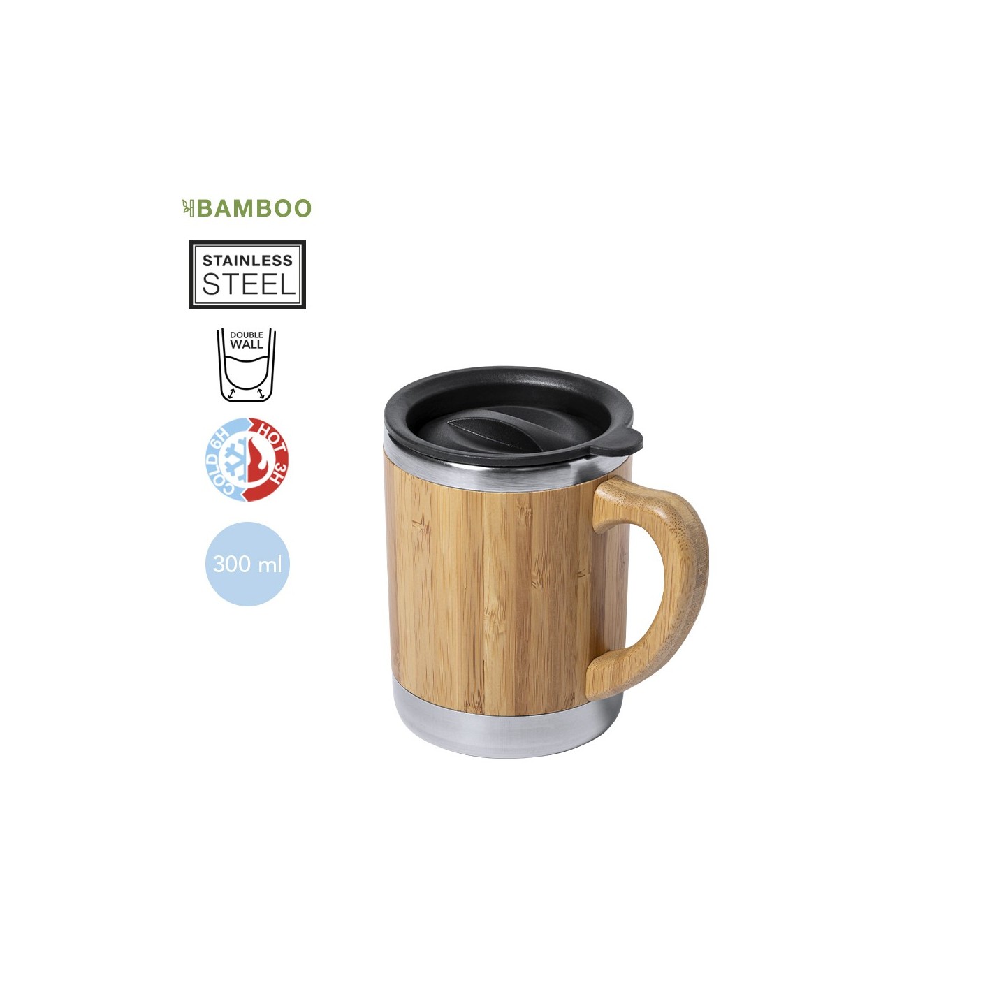 La Taza Vanatin combina estilo nature con capacidad de 300ml. Bambú y acero inoxidable de doble pared para conservar la temperatura. ¡Regalo eco y sofisticado!