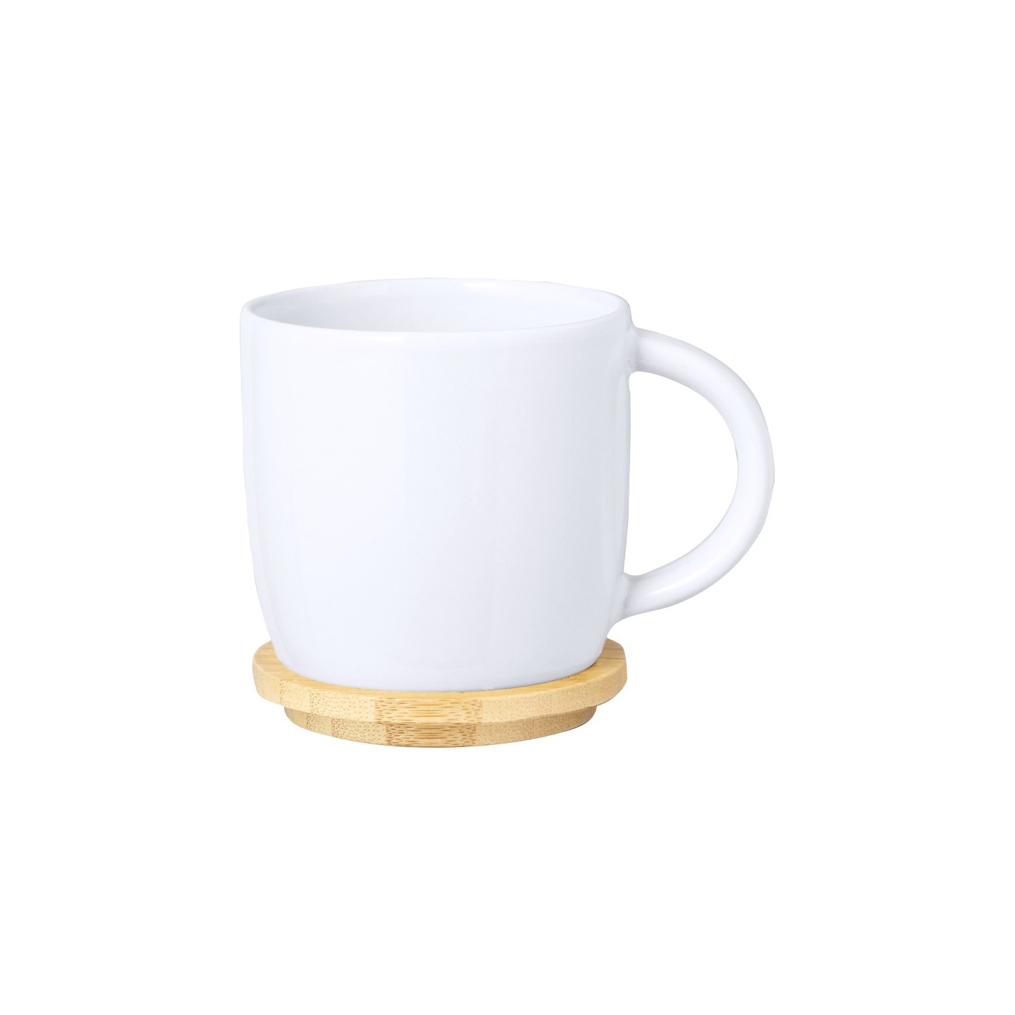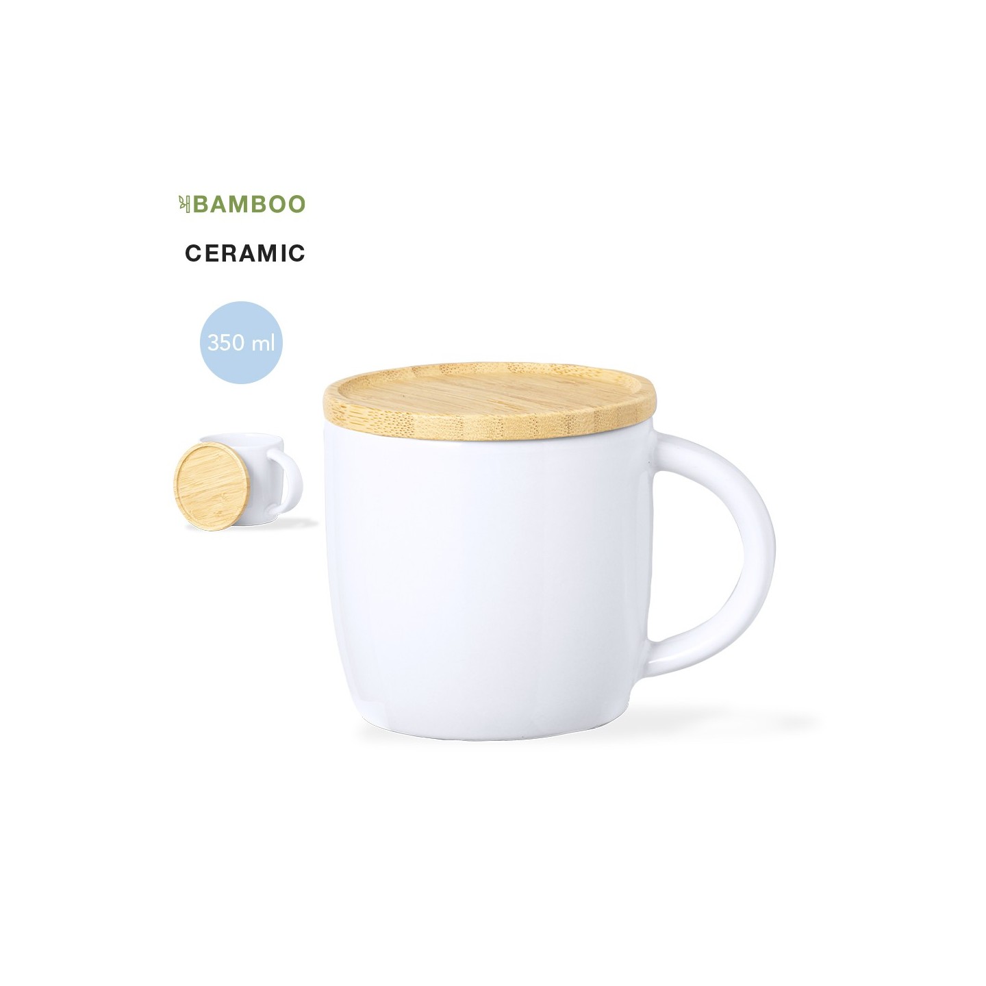 Su diseño distintivo combina la durabilidad de la cerámica con una tapadera de bambú de doble función, que sirve tanto como tapadera como posavasos, añadiendo versatilidad y estilo a tu bebida.