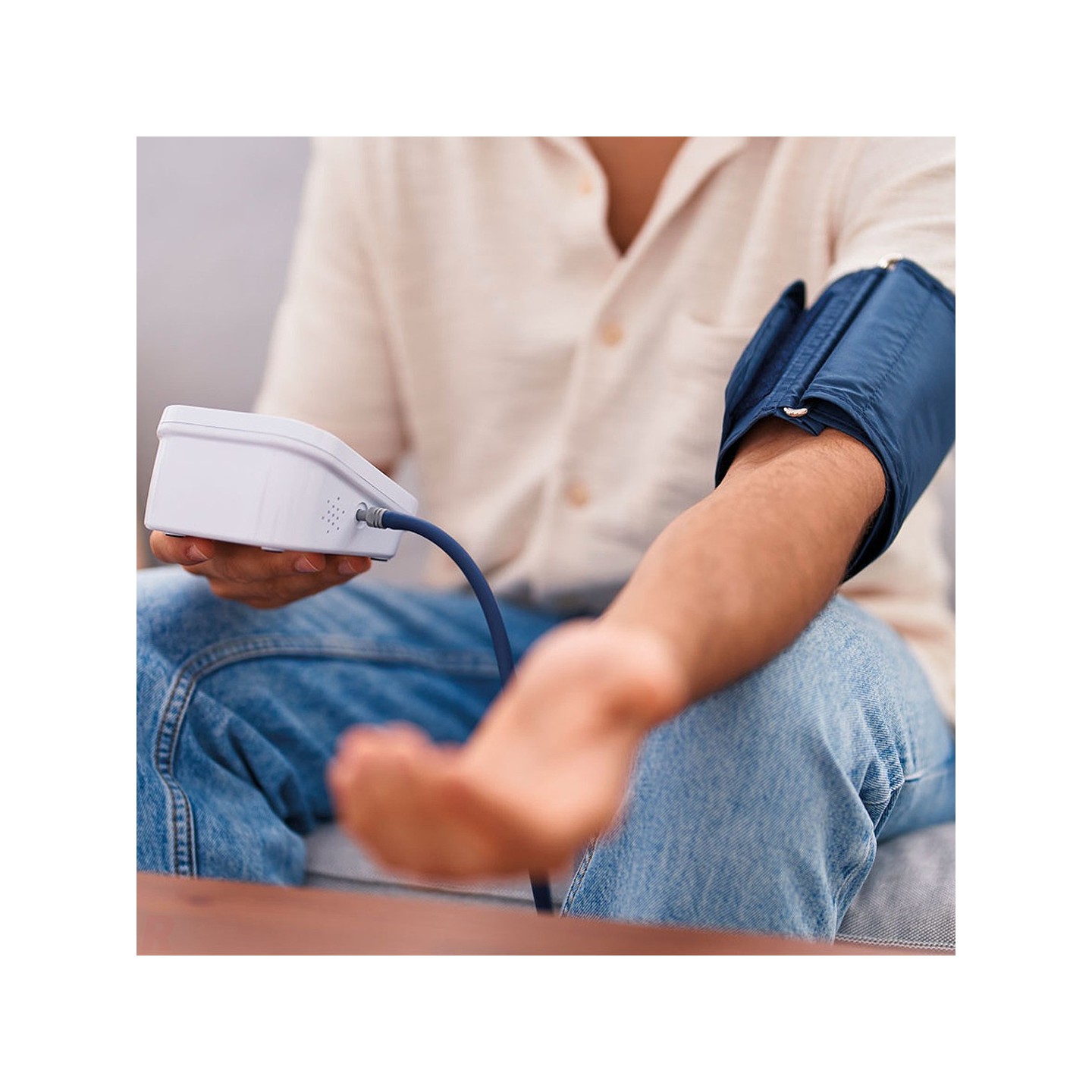 Gracias a su función de voz, ofrece indicaciones auditivas para facilitar el uso en personas mayores o con dificultad visual. Se alimenta mediante 4 pilas AAA (no incluidas), lo que lo hace portátil y fácil de usar en cualquier lugar. Todo se presenta en una caja de cartón compacta junto con un manual multilingüe (castellano, inglés, alemán, francés, portugués e italiano).