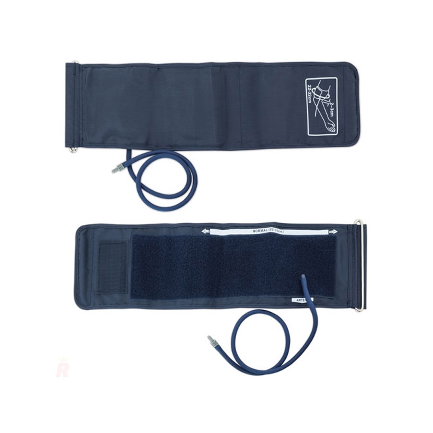 Su diseño compacto y moderno lo hace ideal tanto para entornos profesionales como para uso doméstico. El manguito con cierre de velcro ofrece un ajuste firme y cómodo en el brazo, adaptándose perfectamente al usuario. El cable de aire de 58 cm proporciona una longitud adecuada para una experiencia sin obstáculos durante la medición.