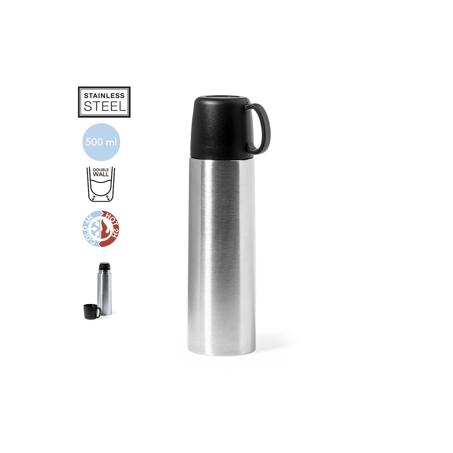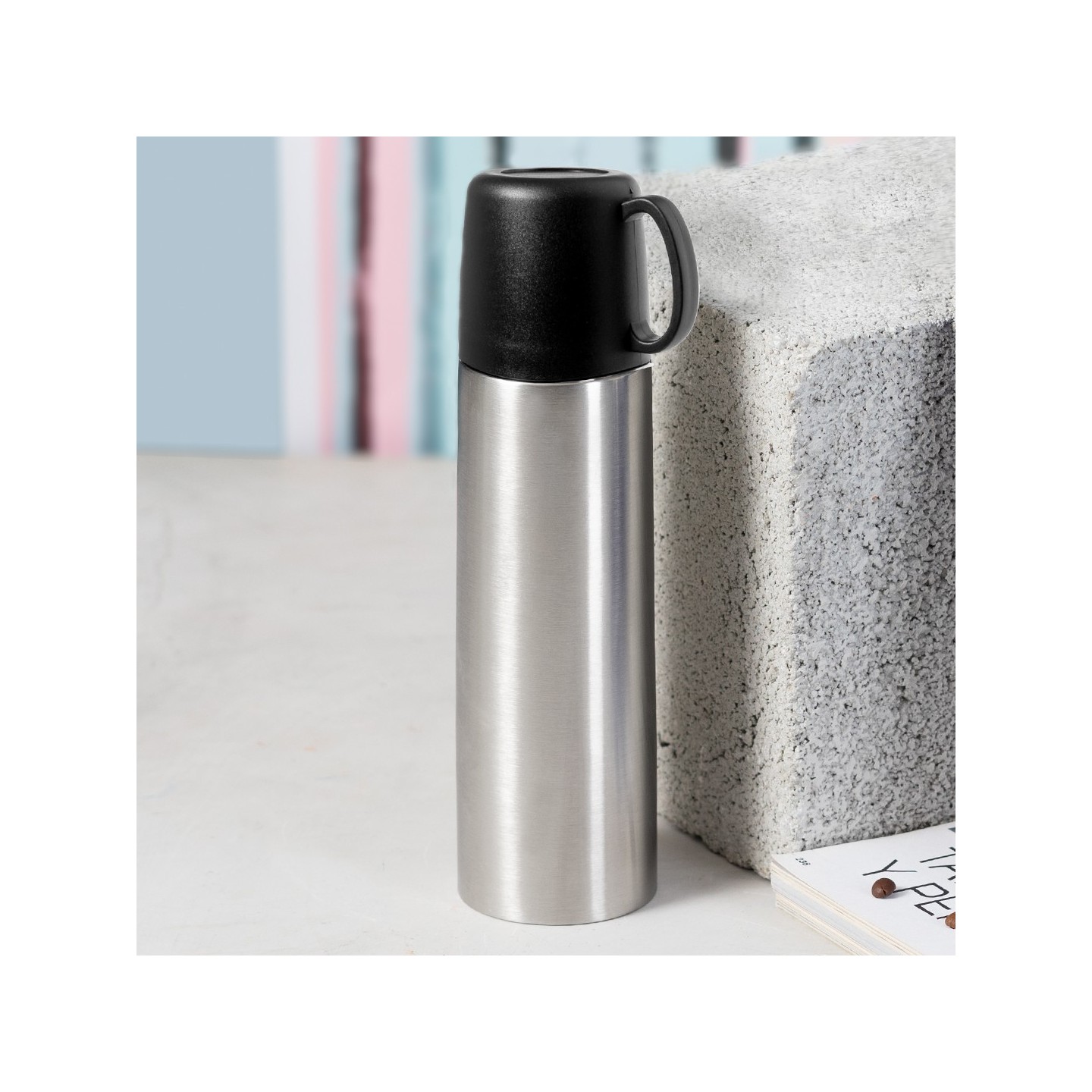 El Termo Tibber es de acero inoxidable, 500 ml, doble pared, dosificador y tapa-taza. Ideal para mantener la temperatura de tus bebidas en cualquier lugar.