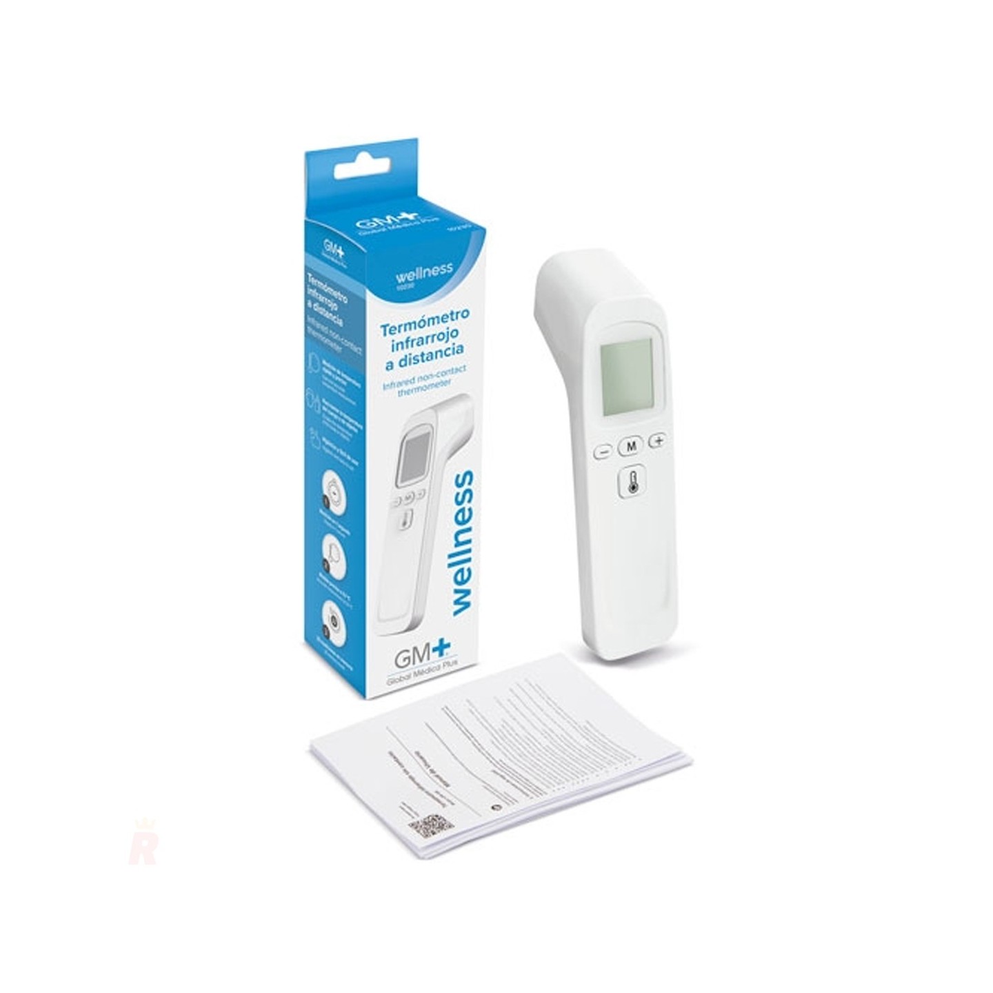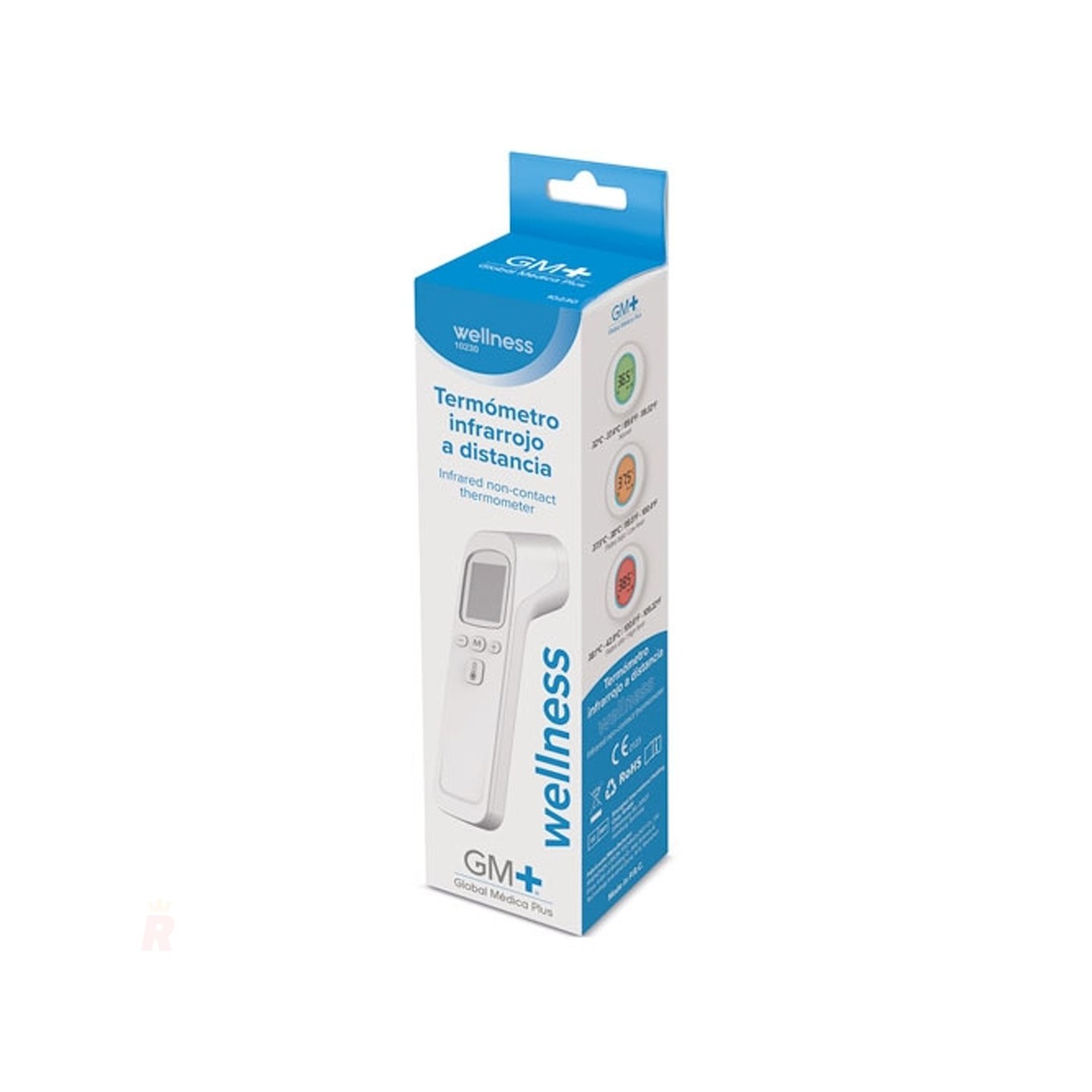 El Termómetro Infrarrojo Distancia WELLNESS, diseñado por Global Médica Plus y fabricado en PP (polipropileno), destaca por su precisión, rapidez y versatilidad. Este dispositivo permite medir la temperatura corporal sin contacto, así como la temperatura de superficies, como agua de baño, alimentos y otros objetos, garantizando comodidad e higiene.