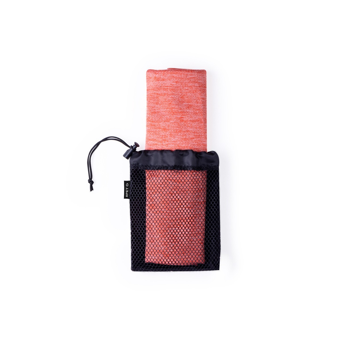 La Toalla Absorbente Guds es de RPET 160g/m2, tamaño 50x100 cm, presentada en funda RPET. Personalizable para promocionar tu marca